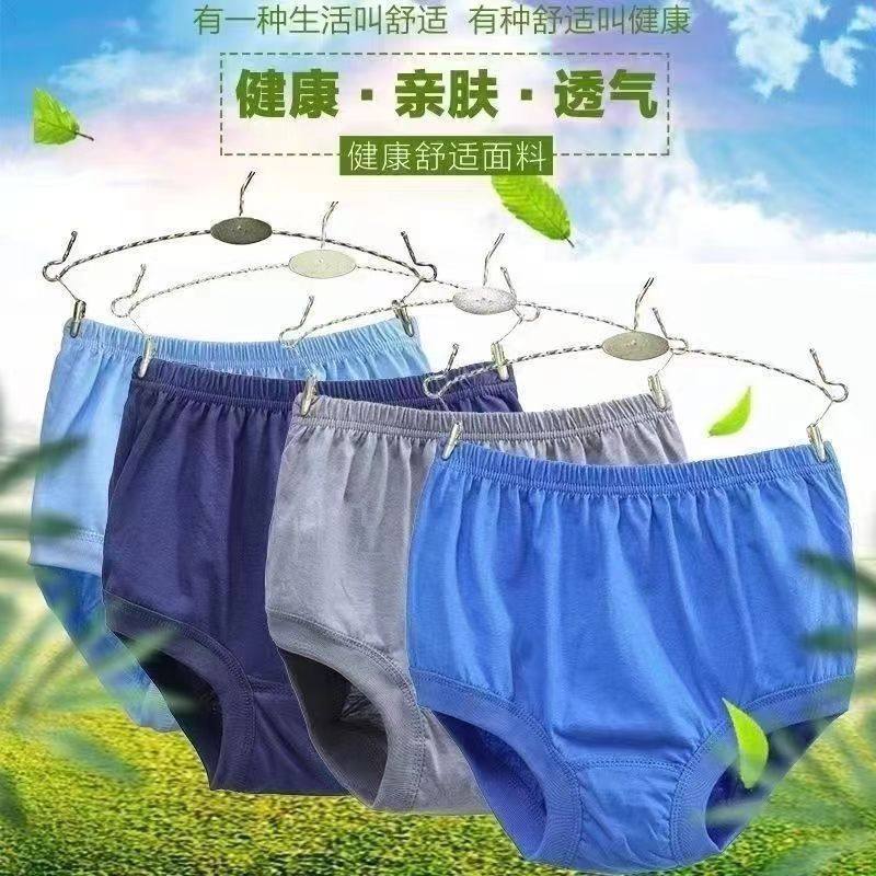 Middle-Aged and Elderly Men's Underwear, Dad's Pure Cotton High-Waisted Briefs, Grandpa's Shorts, Loose Fit, Large Size
