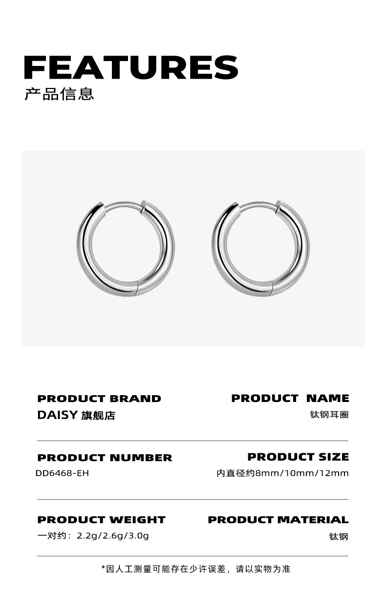 Medical Titanium Steel Plain Hoop Earrings for Women, Titanium Alloy Ear Cuffs for Ear Piercing Care, Men's Sleep-Friendly Ear Studs, Ear Jewelry