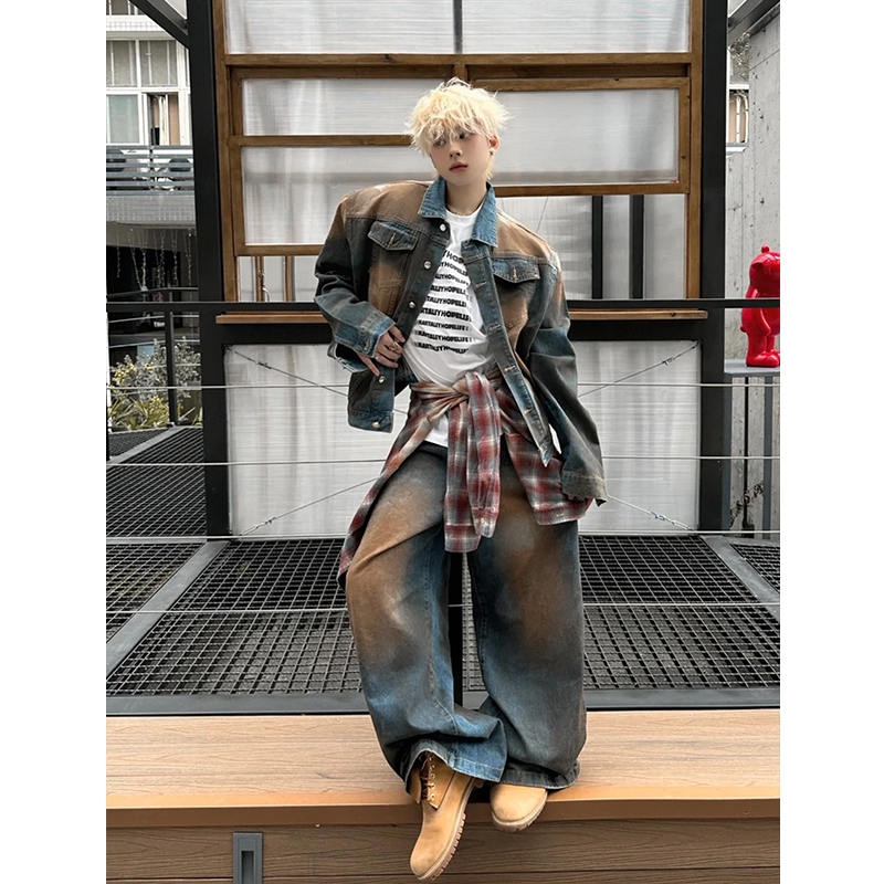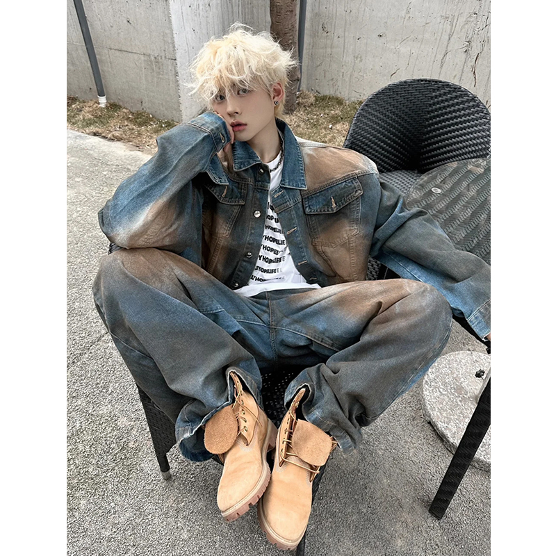 Men's Vintage Distressed Denim Jacket, Niche Style, American Casual, Spring and Autumn, Western Style Denim Clothing