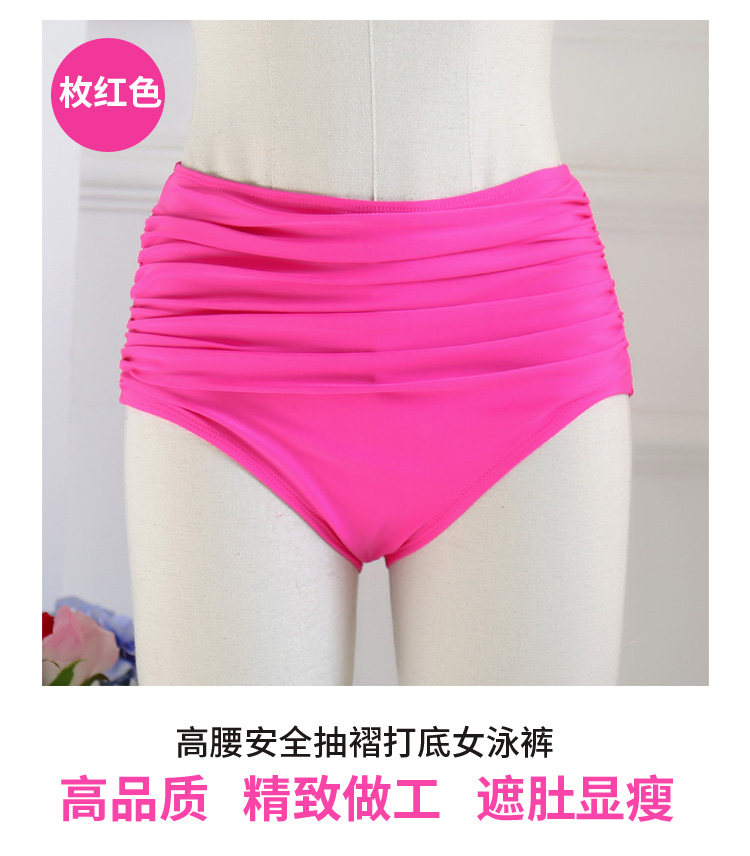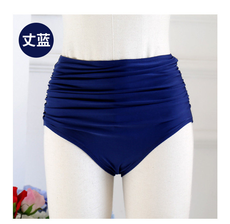 Solid Color Women's Plus Size High-Waisted Tummy Control Slimming Triangle Swimwear Versatile Ruched Bikini Bottom Swim Shorts