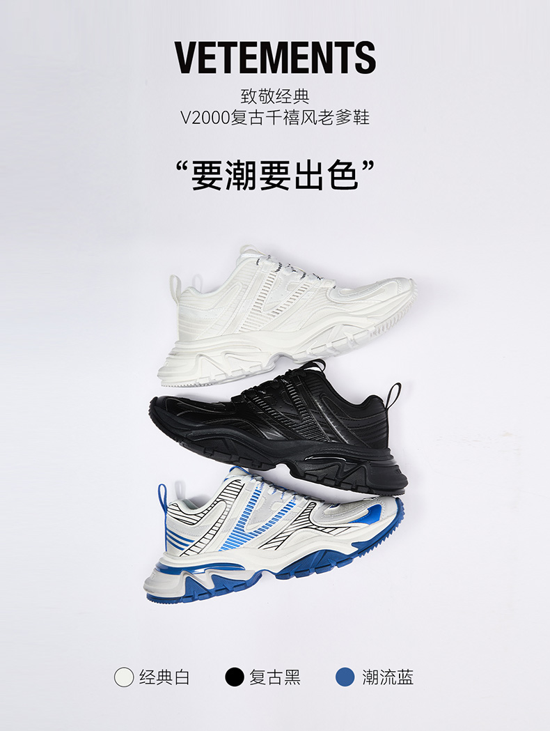 Vetements Retro Dad Shoes V2000 Same Style as in the Mall, Mesh Breathable Shock-Absorbing Sneakers for Spring and Summer, Unisex Shoes