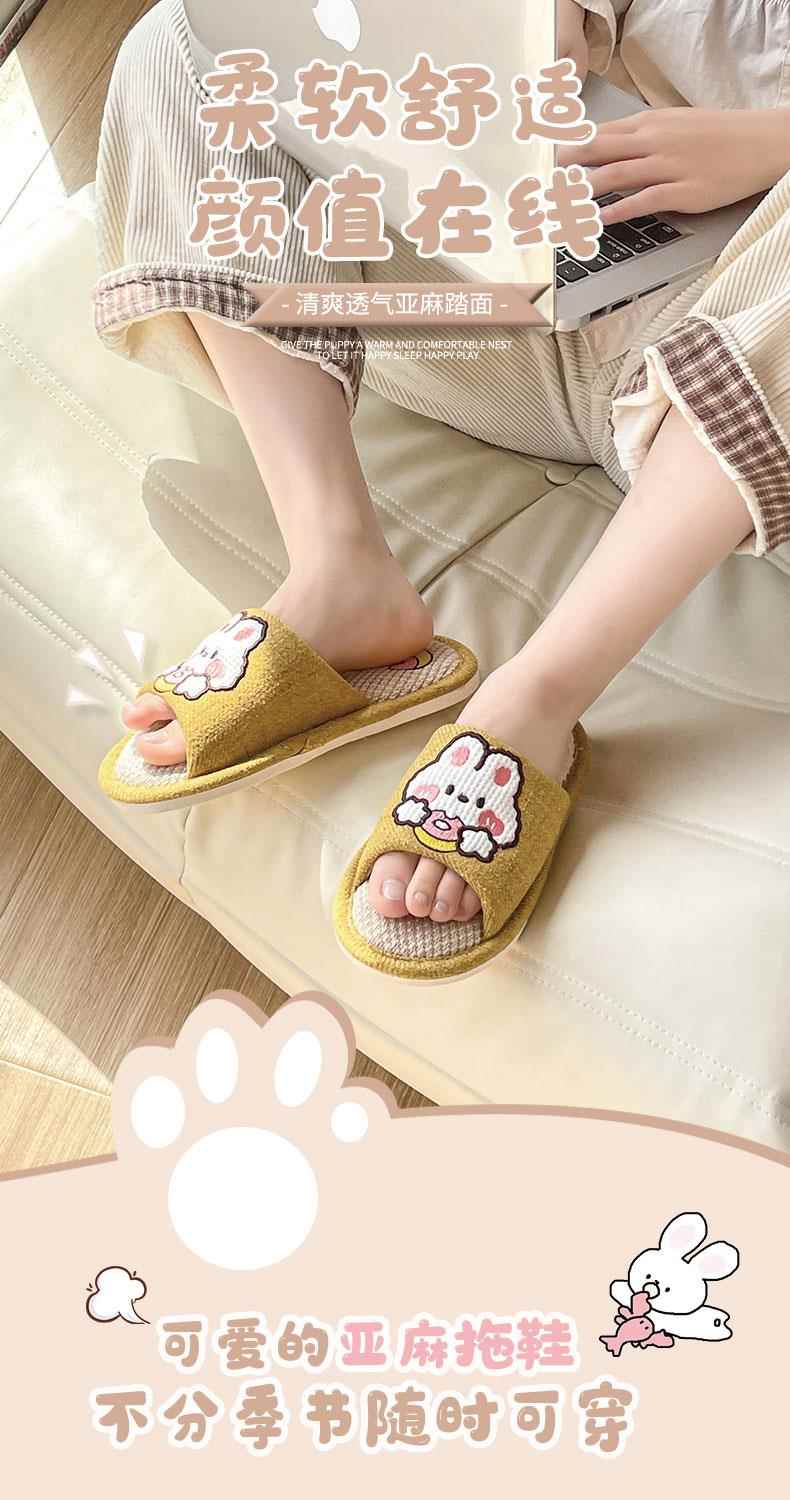 Cartoon Linen Slippers for Women, Suitable for All Seasons, Indoor Home Use, Non-Slip, Sweat-Absorbent, Household Couple Slippers, Wooden Floor Cotton and Linen Slippers for Men