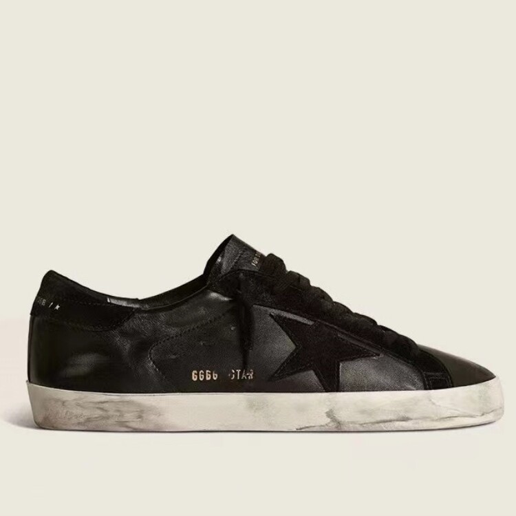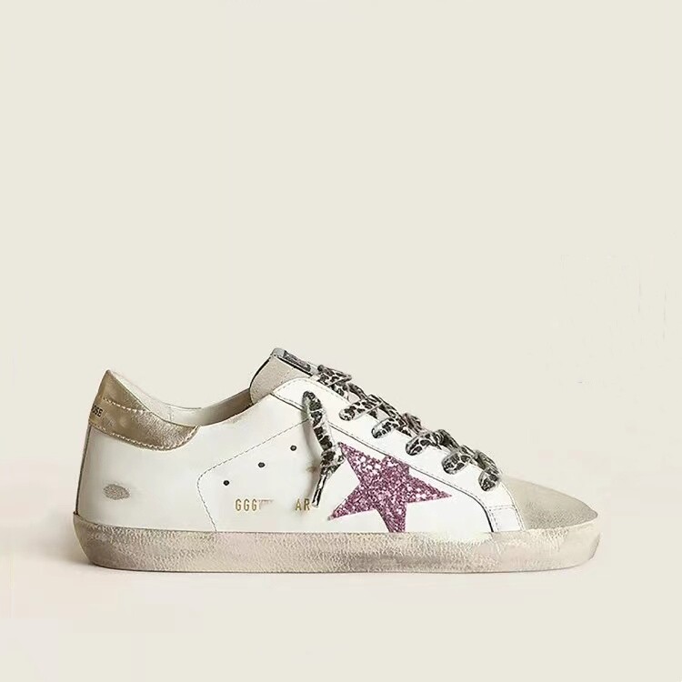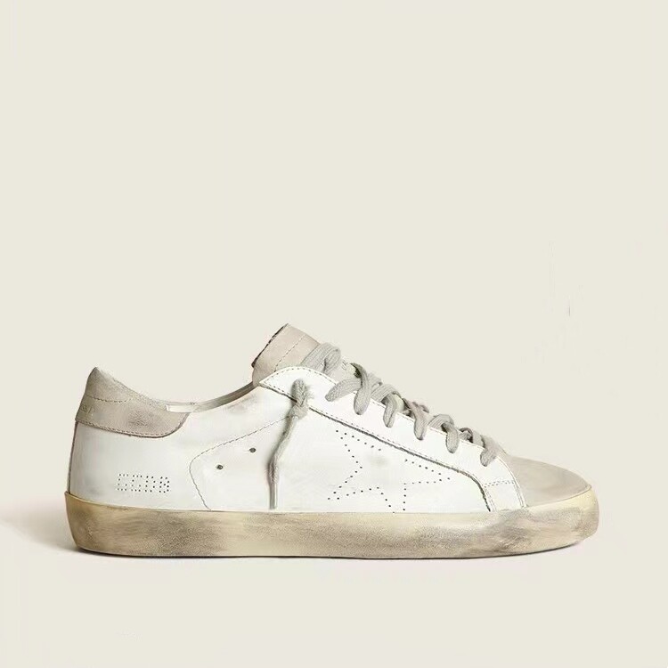 Korean Version 2025 New Vintage Distressed Genuine Leather Sneakers for Women, with Hidden Height Increase and Thick Sole, Star-Patterned Dirty Shoes for Men and Women