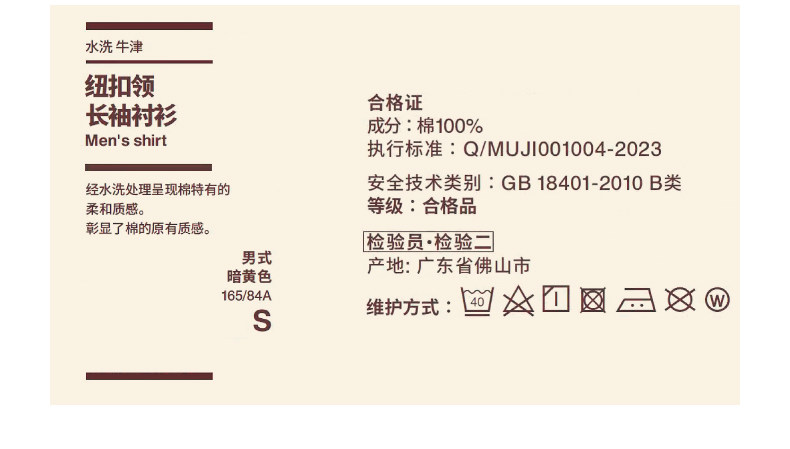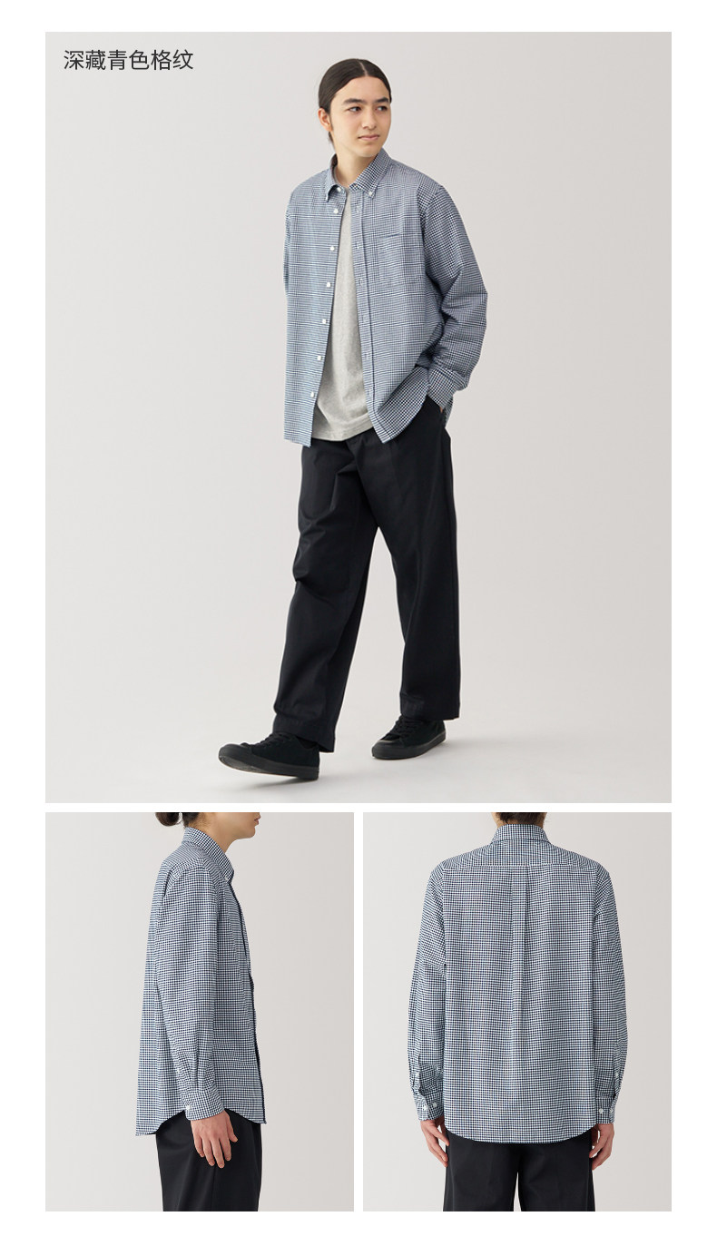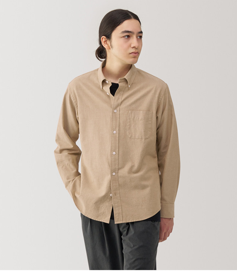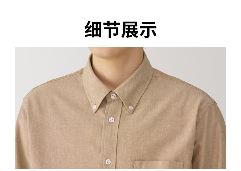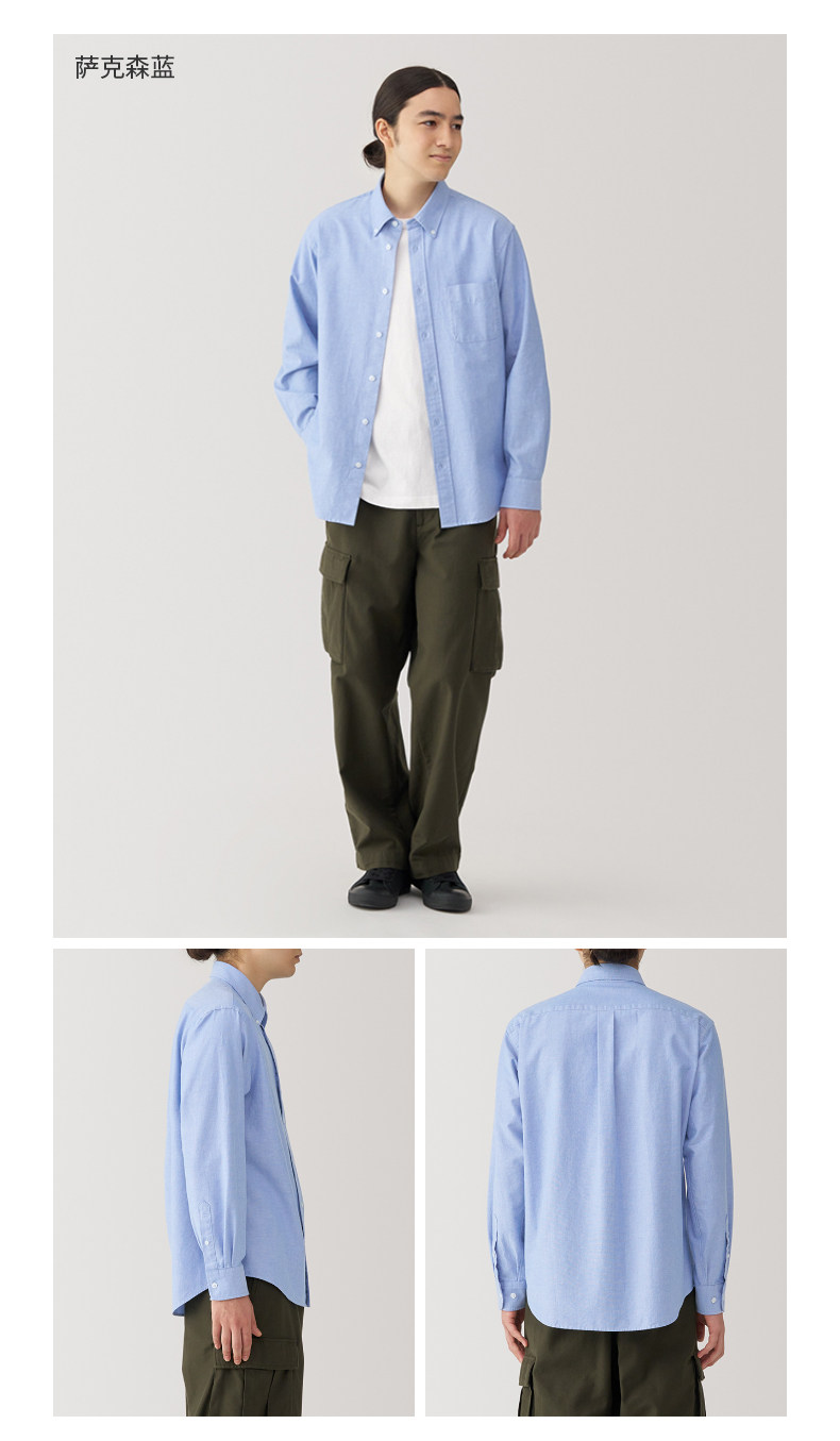 Muji Men's Washed Oxford Button-Down Long-Sleeve Shirt Men's Pure Cotton Spring Shirt