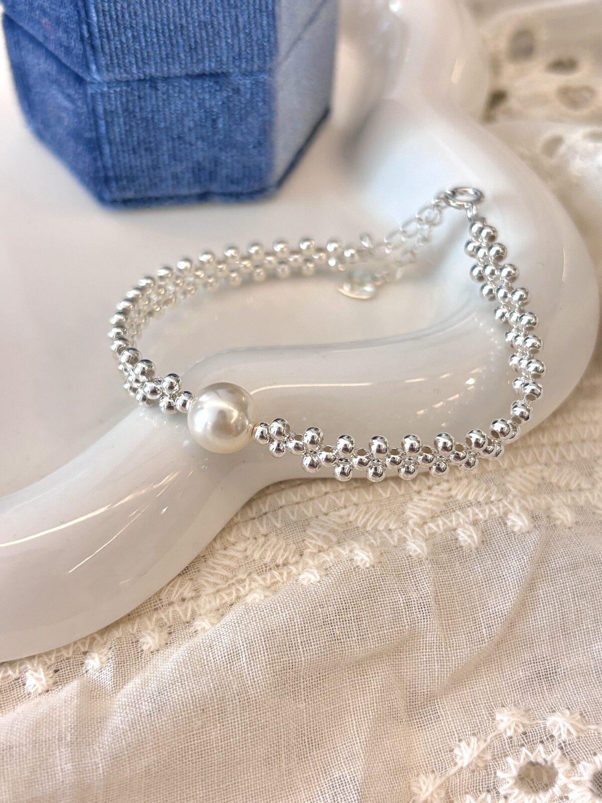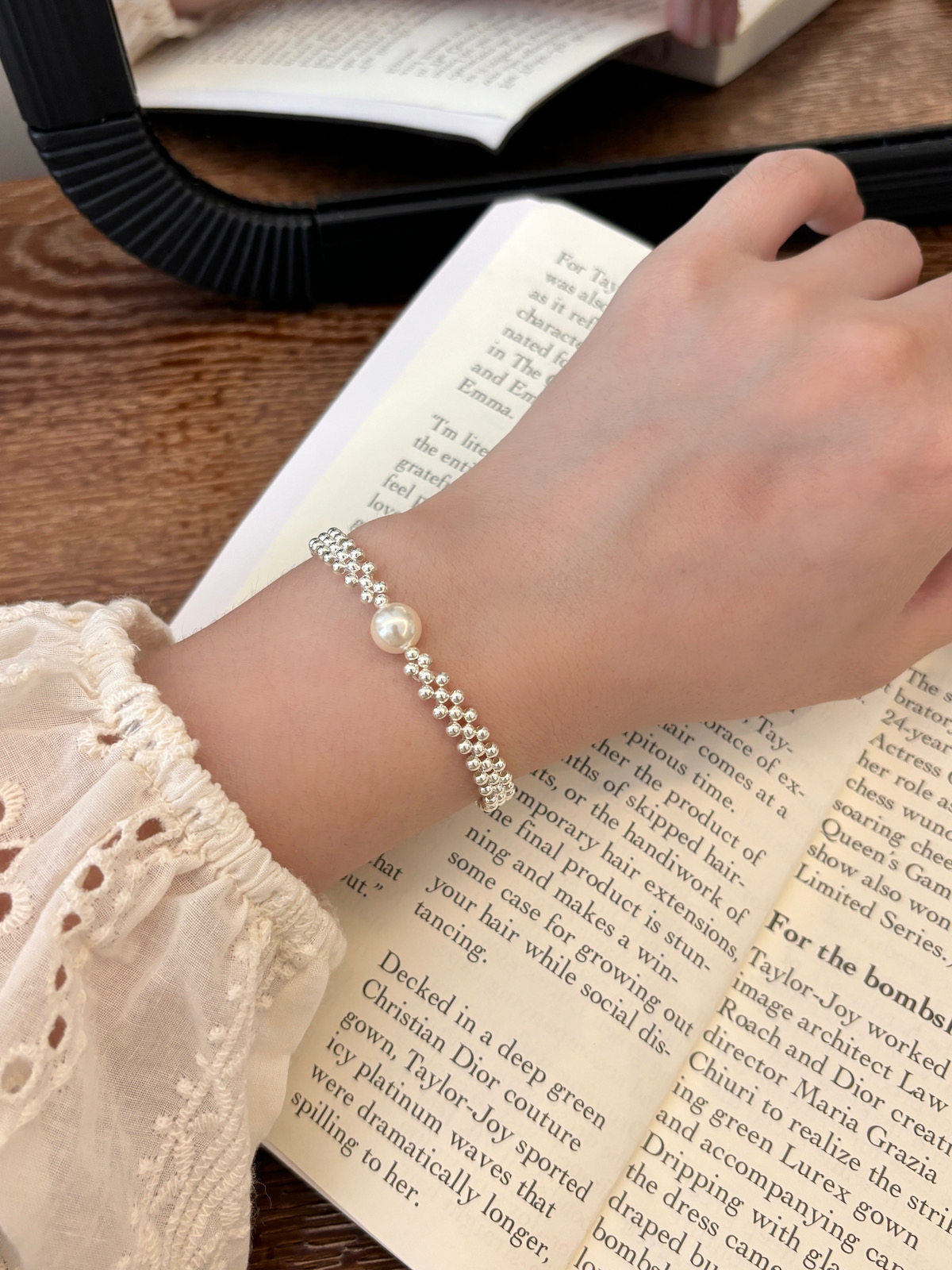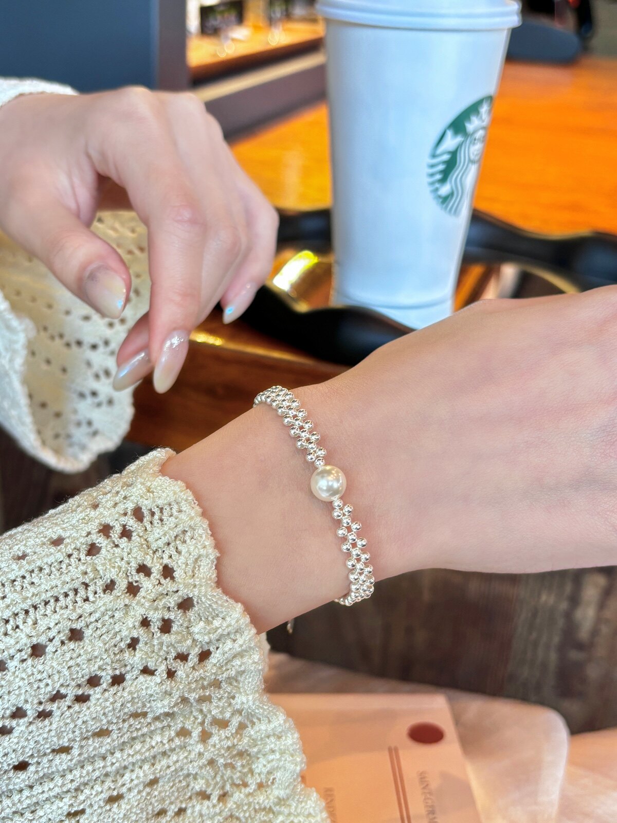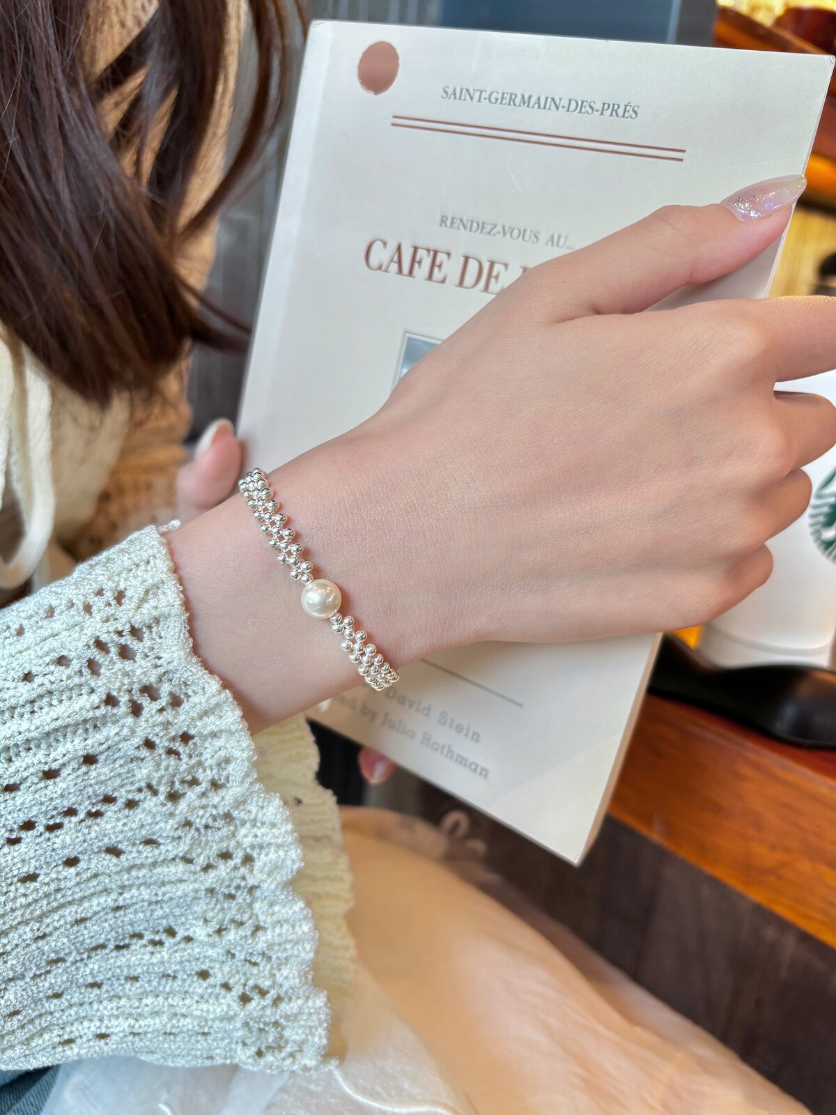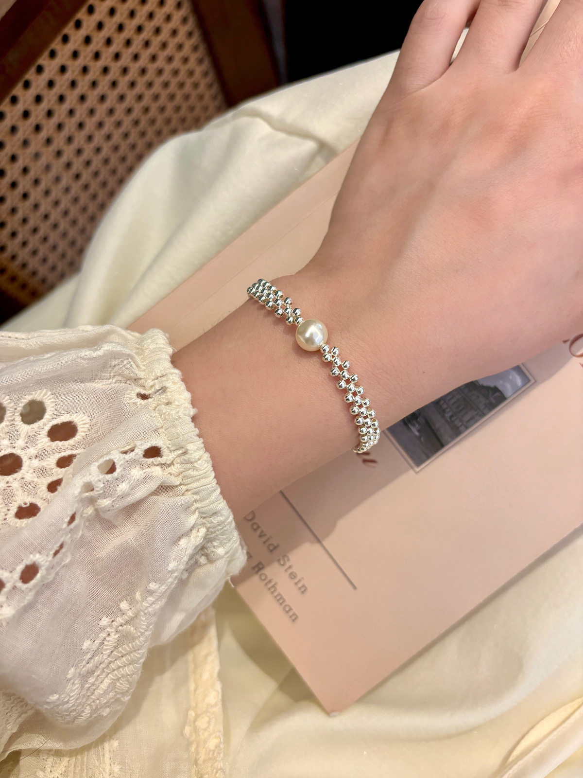 925 Sterling Silver Lace Pearl Bracelet for Women, Light Luxury, Versatile, Niche Design, ins Design-Inspired Friendship Jewelry, Light Luxury, Vintage