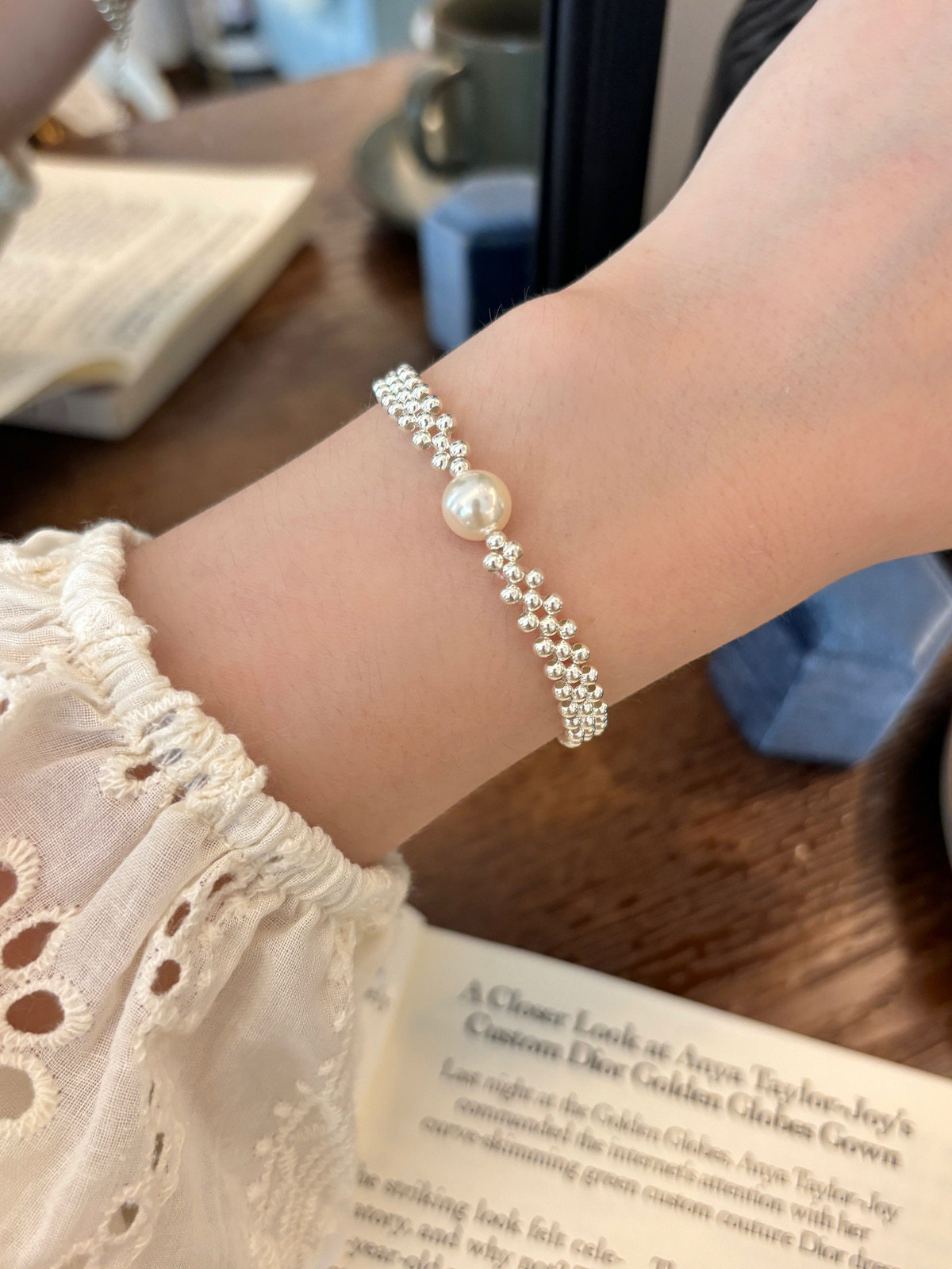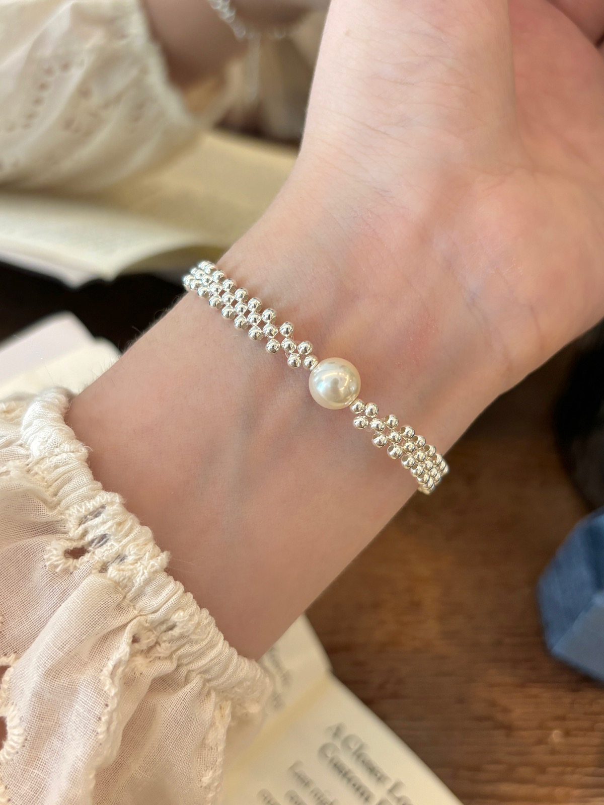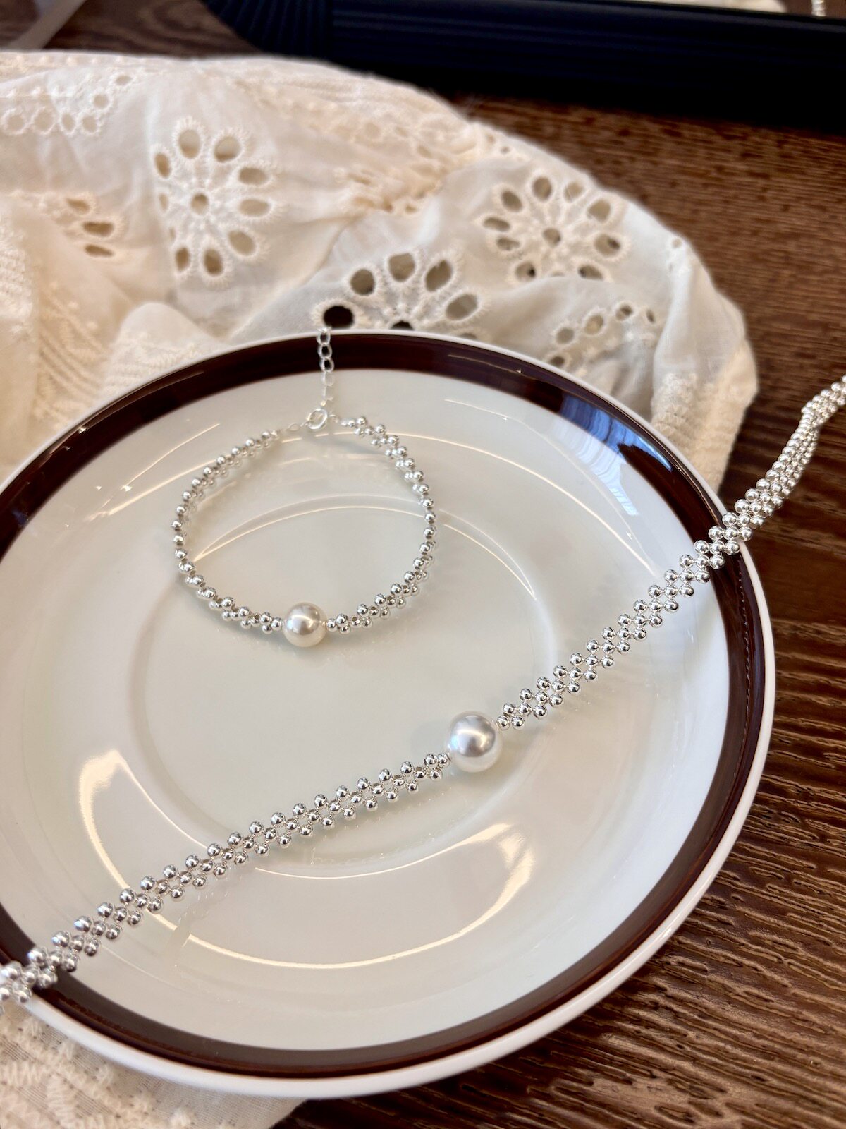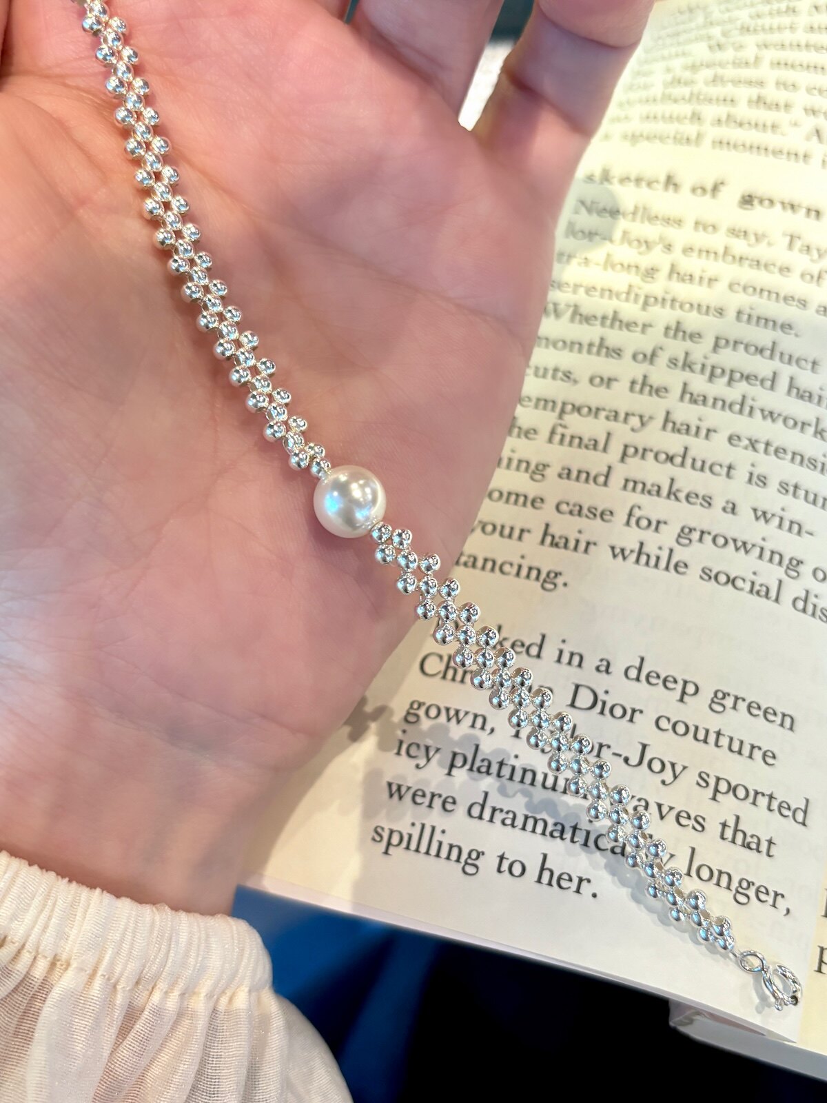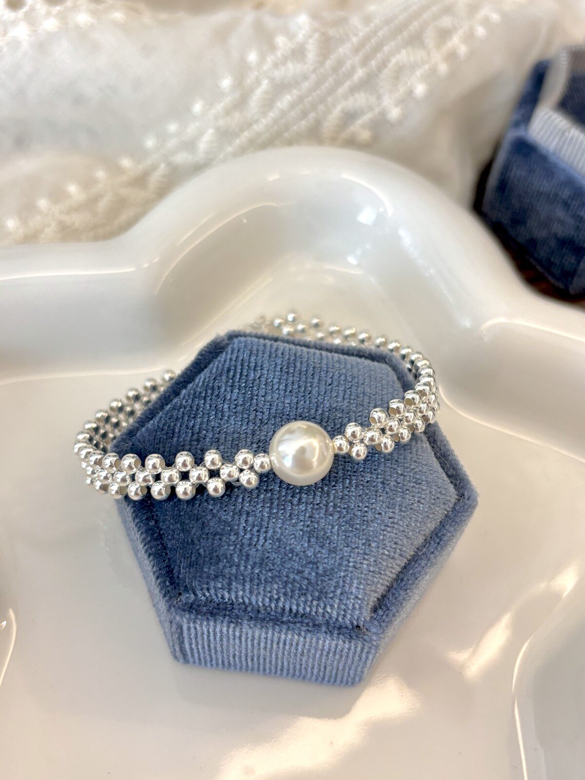 925 Sterling Silver Lace Pearl Bracelet for Women, Light Luxury, Versatile, Niche Design, ins Design-Inspired Friendship Jewelry, Light Luxury, Vintage