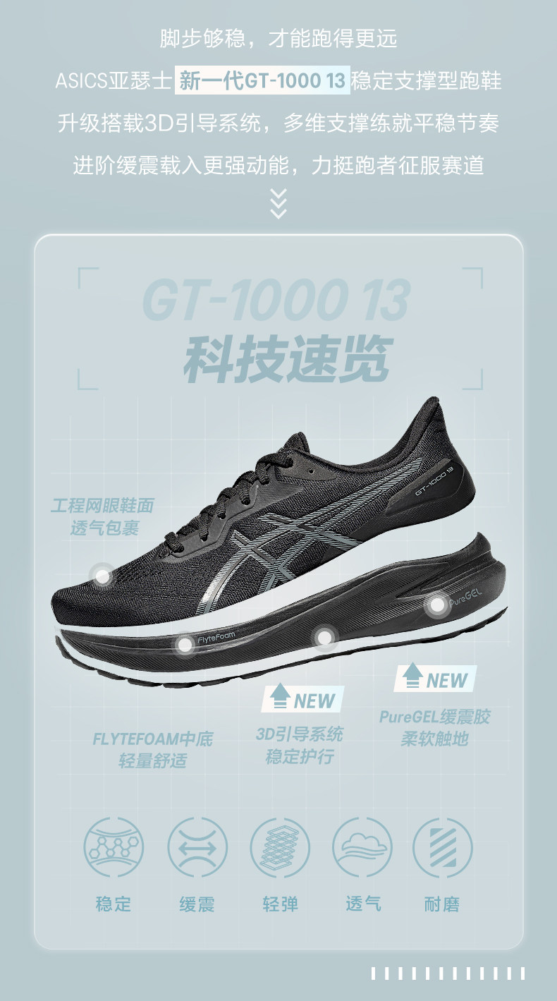 Asics Gt-1000 13 Men's and Women's Stable Support Running Shoes, Shock-Absorbing, Rebounding, Breathable and Comfortable Sports Shoes