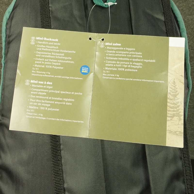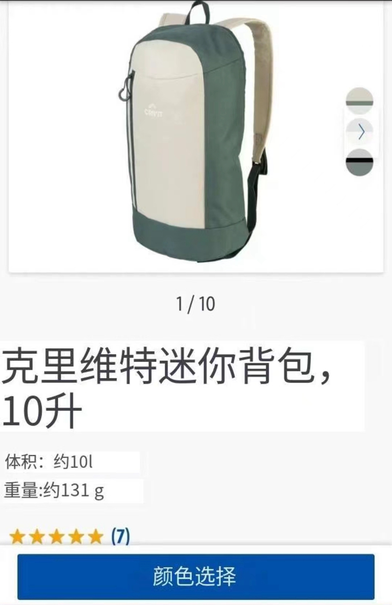 容量约10升,最大荷载4公斤,包包重量约130克,