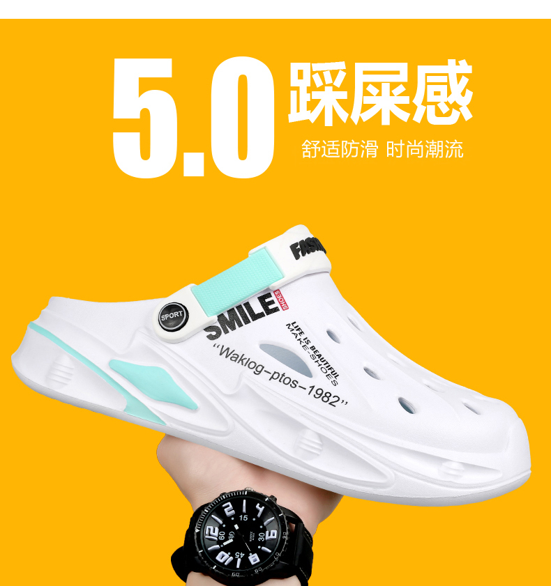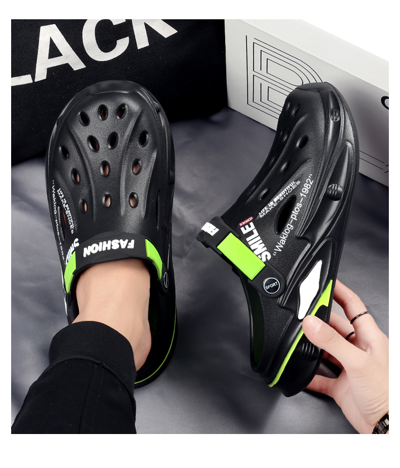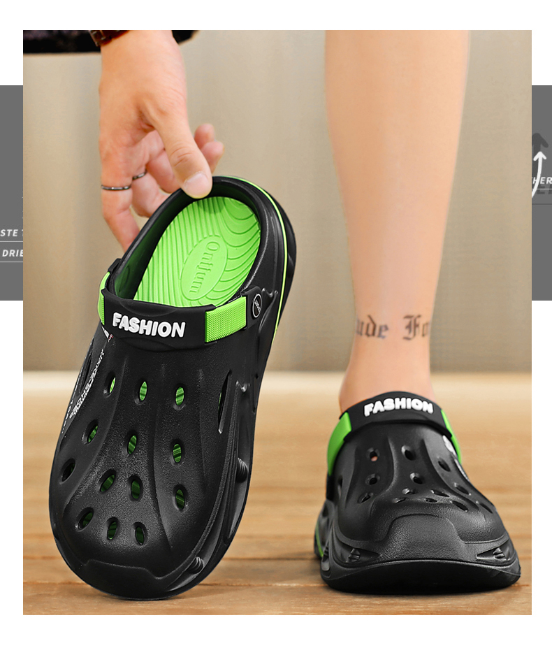 Croc Shoes for Men, Summer Outdoor Wear, Non-Slip Dual-Purpose Closed-Toe Slippers for Teenagers, soft sole Sports Beach Sandals, Large Size