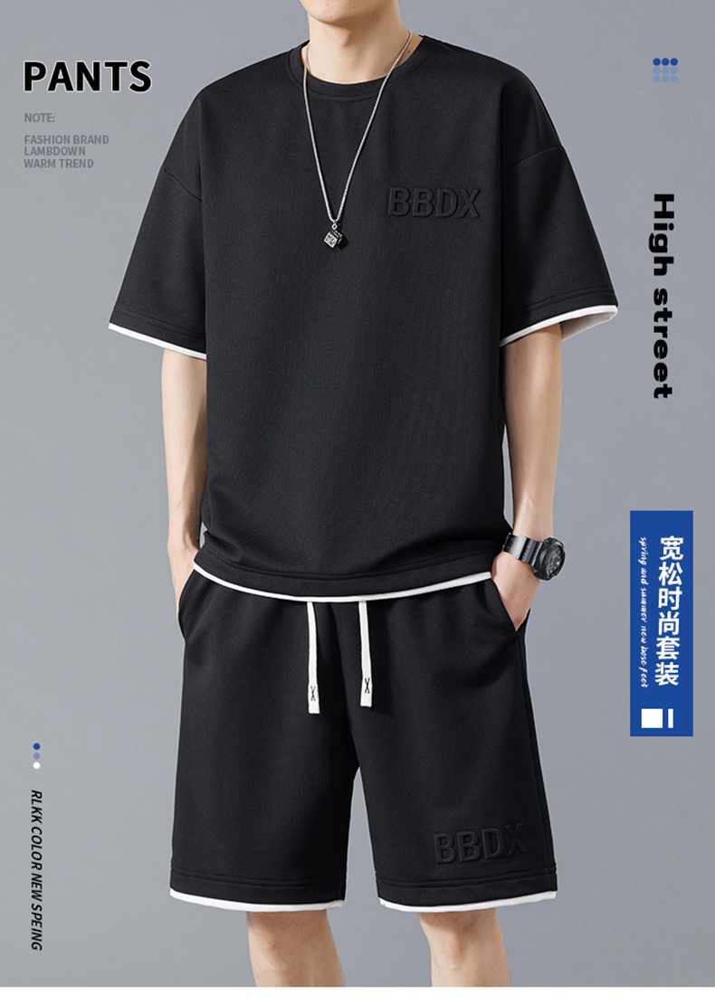 Woodpecker Waffle Summer Plus Size Casual Short Sleeve Trendy Set Breathable Versatile Loose Sports Two-Piece Set