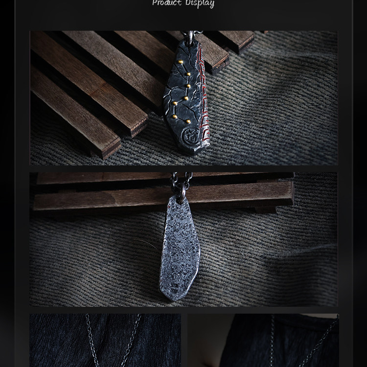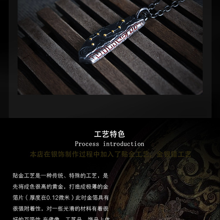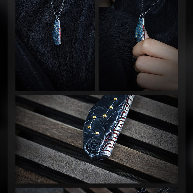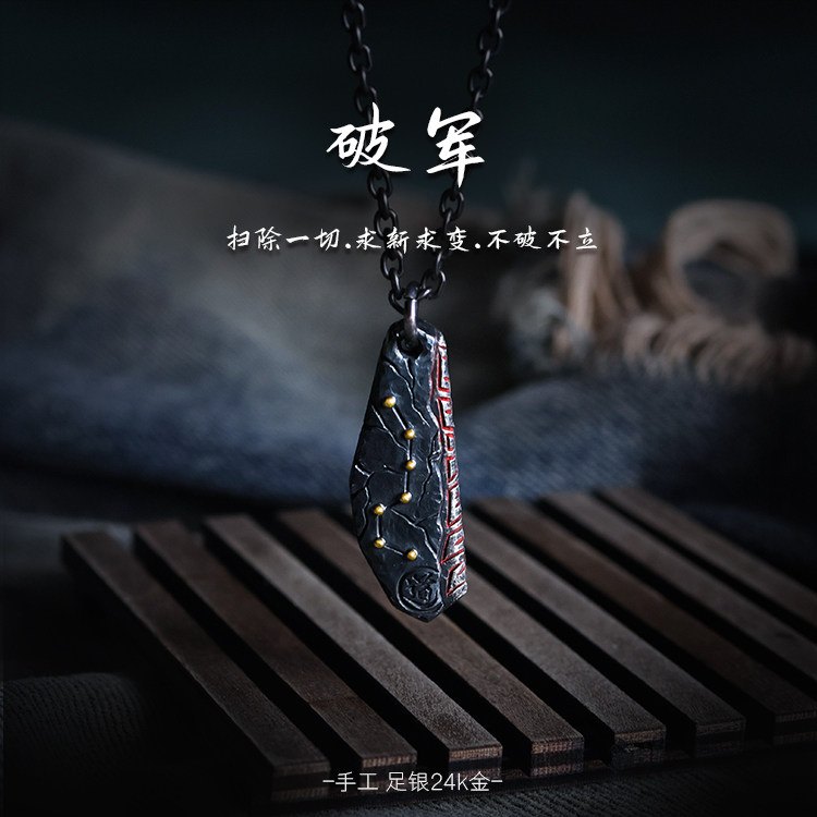 Original Design Beidou Seven Stars Gold-Plated Sterling Silver Pendant Hand-Inlaid with Cinnabar Taoist Style Gift Necklace for Men, Niche Style