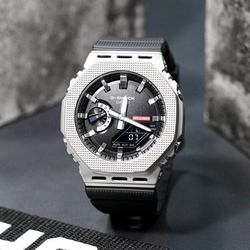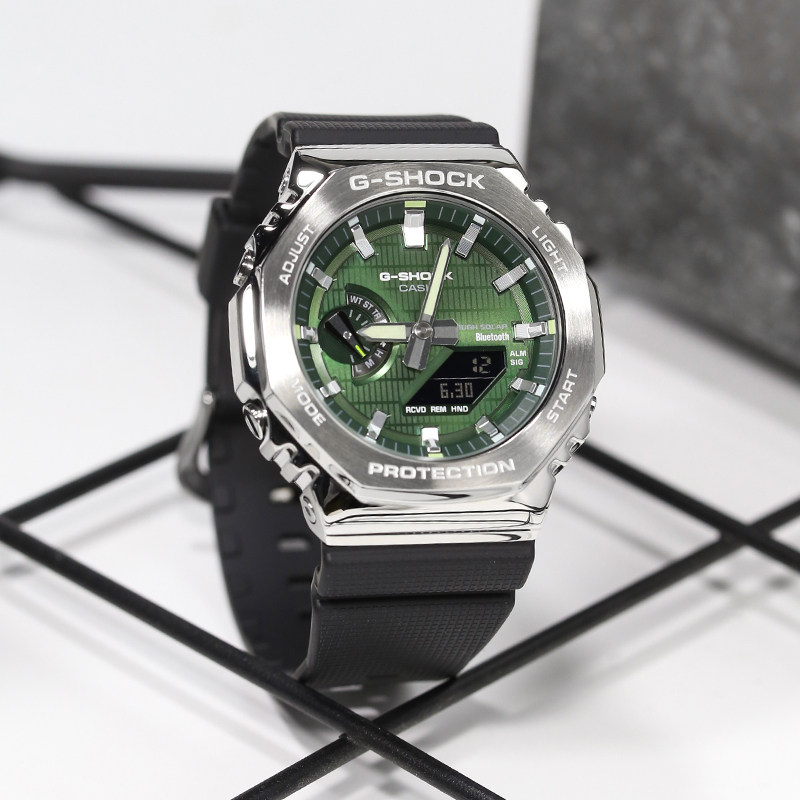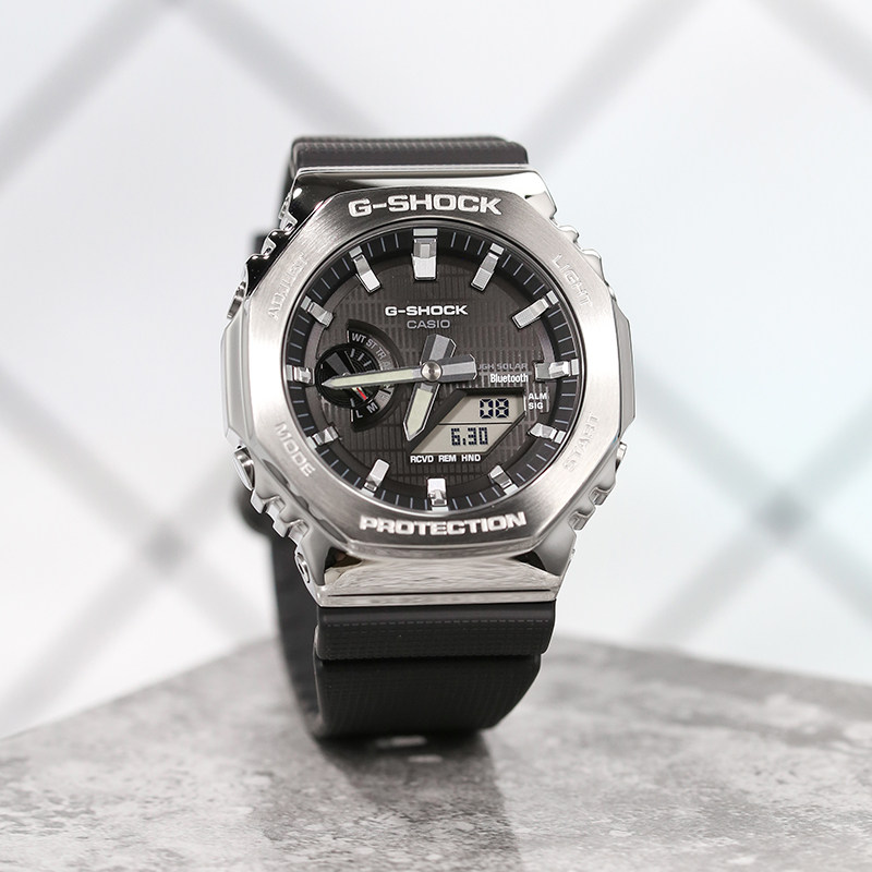 Casio Watch Men's Gshock Metal Farmhouse Oak Octagonal Solar-Powered Bluetooth Business Men's Gbm-2100