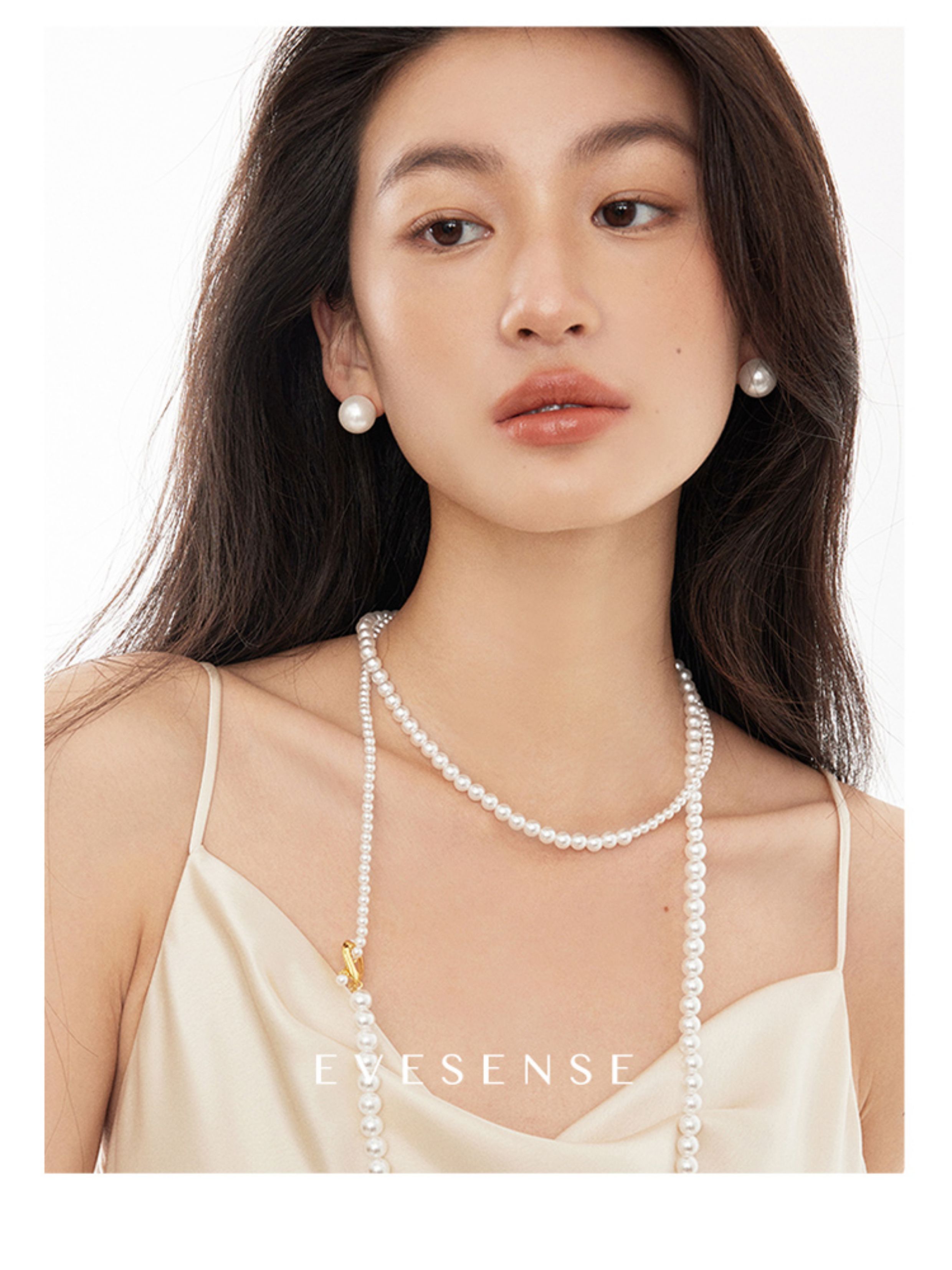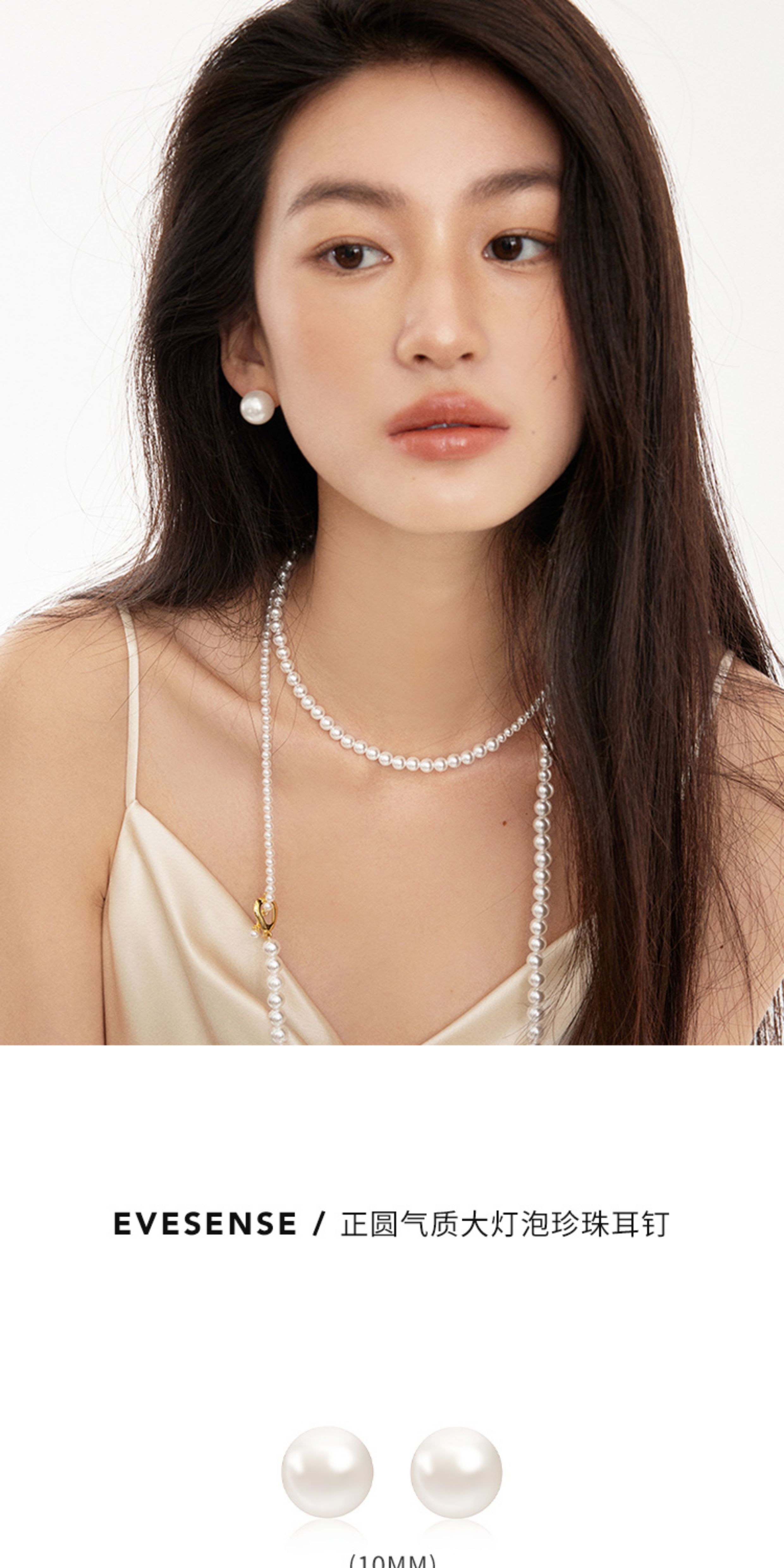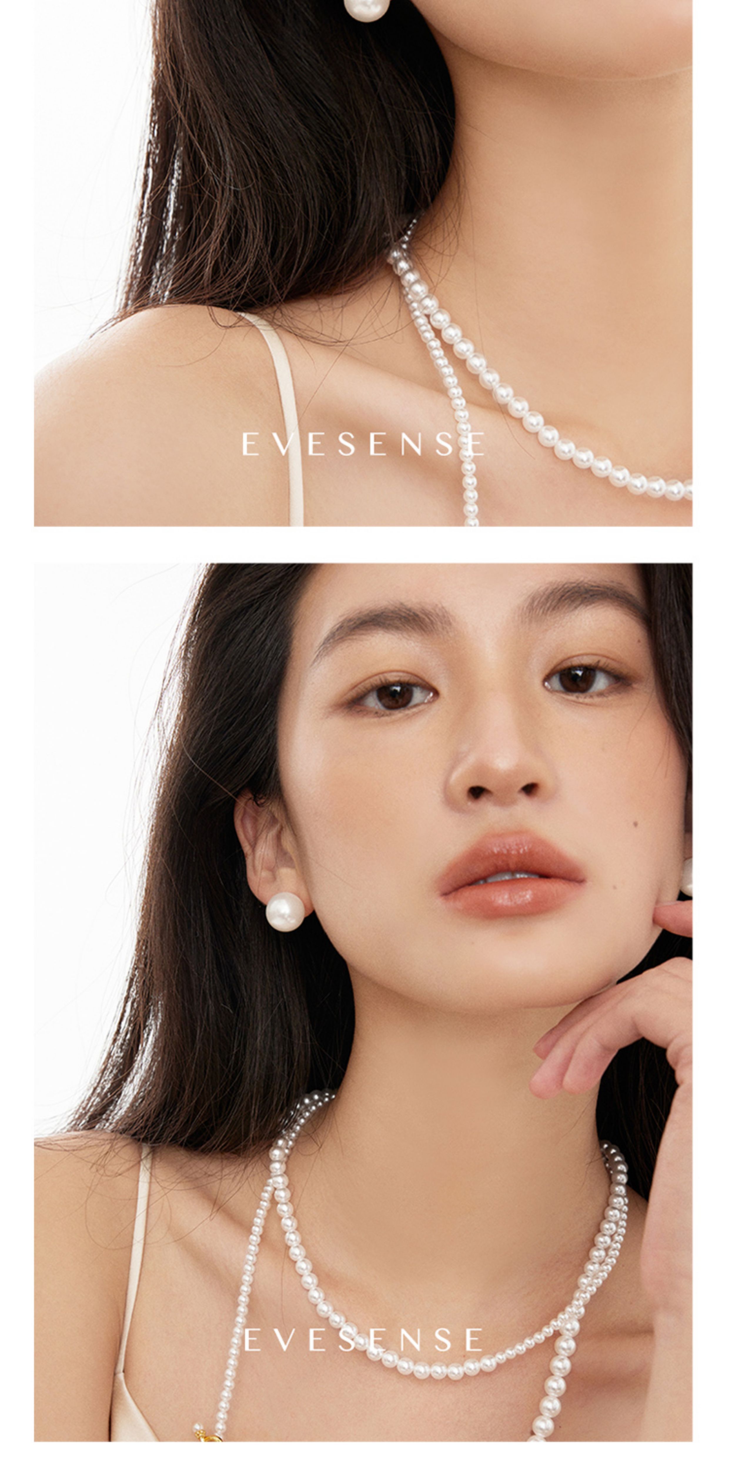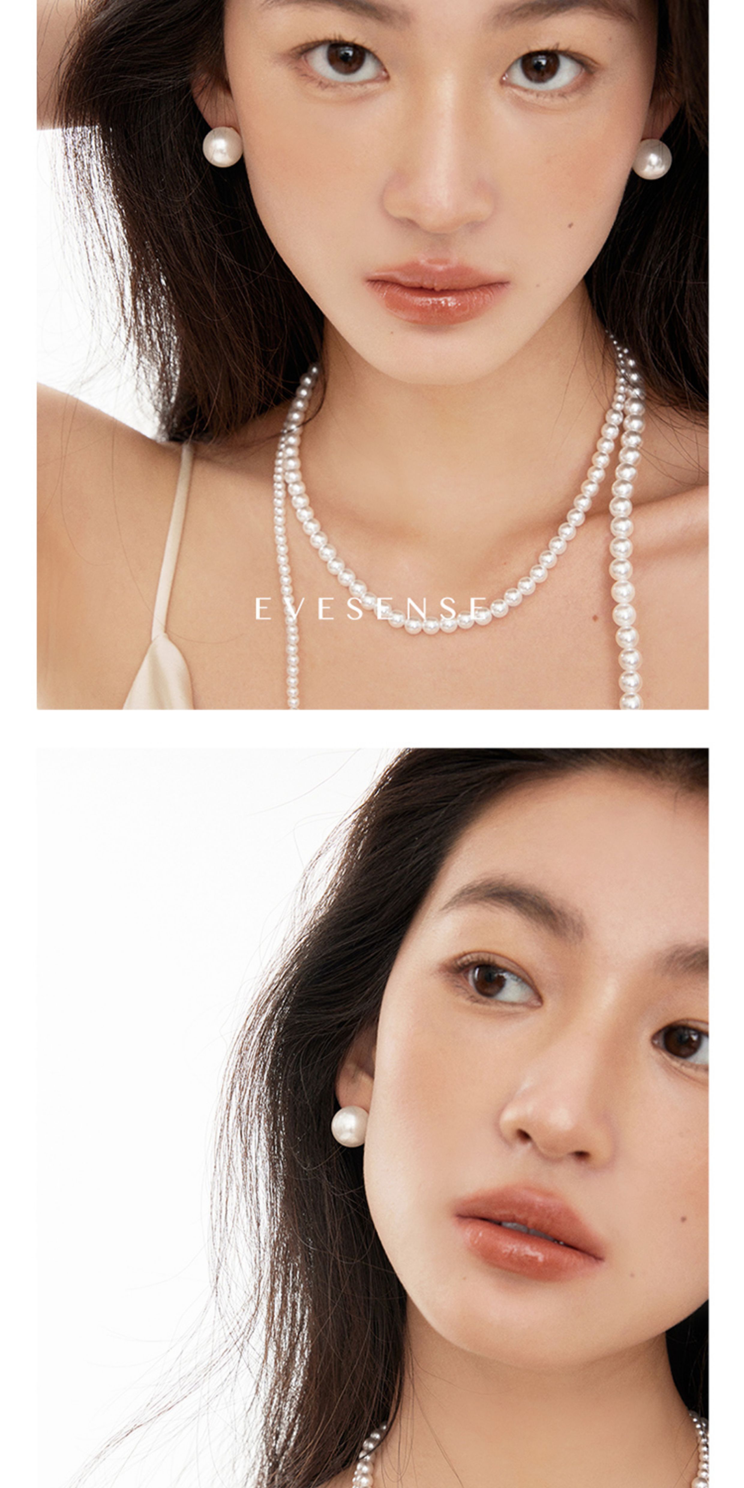 Evesense Round Elegant Large Pearl Stud Earrings Vintage Light Luxury 925 Silver Ear Studs High-End Earrings for Women