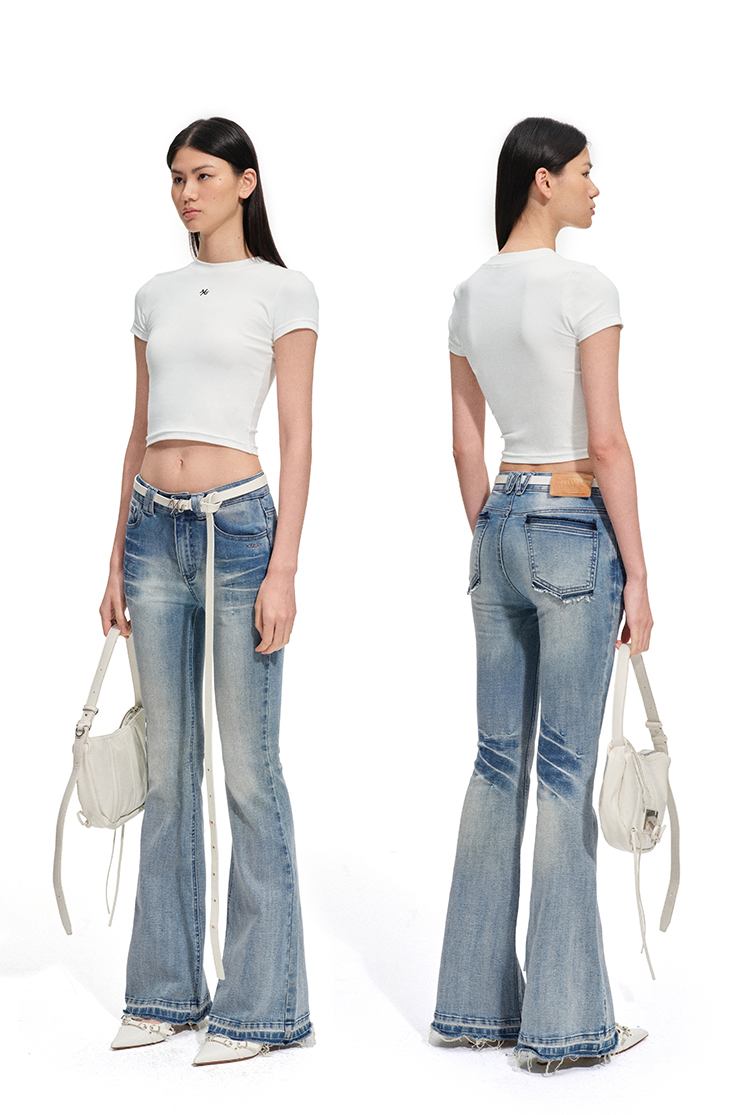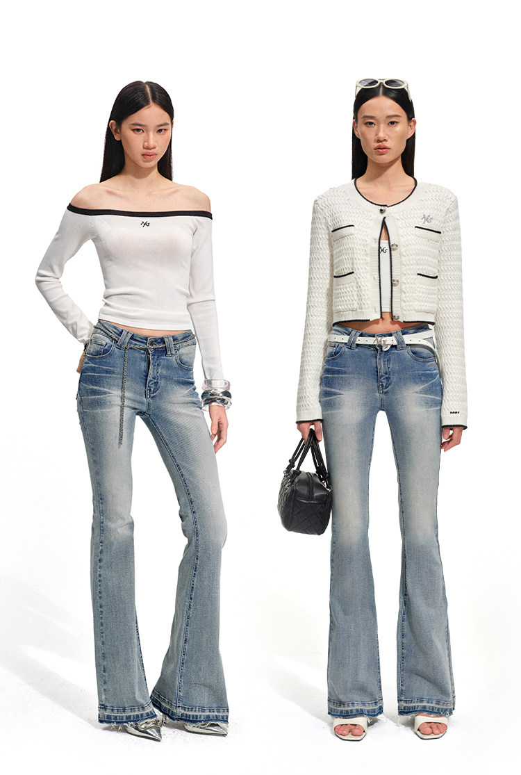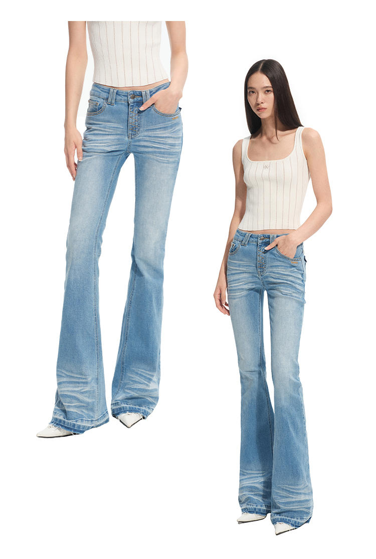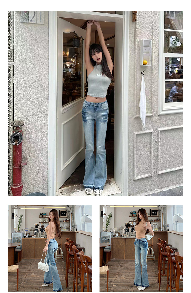 Naws【+5Cm N1】Supermodel Pants, Non-Bulging Denim, Magic Pants Style, Washed Tight-Fitting Flared Jeans