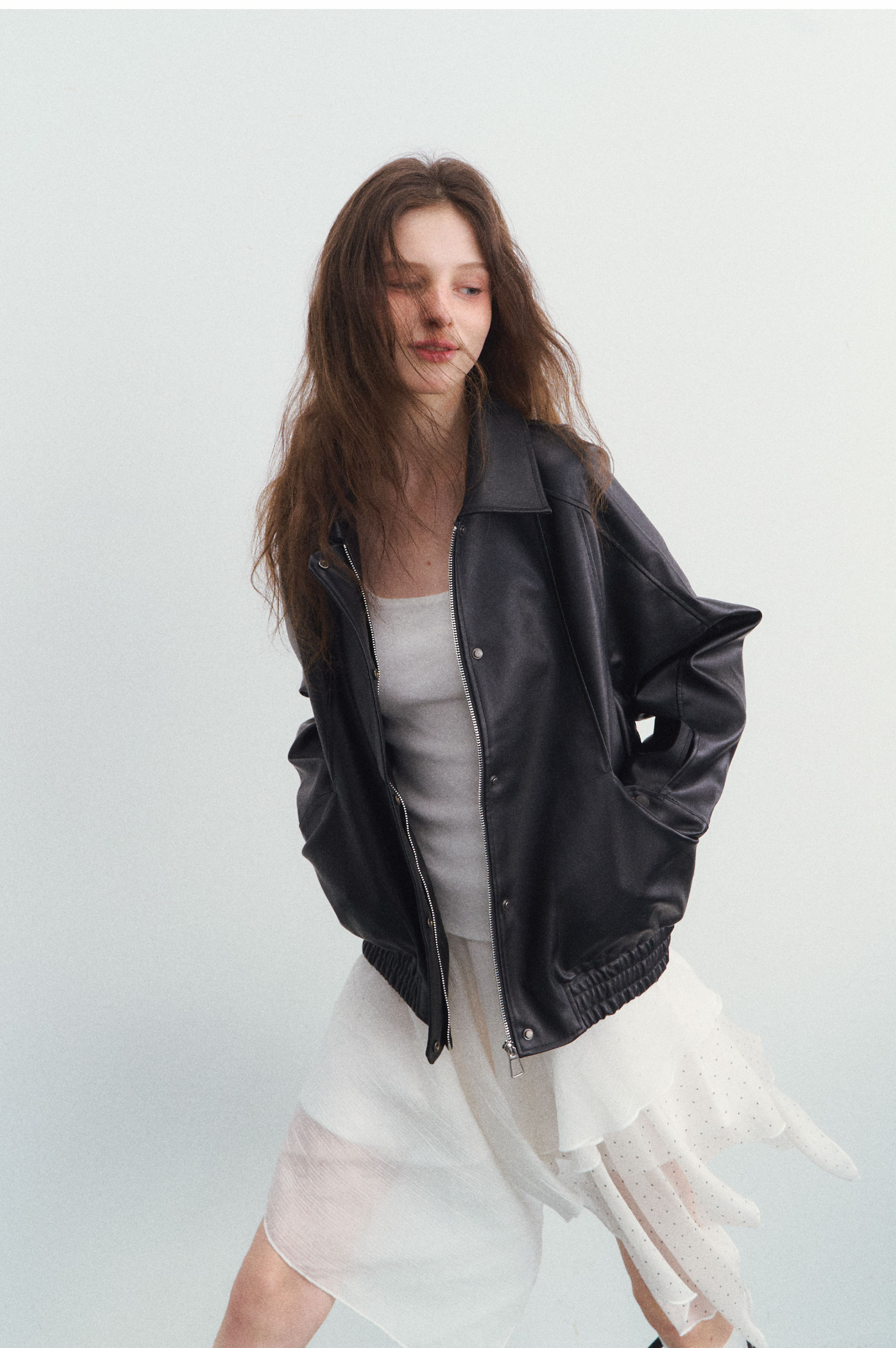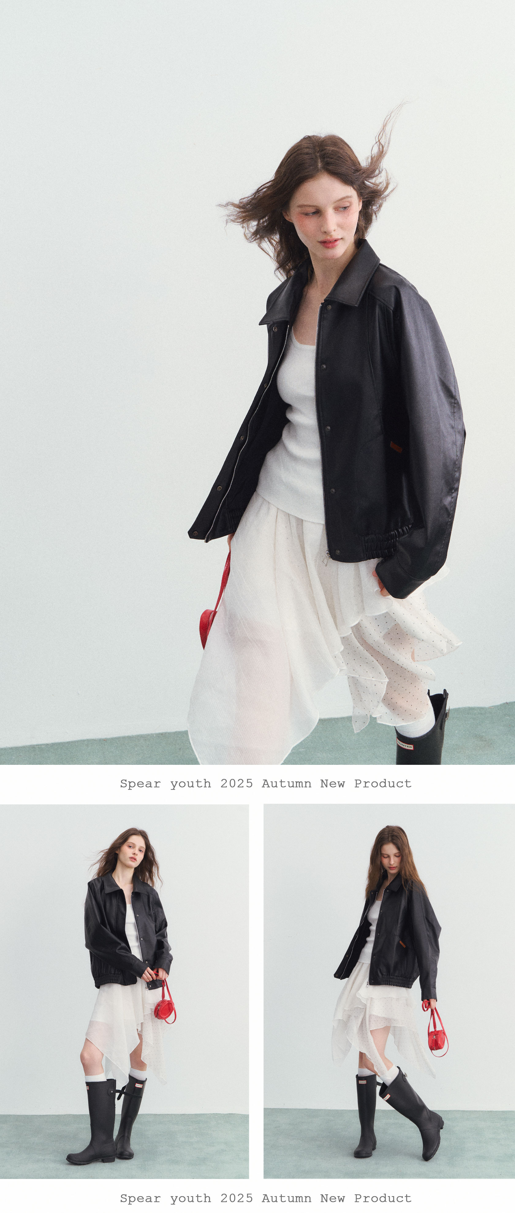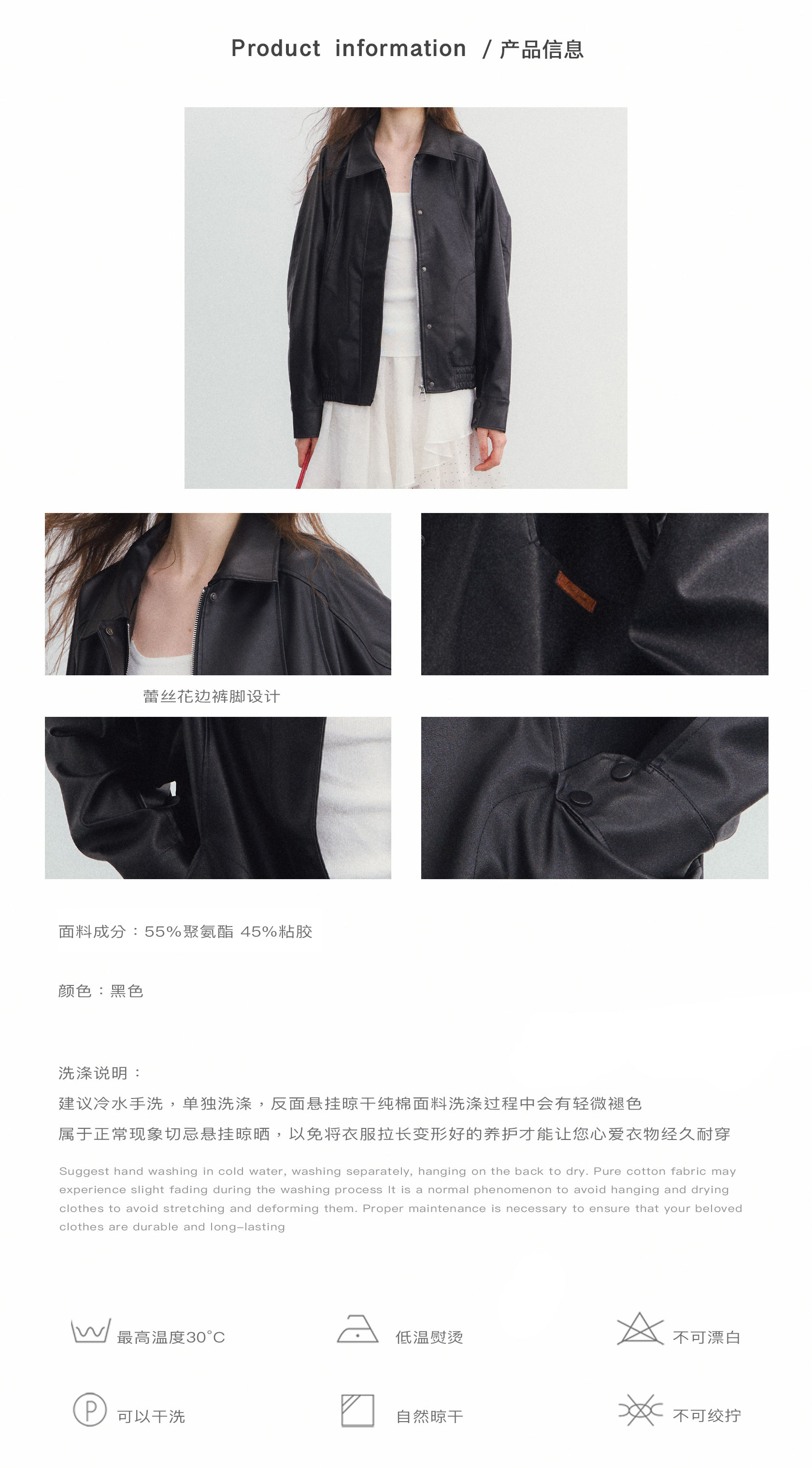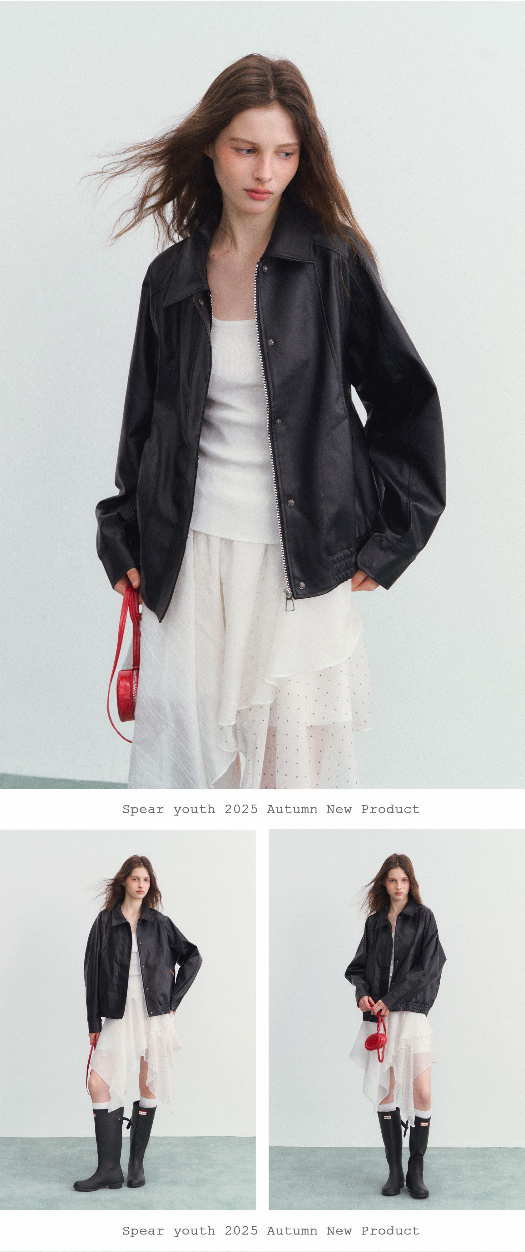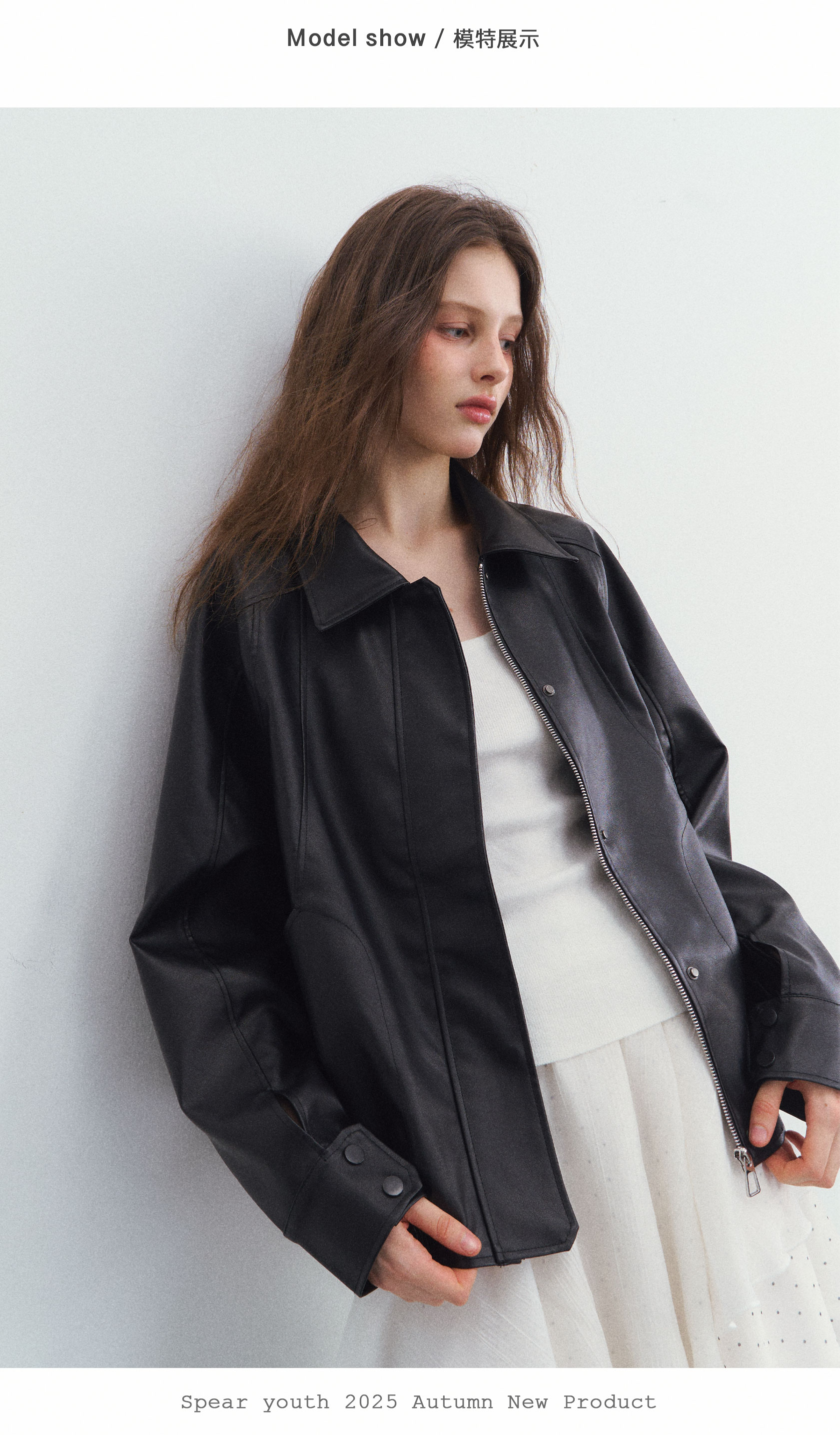Spear Youth "Nana” Korean Style Black Pu Leather Jacket, Loose Casual Versatile Coat, Vintage Top