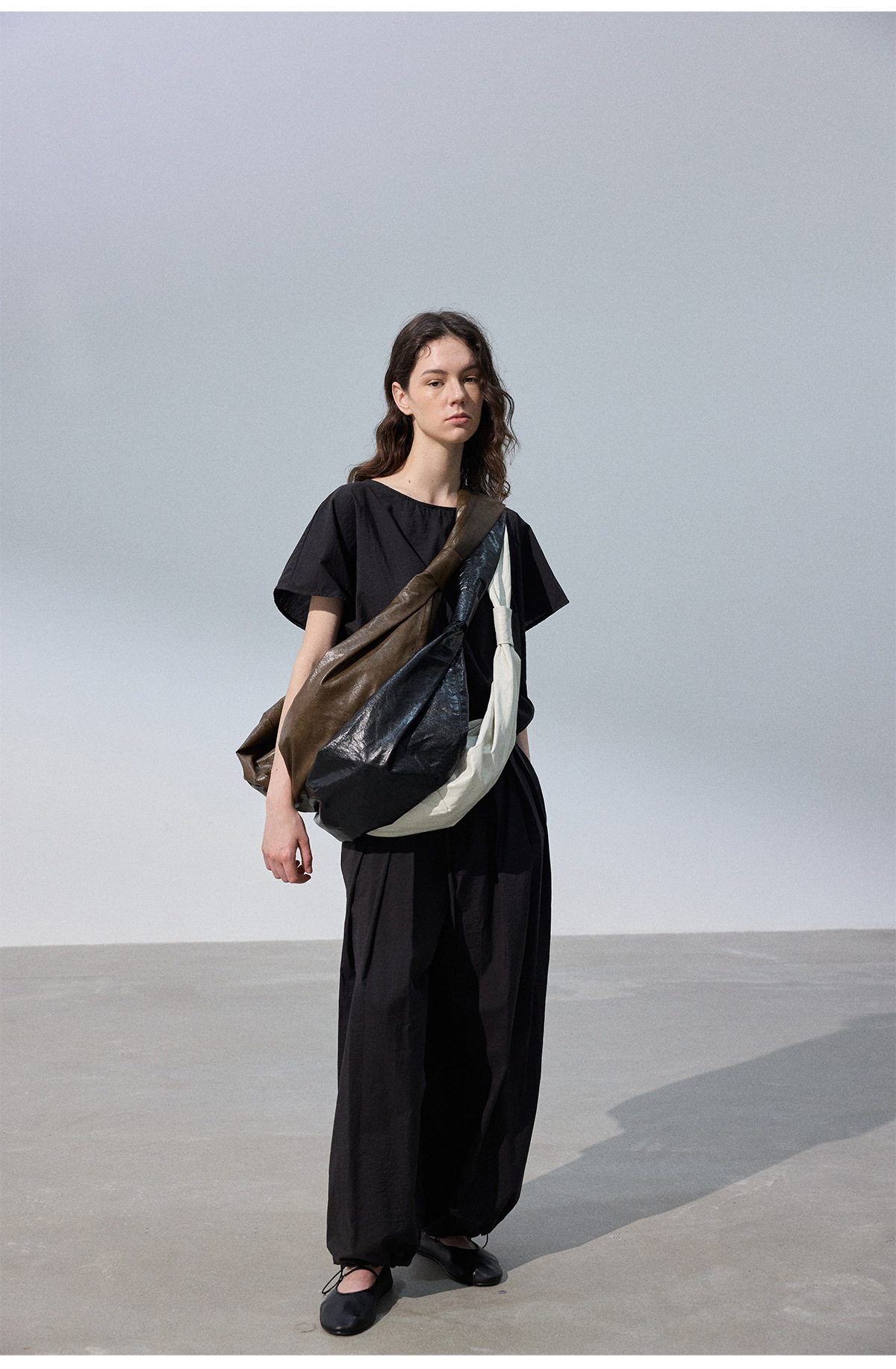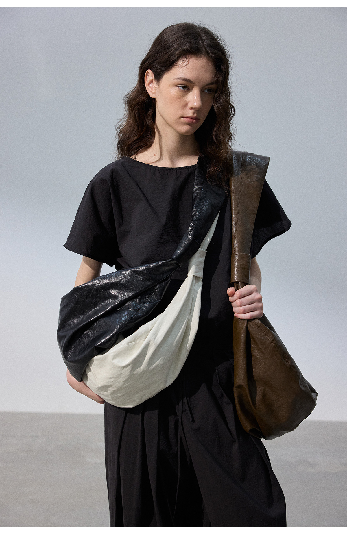 [Photwo] Thirteen Rows Women's Early Autumn New Style Elegant Commuting Simple Design Paper-Like Oil Wax Leather Croissant Bag