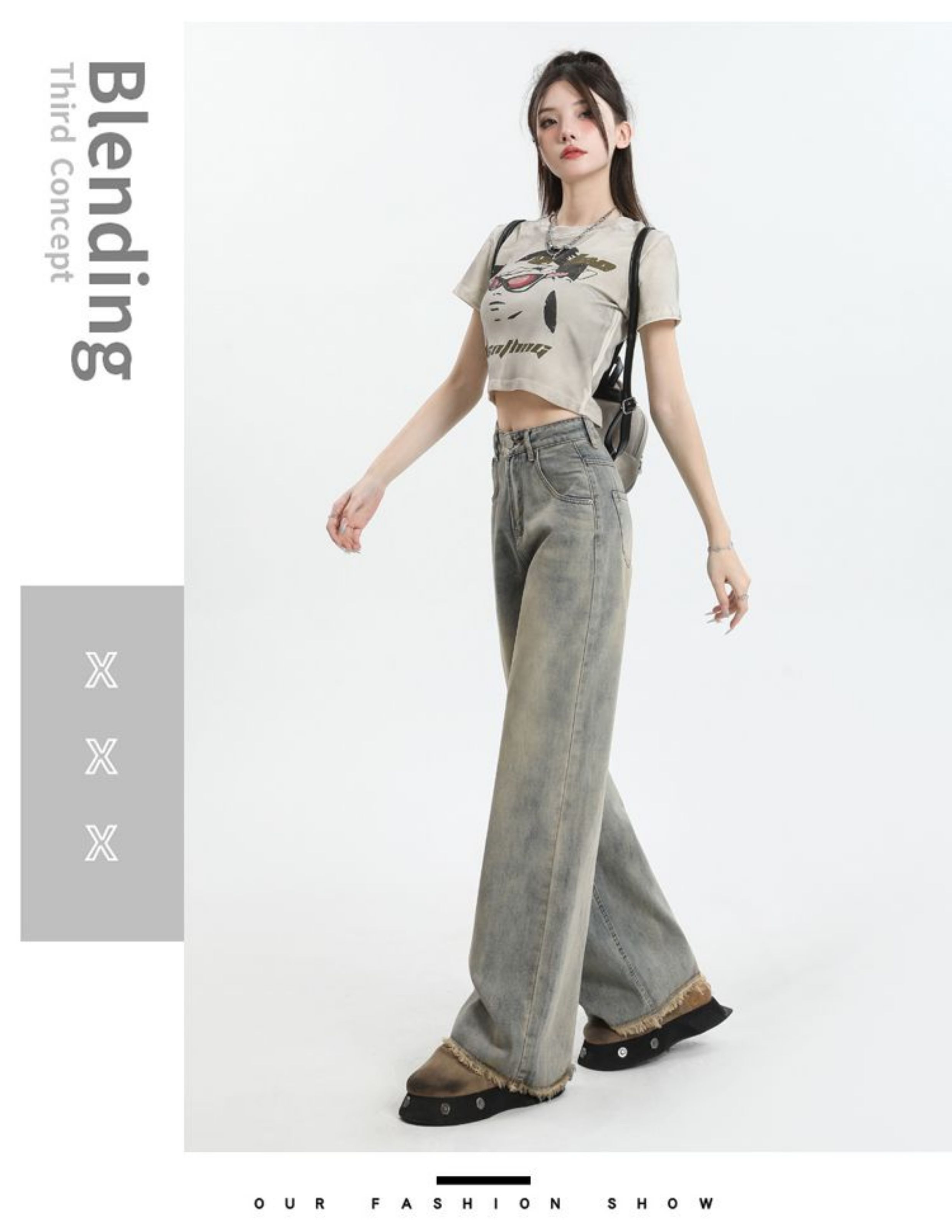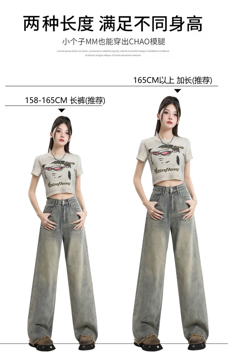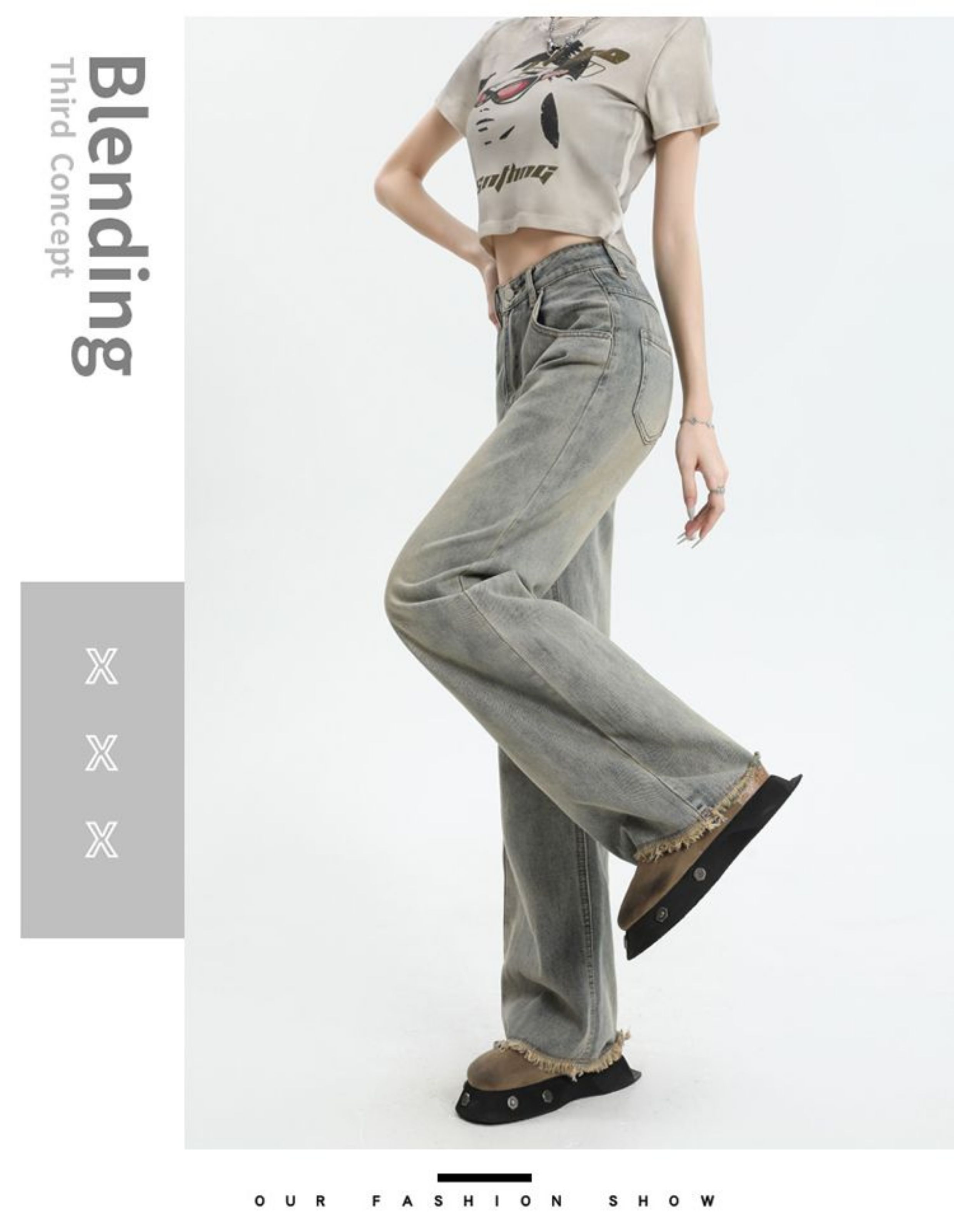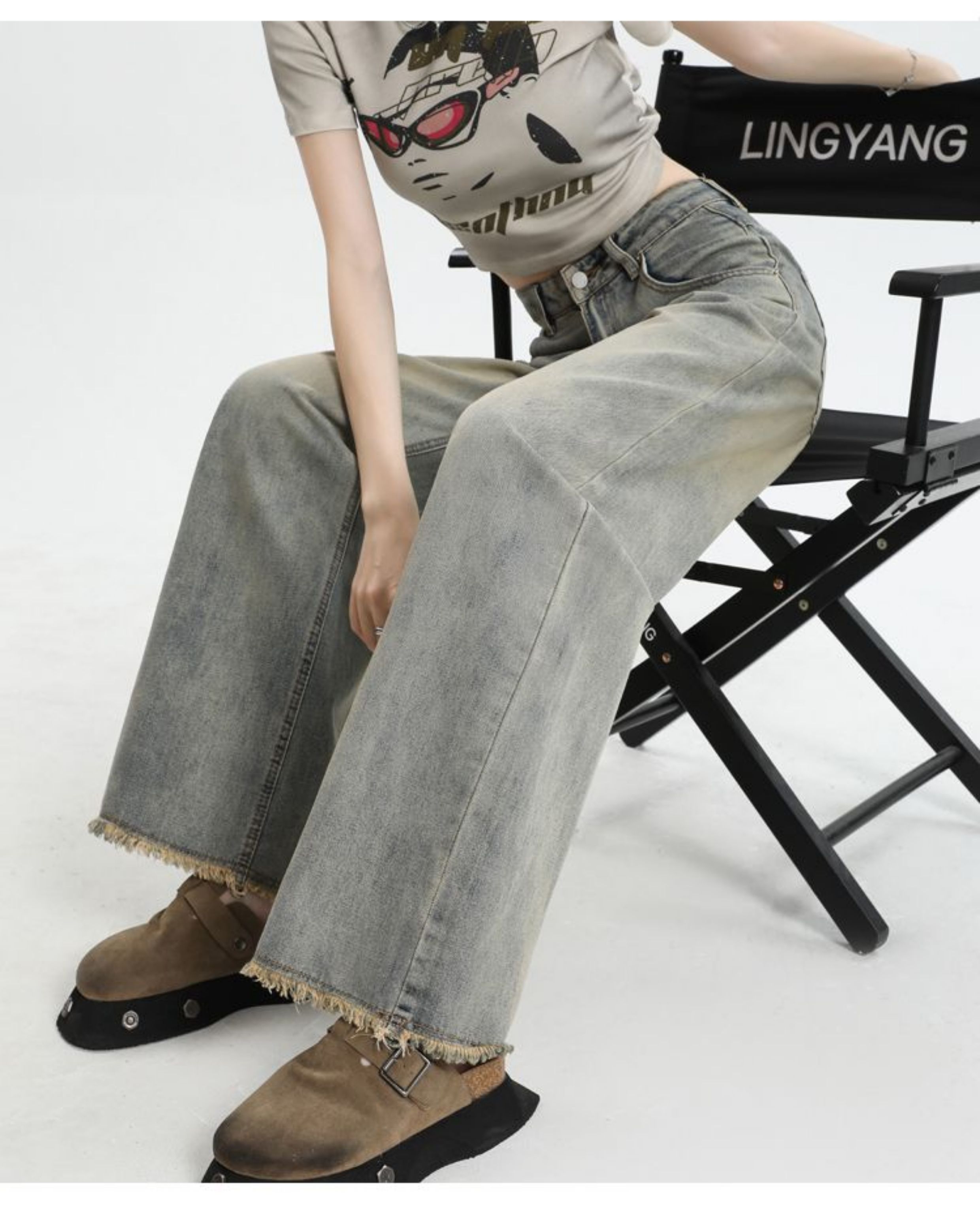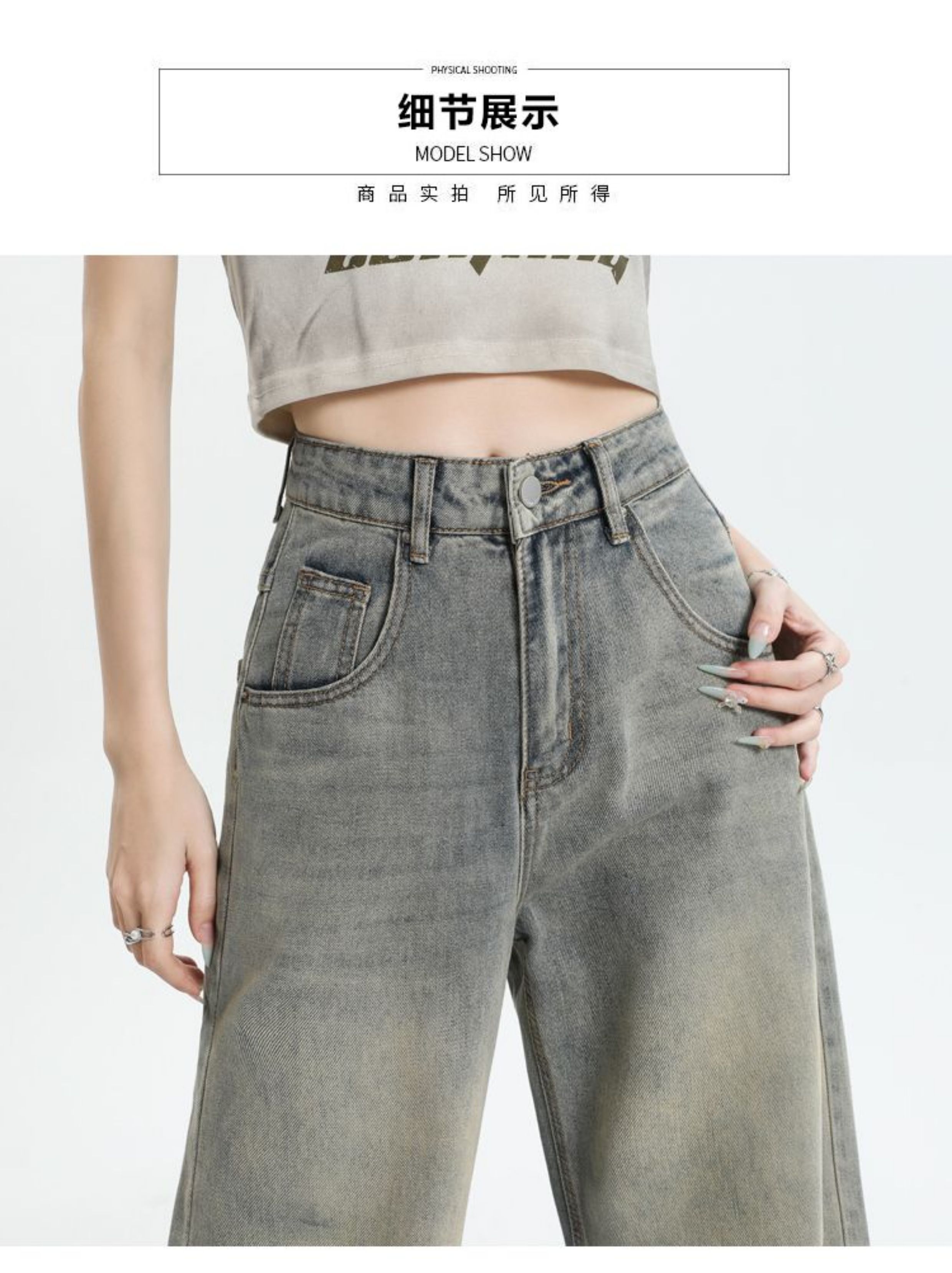 La Chapelle Retro Wide-Leg Jeans for Women, Autumn and Winter 2025 New Style, Fleece-Lined, Loose-Fitting, Bf Lazy Style Straight-Leg Pants