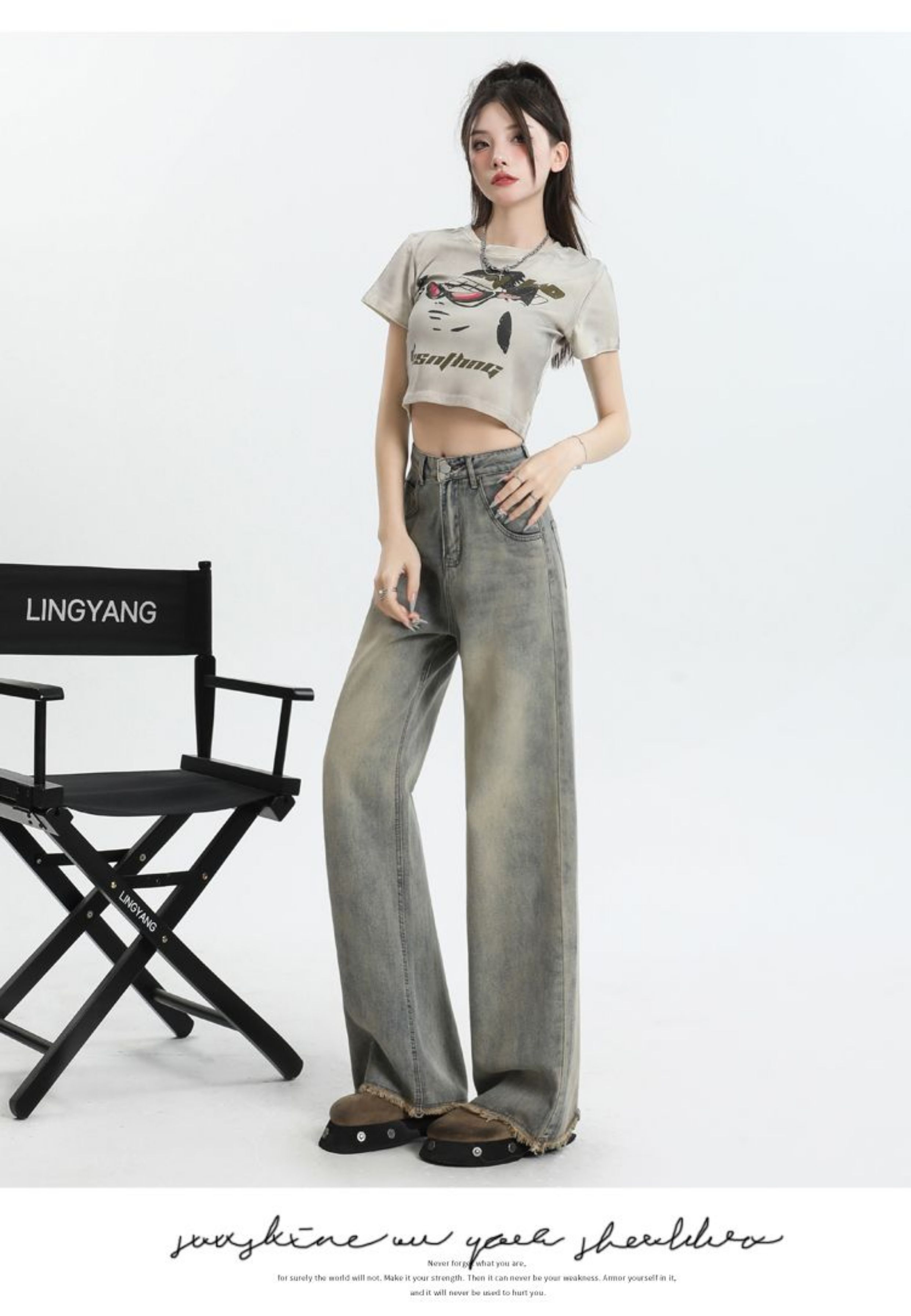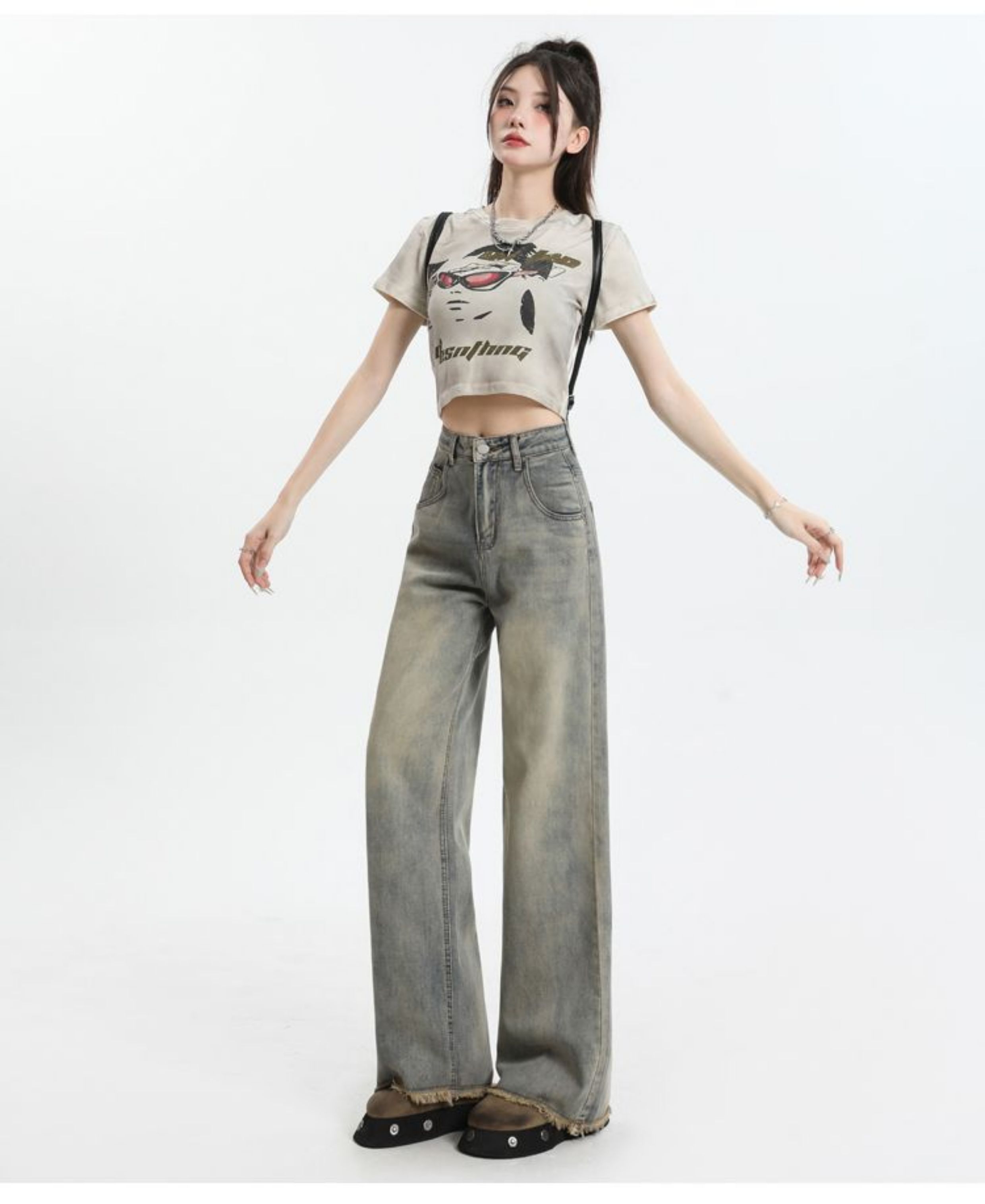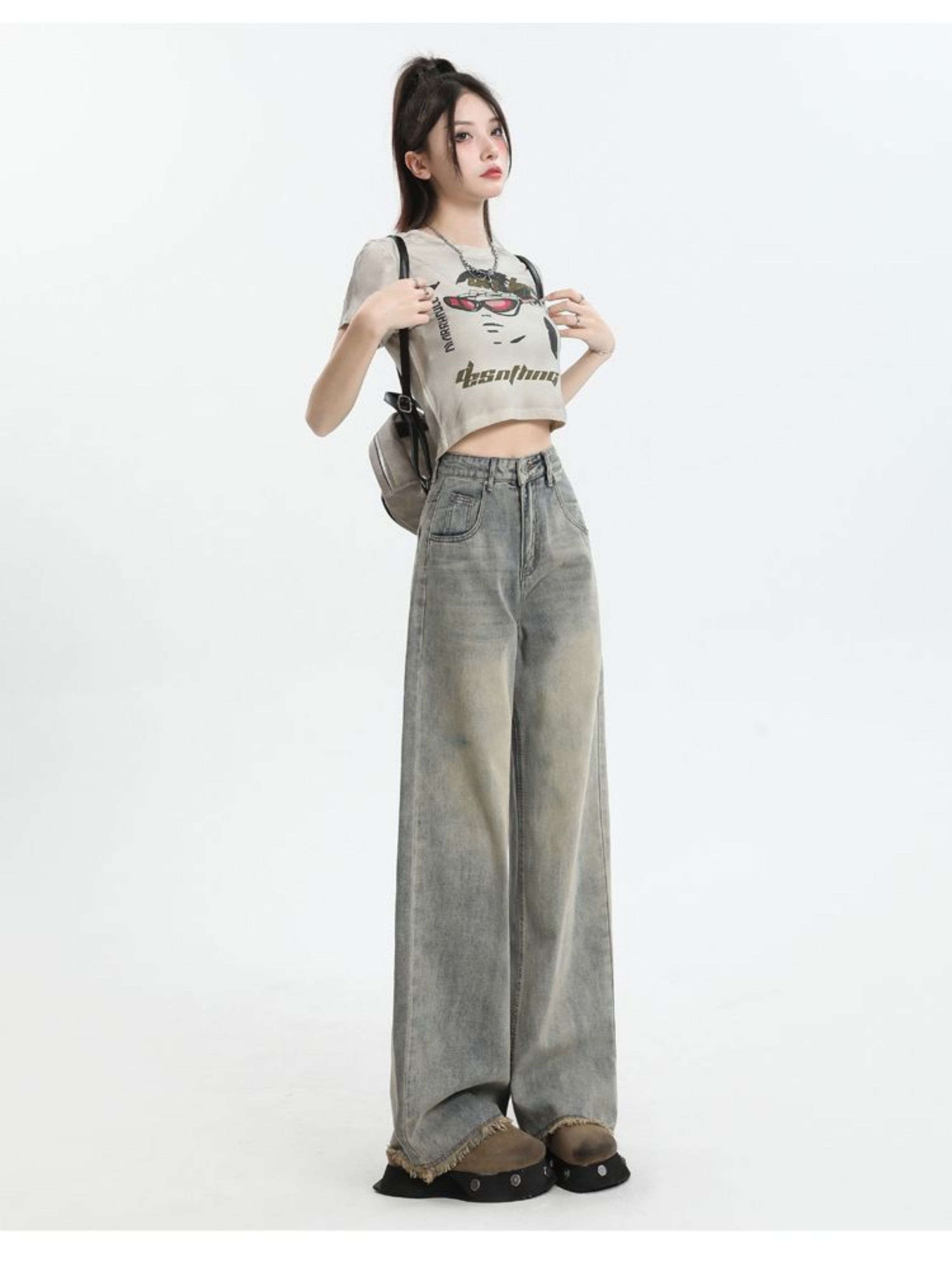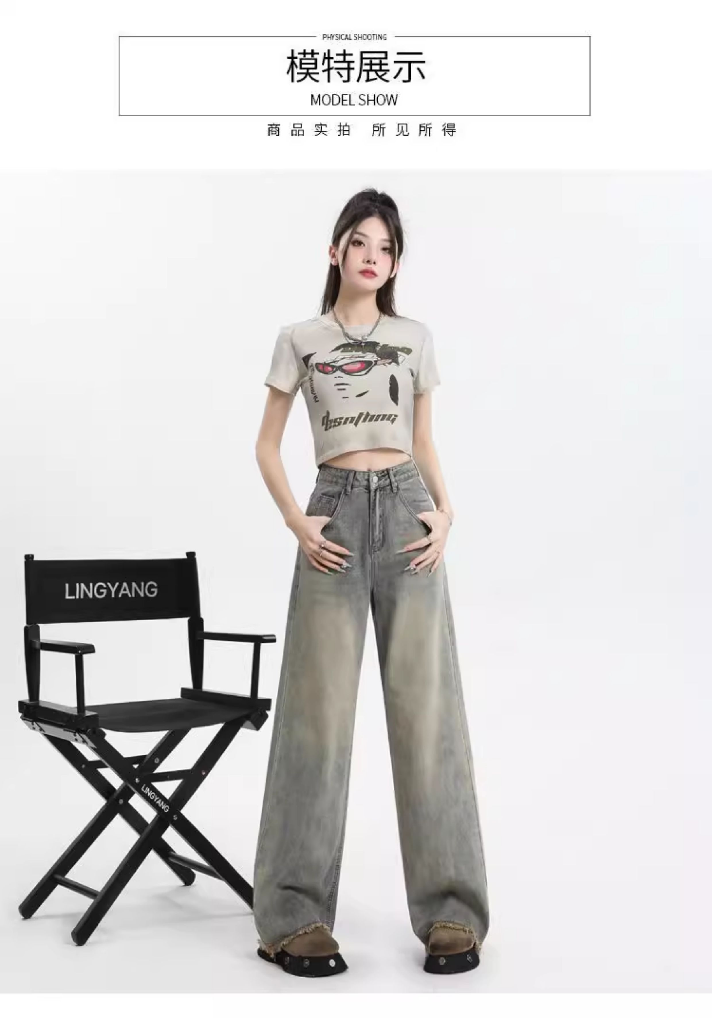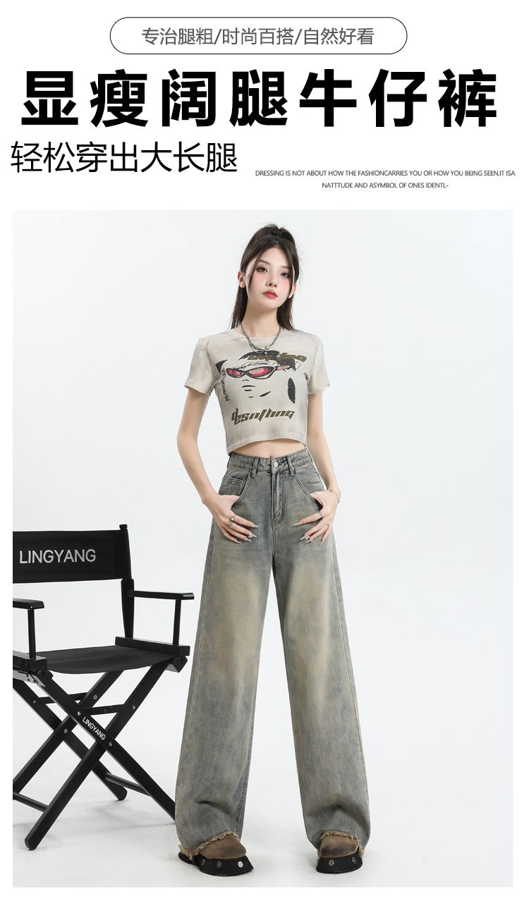La Chapelle Retro Wide-Leg Jeans for Women, Autumn and Winter 2025 New Style, Fleece-Lined, Loose-Fitting, Bf Lazy Style Straight-Leg Pants