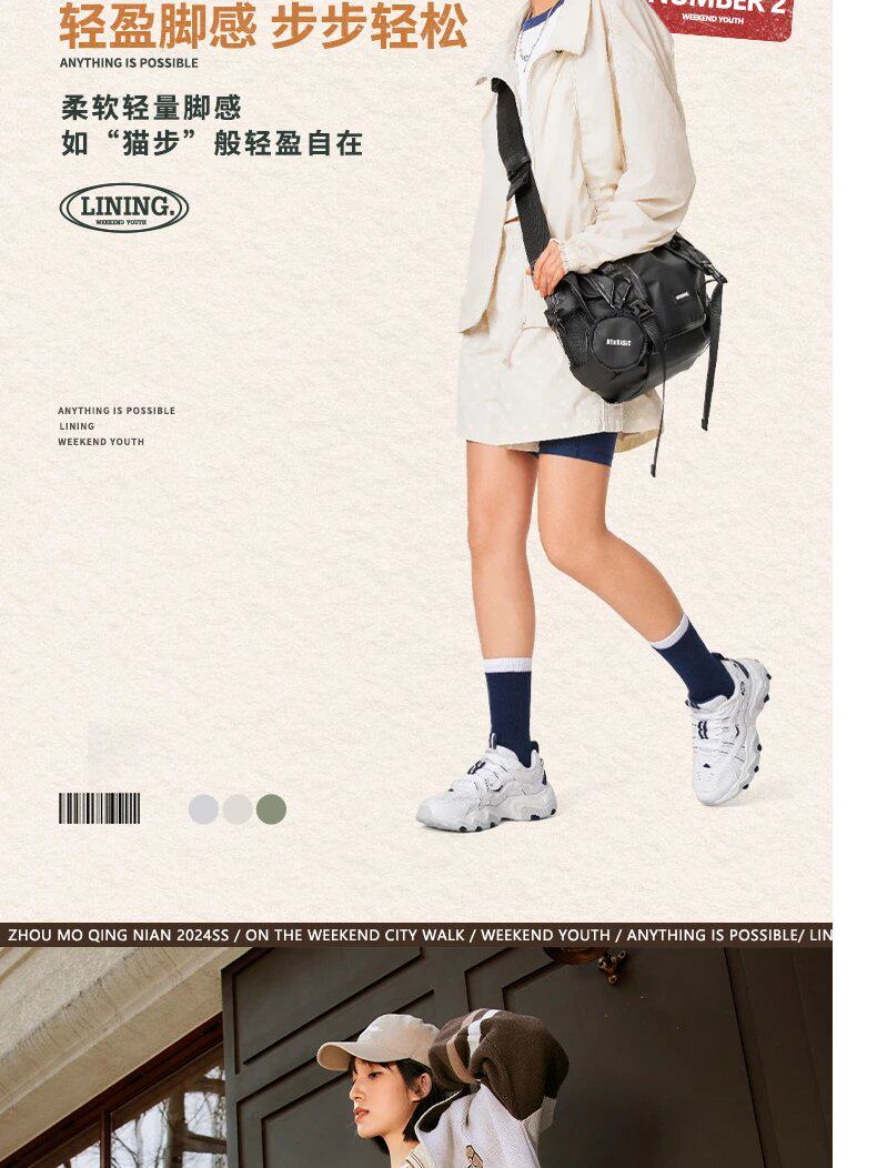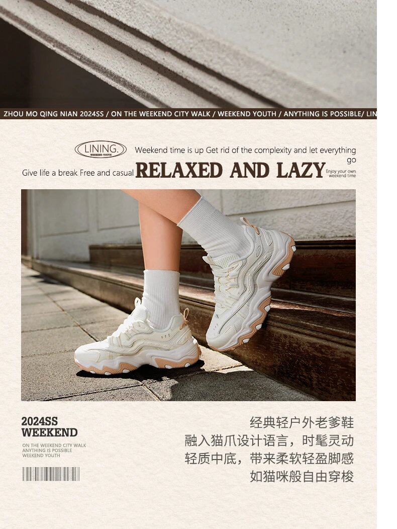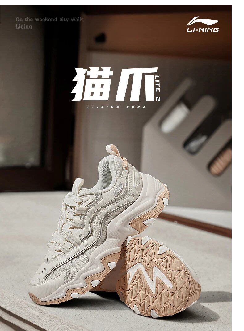 Li-Ning Cat Claw Sneakers for Women 2026 New Versatile Dad Shoes Height-Increasing Shock-Absorbing Soft Sole Spring Casual Shoes for Women