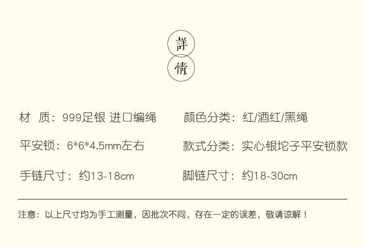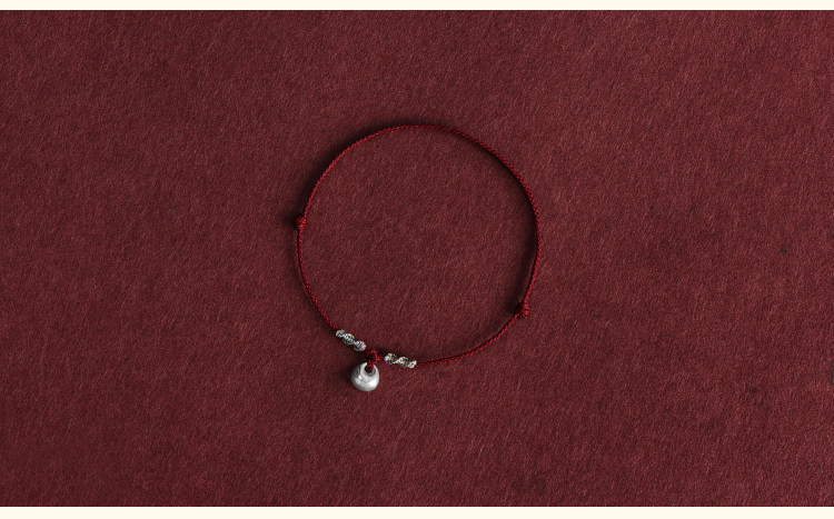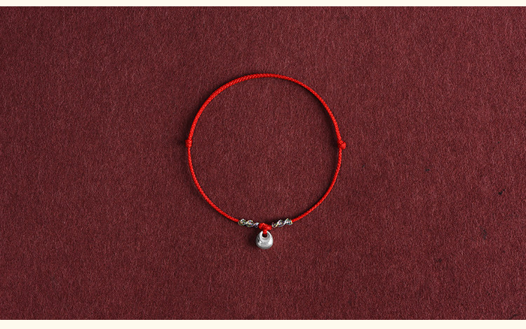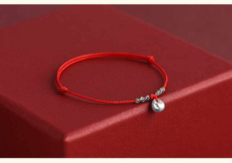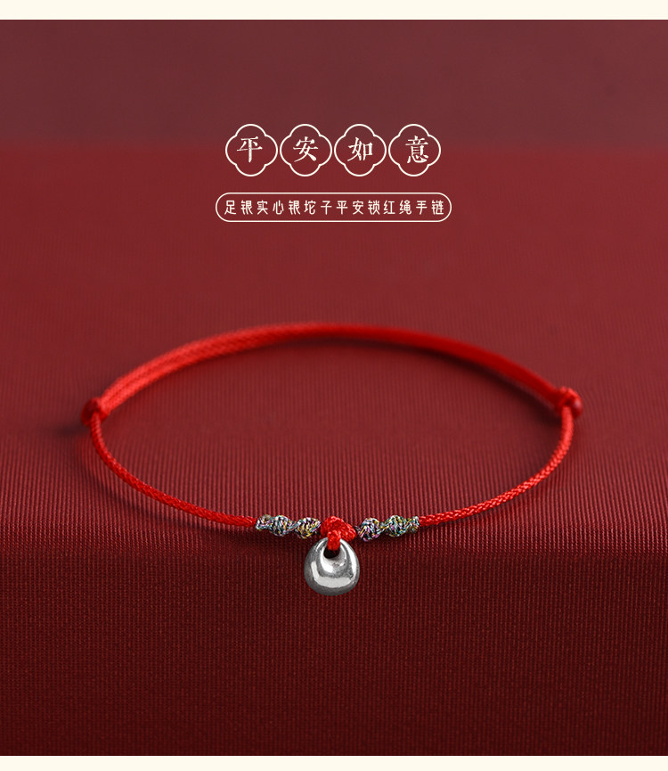 Solid 999 Pure Silver Nugget Ultra-Thin Red String Bracelet for Men and Women, Pure Silver Safety Lock Pendant, Zodiac Year Ultra-Thin Bracelet
