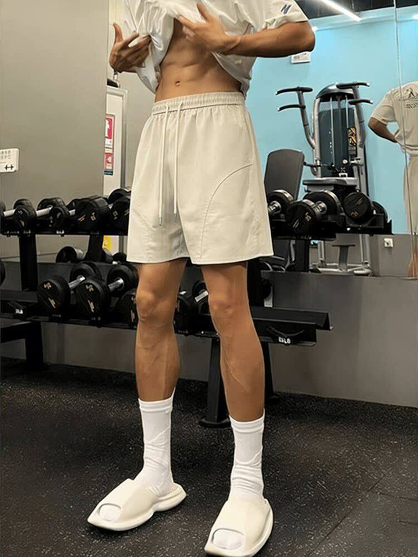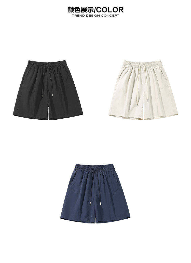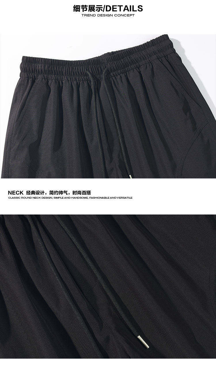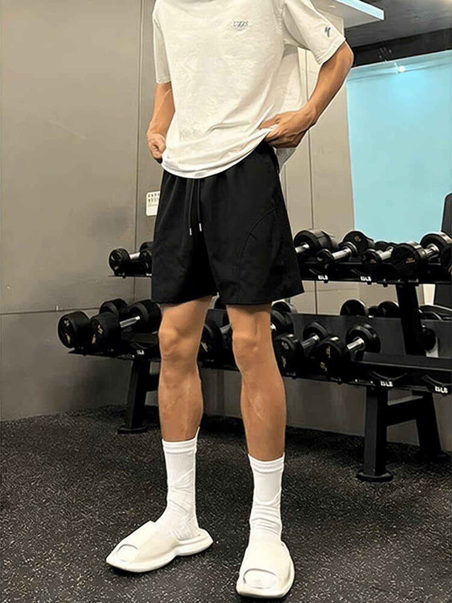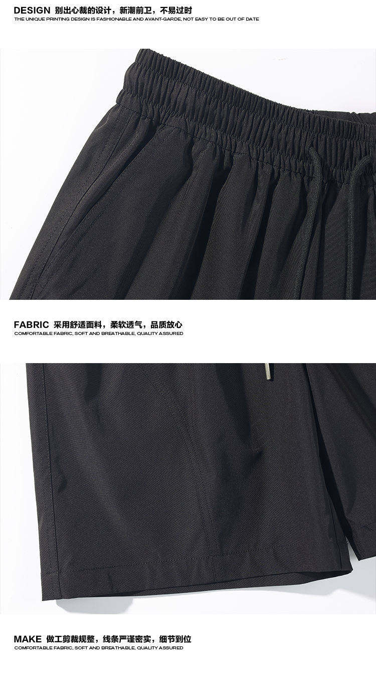 Ice Silk Quick-Drying Black Shorts for Men, Summer Fitness Sports Pants, Three-Quarter Length, Below the Knee, American Style Five-Quarter Beach Shorts