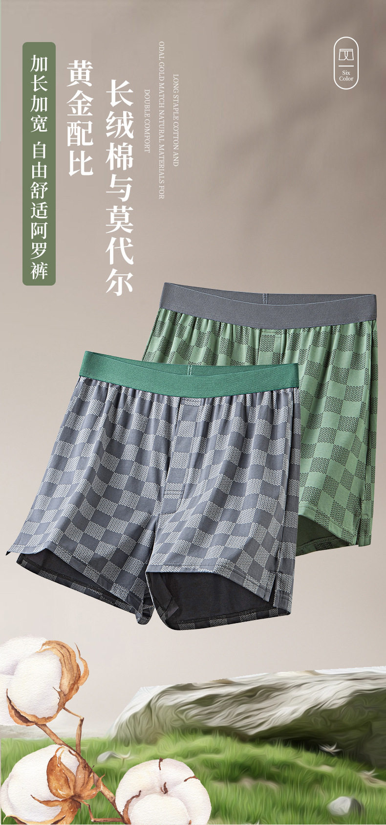 2-Pack of Modal Men's Boxer Briefs, Men's Underwear, Loose and Comfortable Square-Cut Shorts for Home and Sleep, Summer