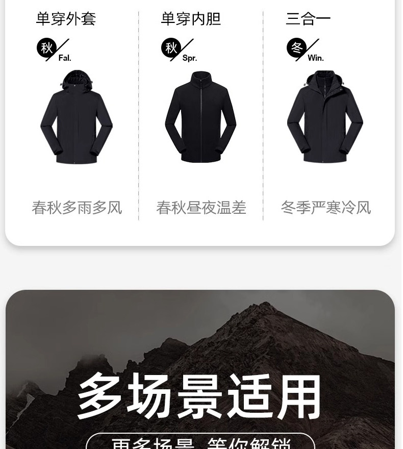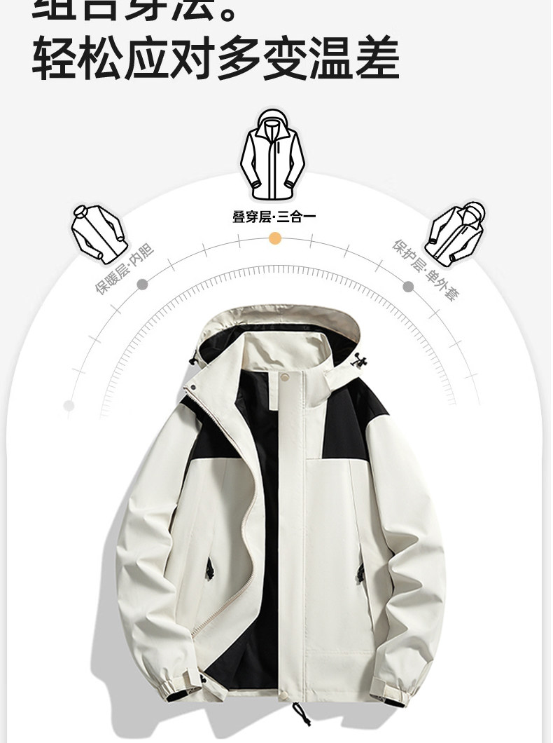 Jacket for Men and Women, Spring and Autumn Outdoor Three-In-One Detachable Windproof and Waterproof Loose-Fitting Versatile Jacket