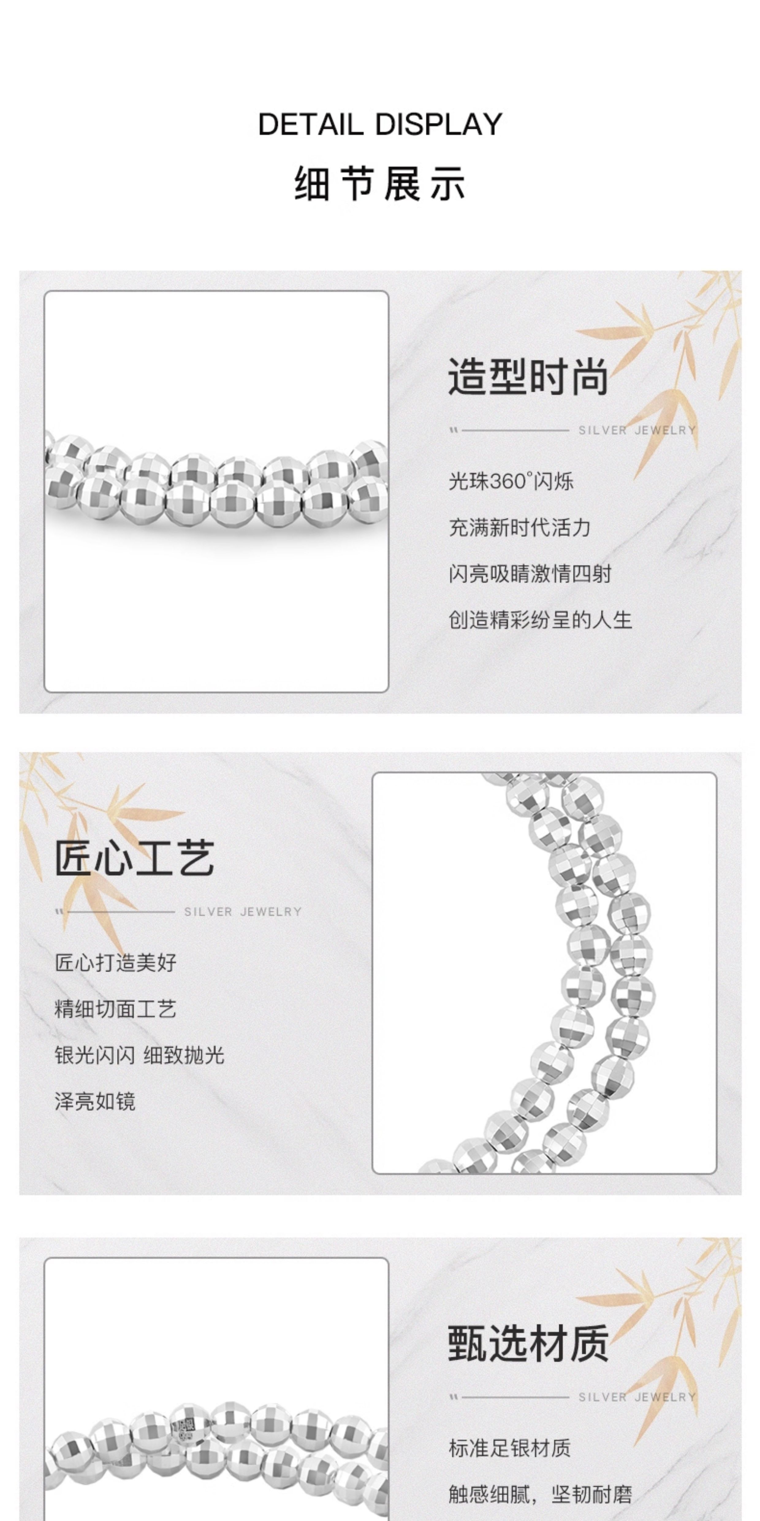 Baoqing Silver Shop Pure Silver Beaded Bracelet, Sterling Silver Multi-Layer Bead Jewelry, Round Bead Birthday Jewelry Gift for Girlfriend