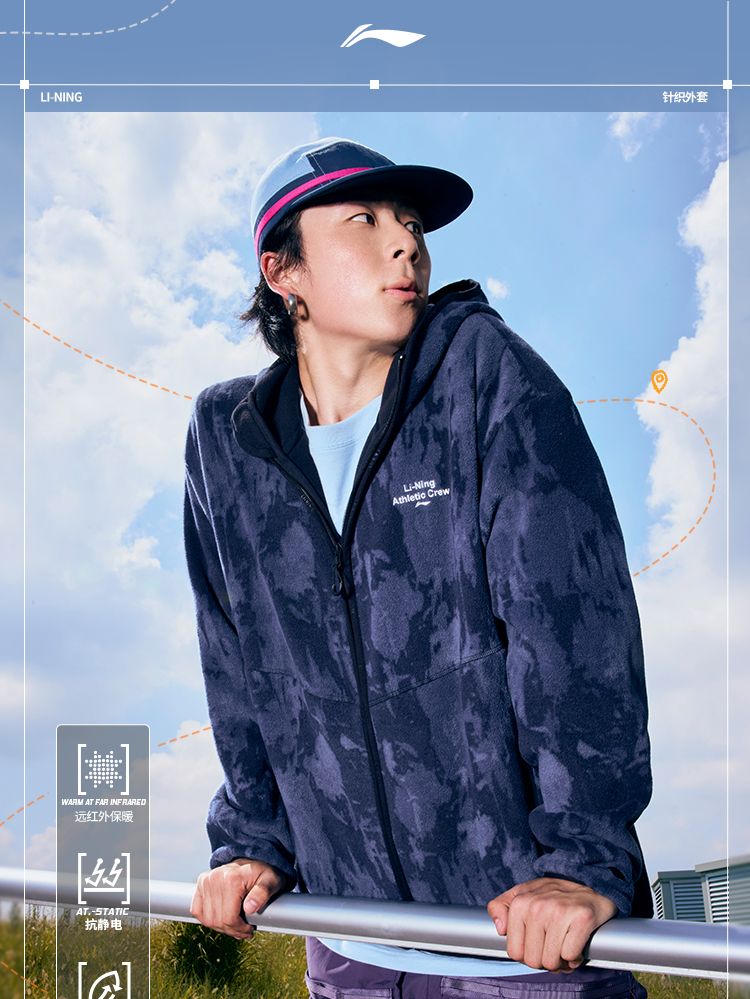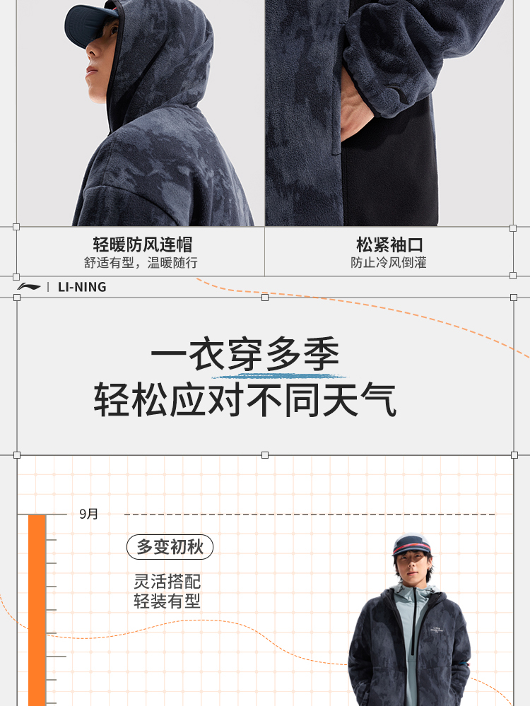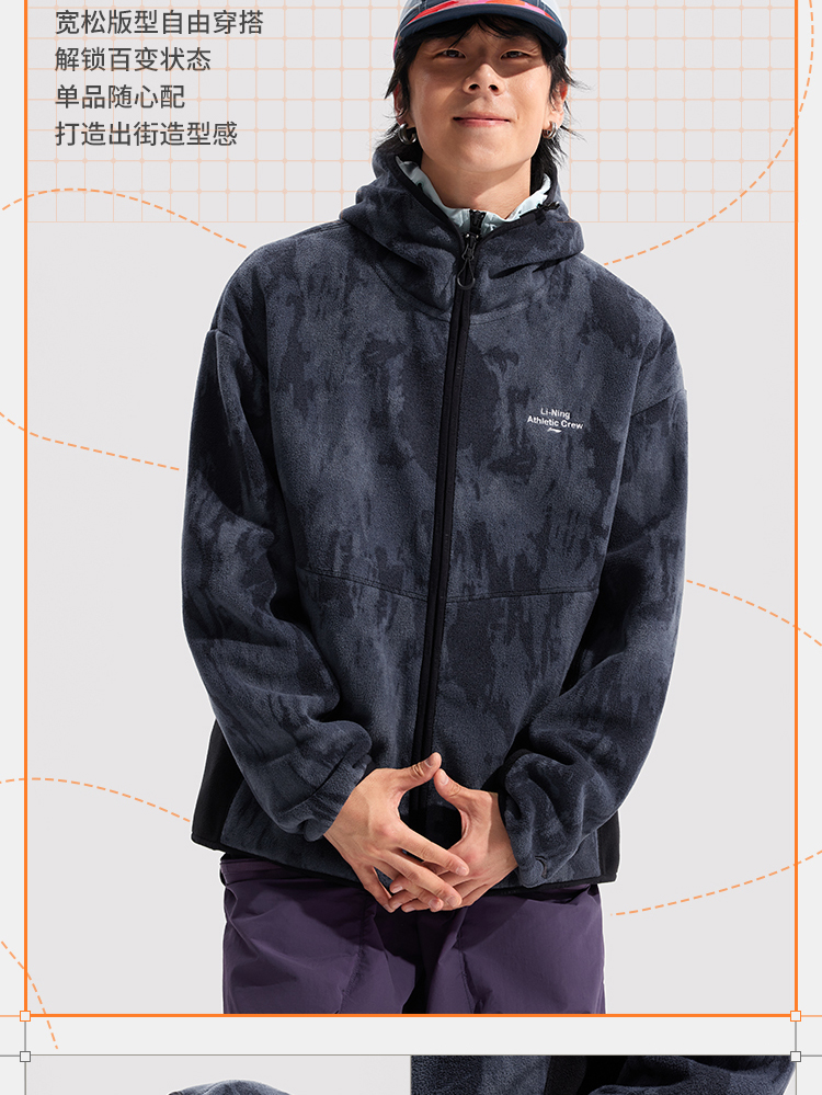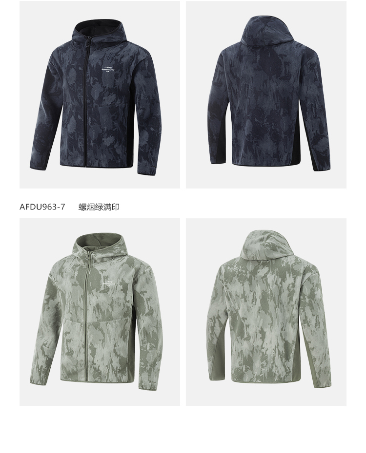 Li-Ning Fleece Jacket for Men, Camouflage Thickened Top, Windproof Outdoor Jacket, Inner Lining, Warm Fleece Jacket