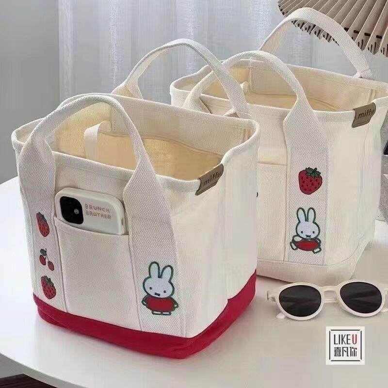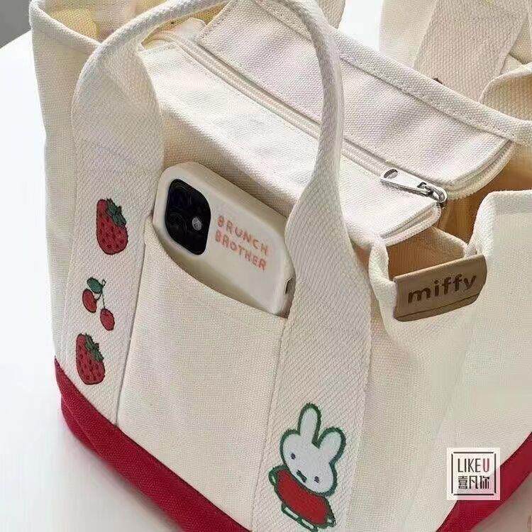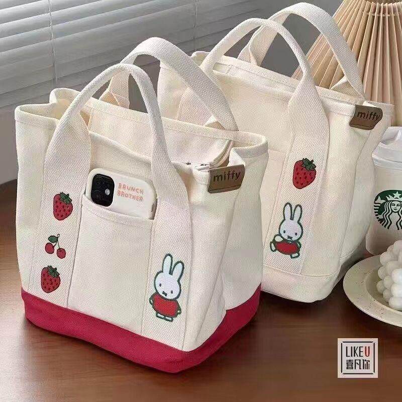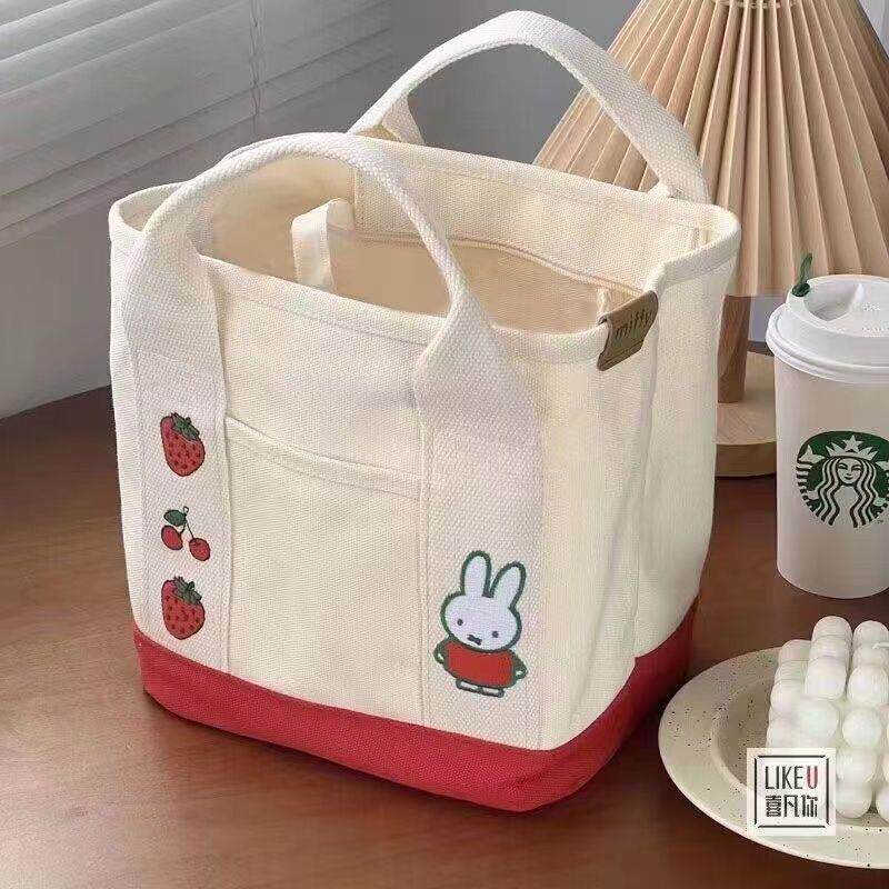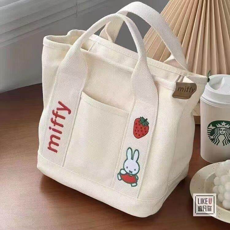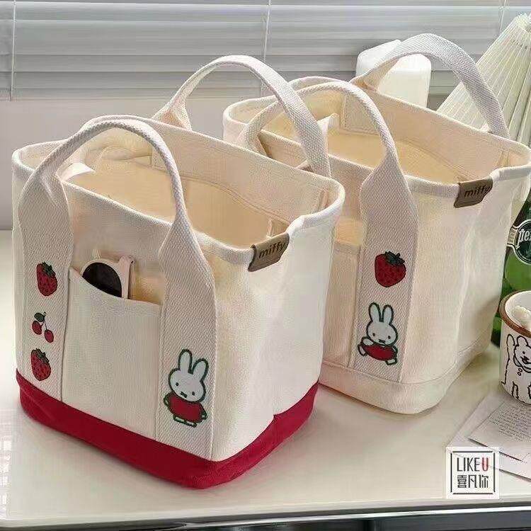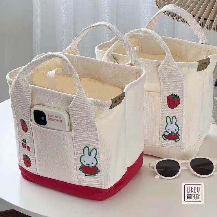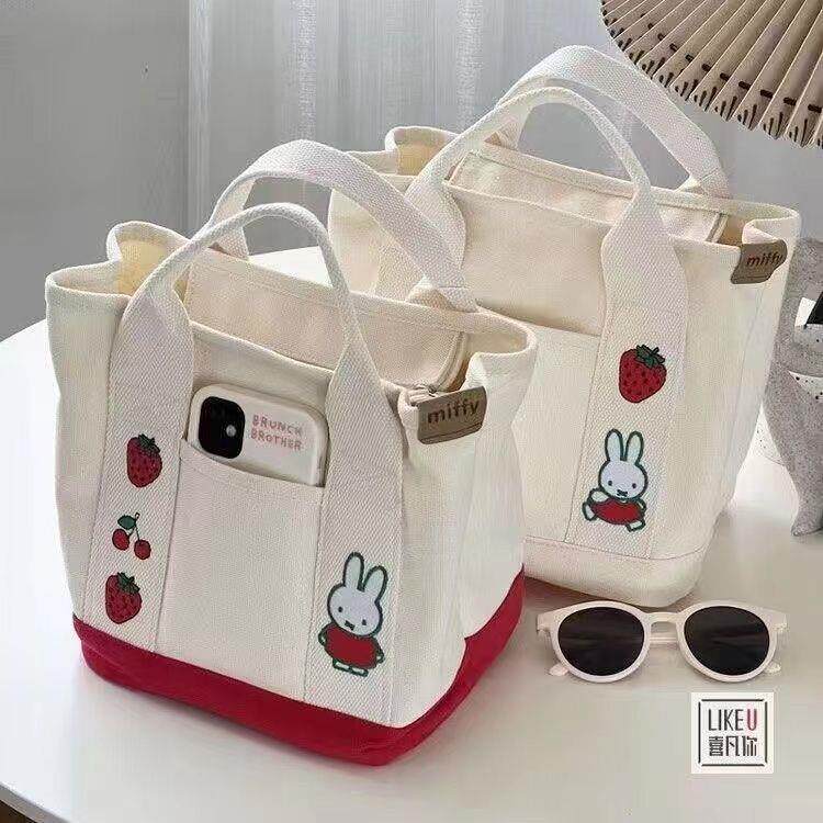 High-End Rabbit Embroidered Handbag, Tote Bag for Going Out, Lunch Box Bag, Premium Canvas Bag, Lunch Box, Mommy's Outing Bag