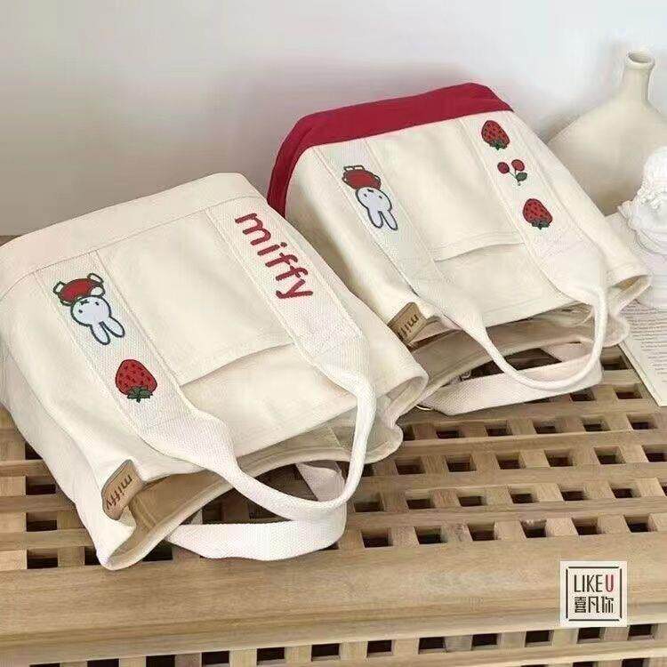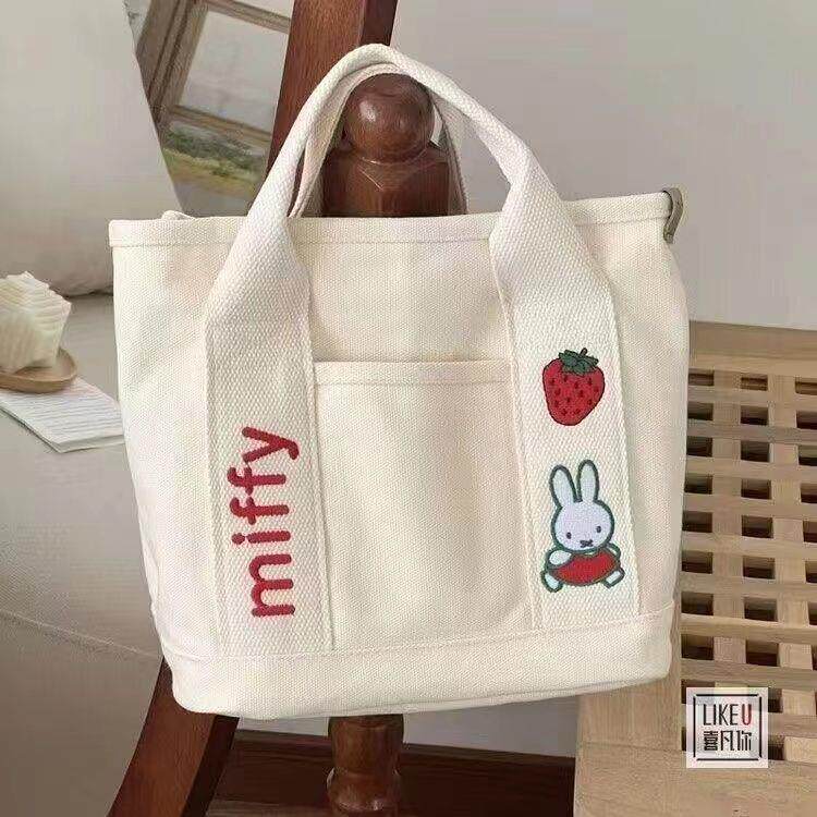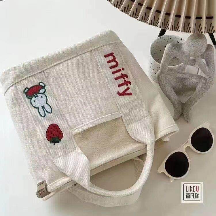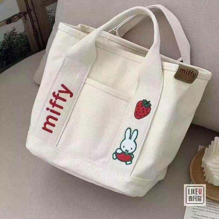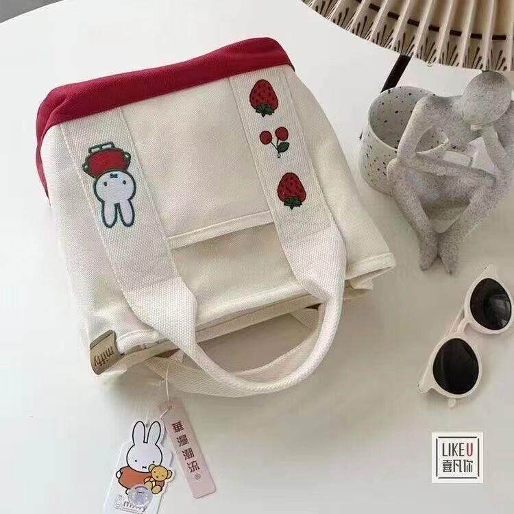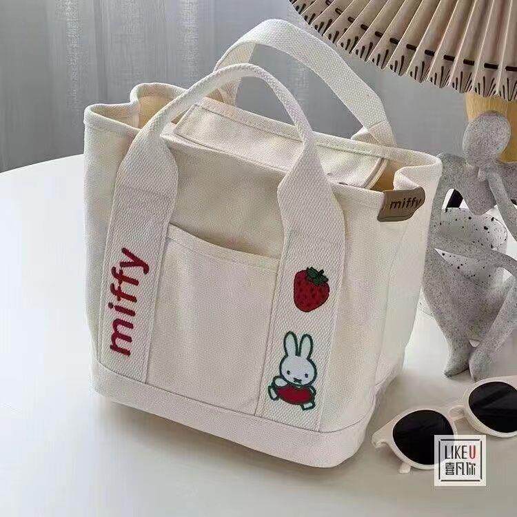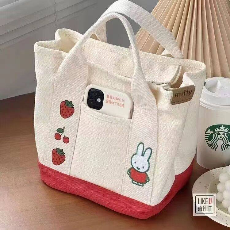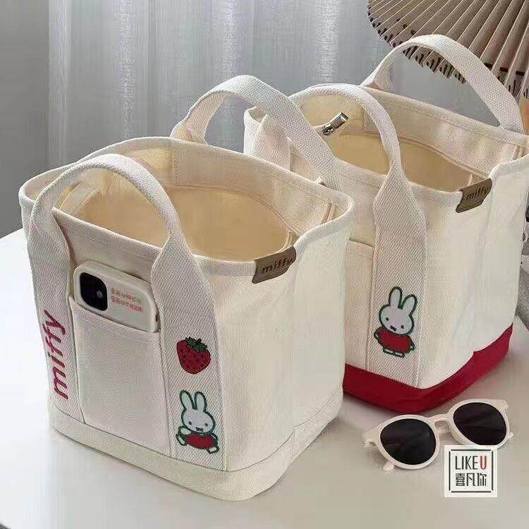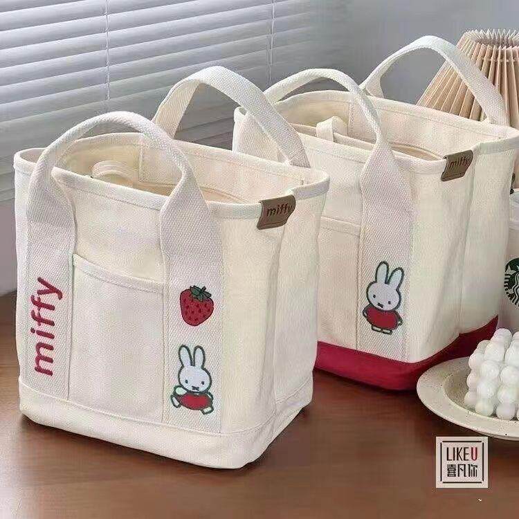 High-End Rabbit Embroidered Handbag, Tote Bag for Going Out, Lunch Box Bag, Premium Canvas Bag, Lunch Box, Mommy's Outing Bag
