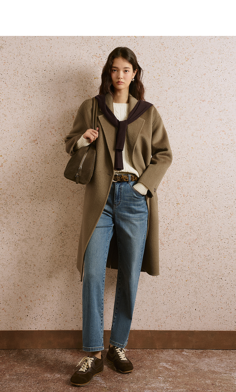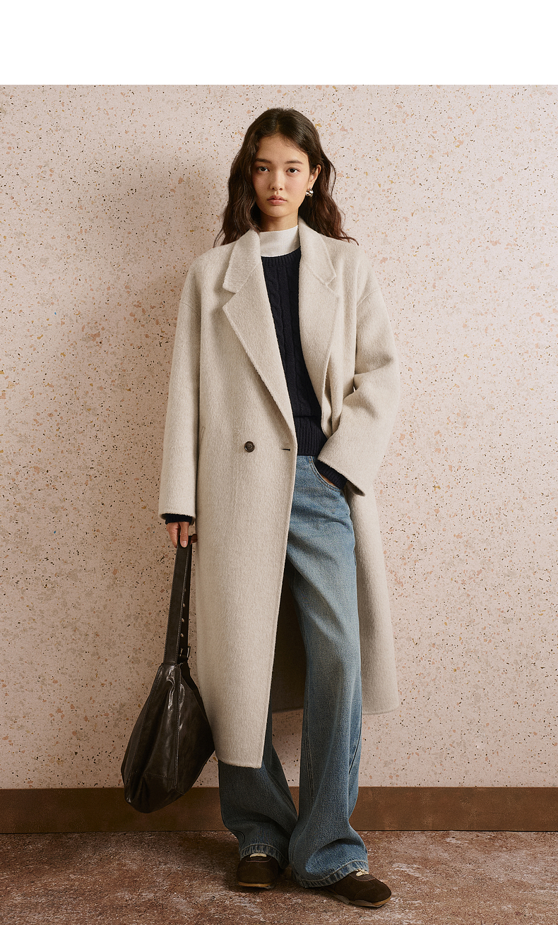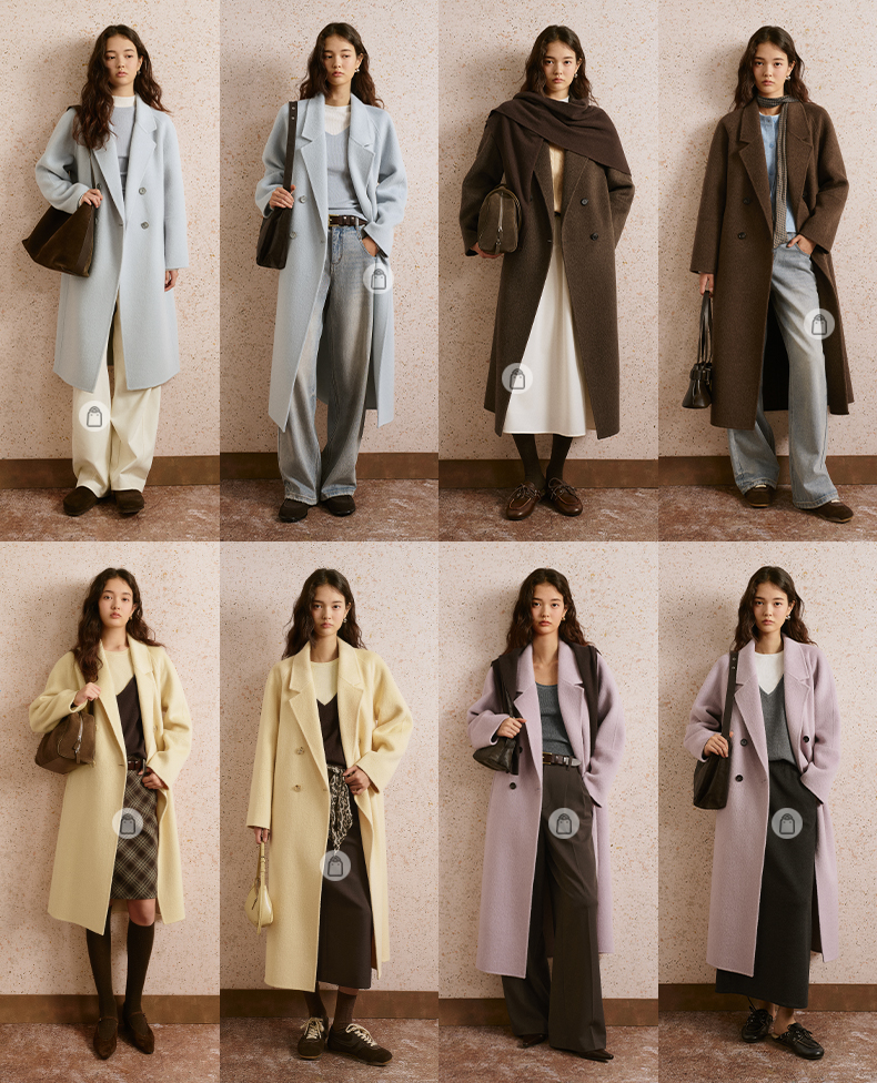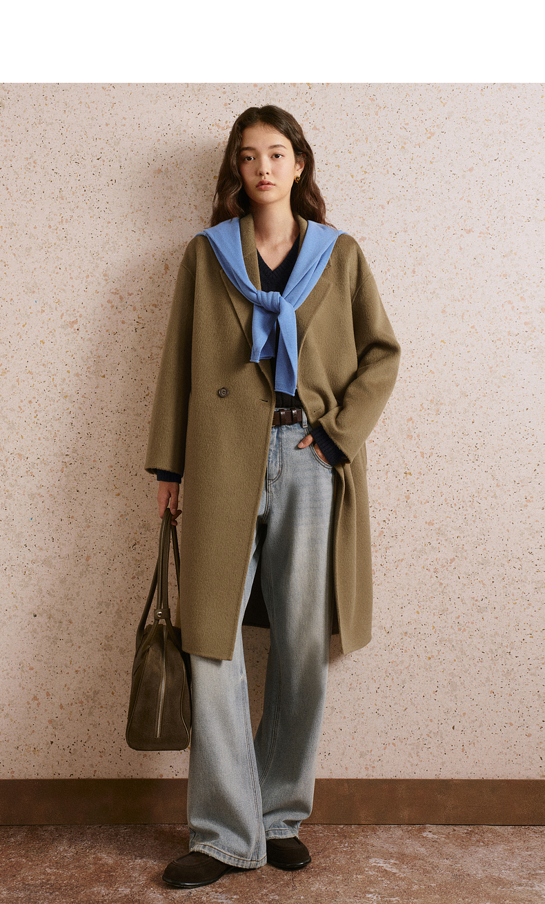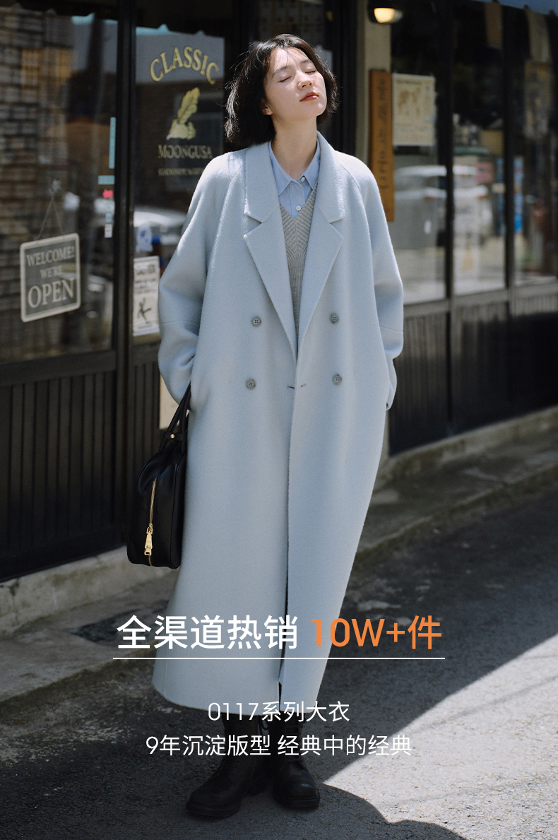 【Hot Item 0117】Orange Desire Special Edition Blue Mid-Length Woolen Coat 2024 New Outerwear