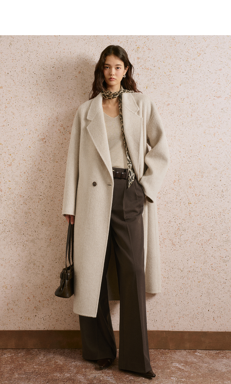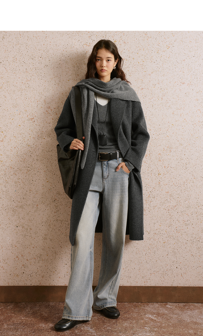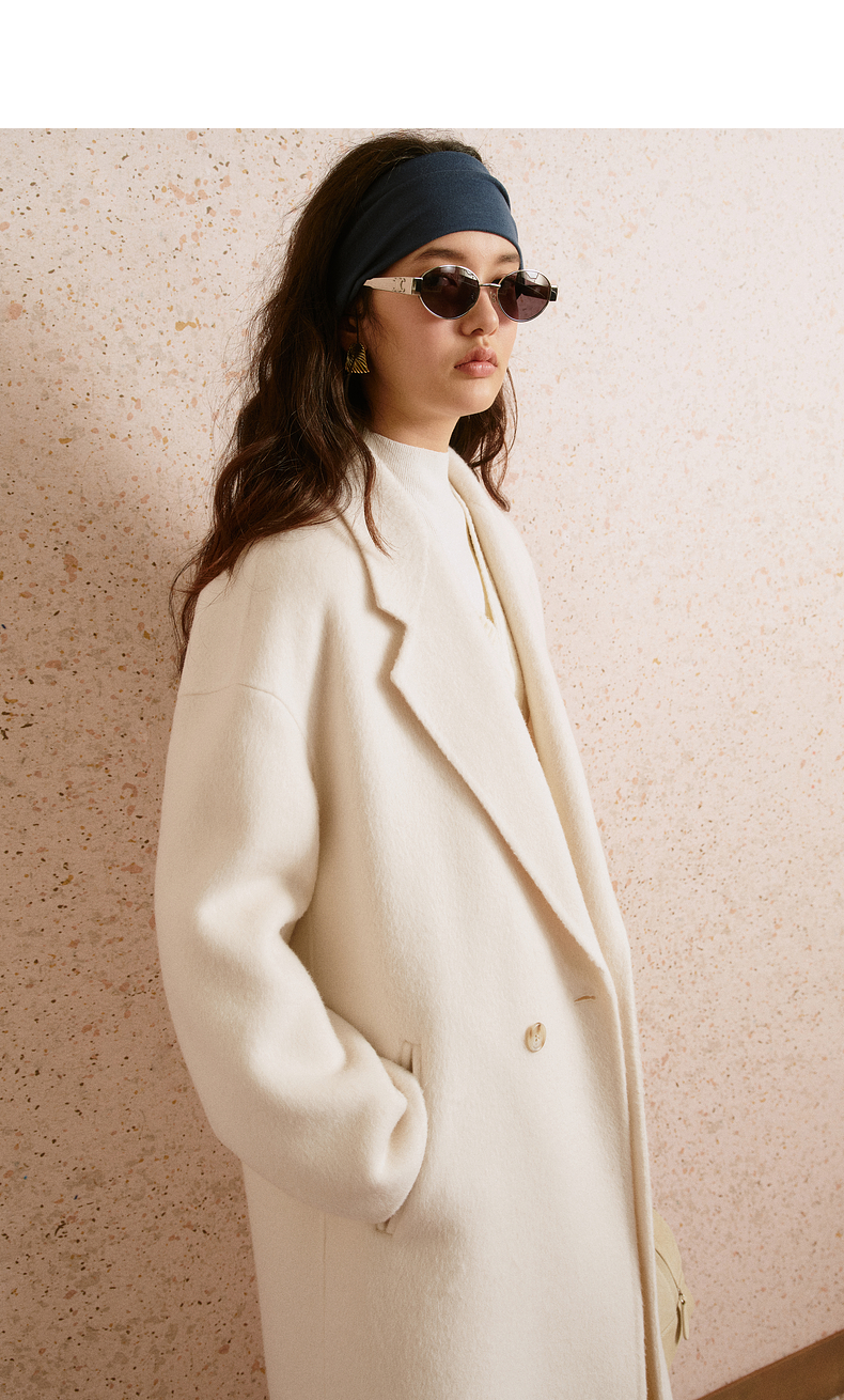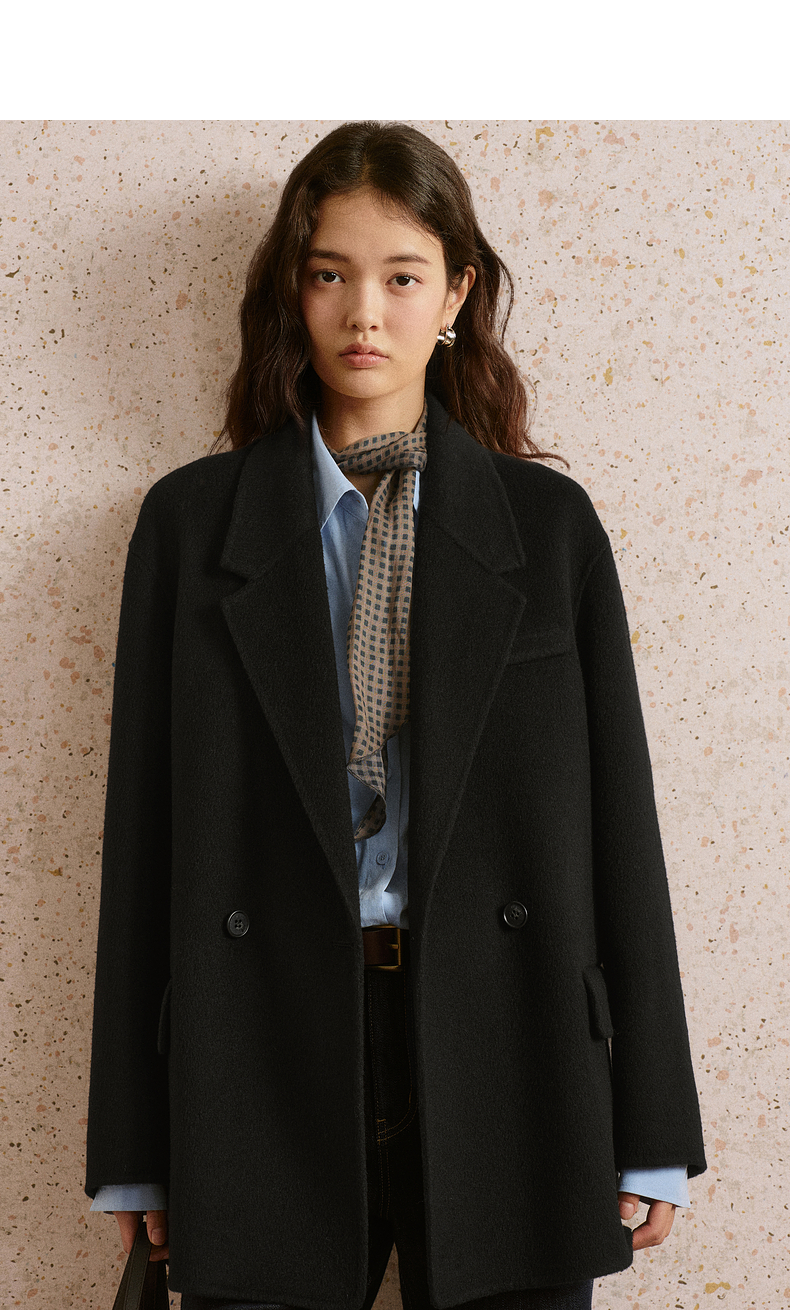 【Hot Item 0117】Orange Desire Special Edition Blue Mid-Length Woolen Coat 2024 New Outerwear