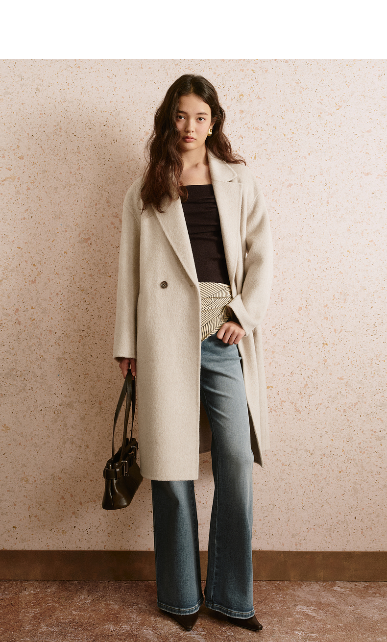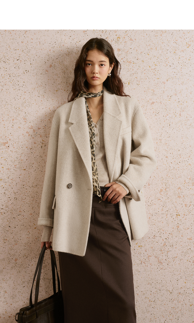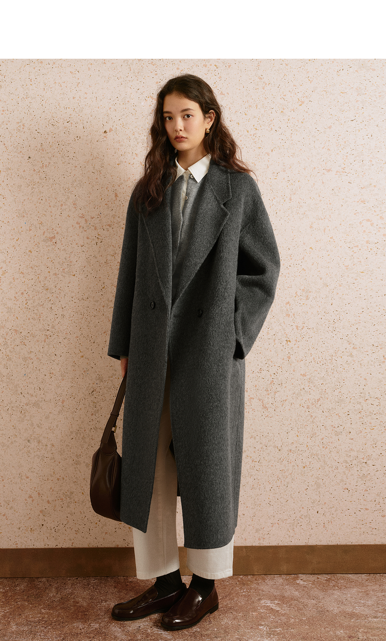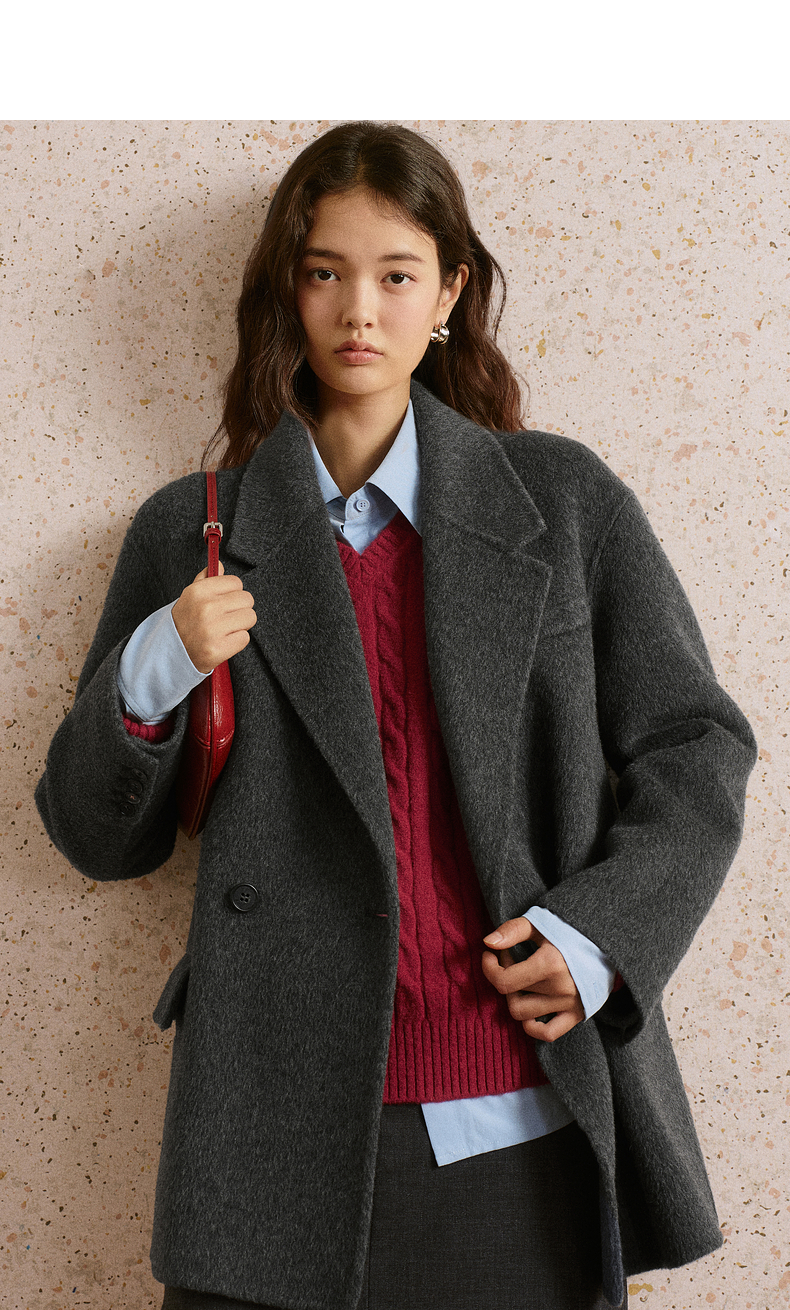 【Hot Item 0117】Orange Desire Special Edition Blue Mid-Length Woolen Coat 2024 New Outerwear