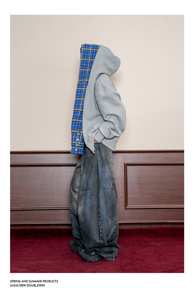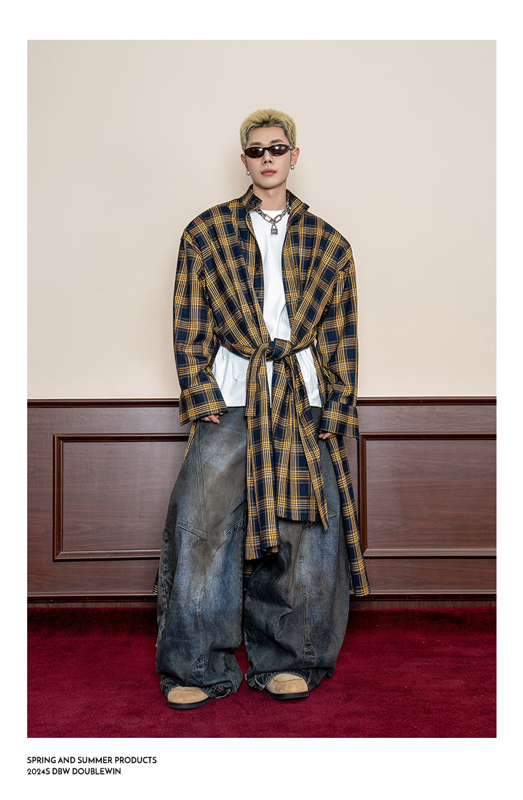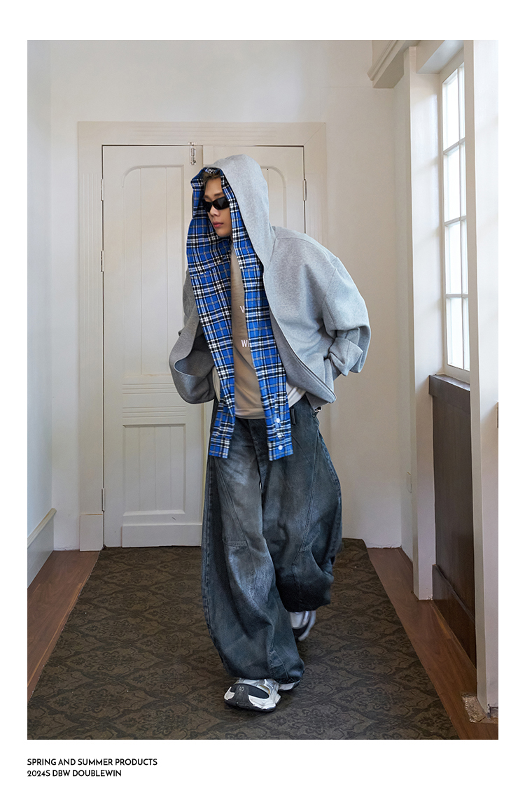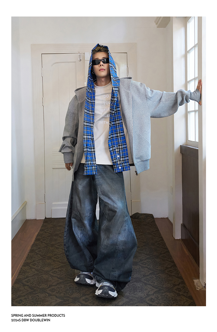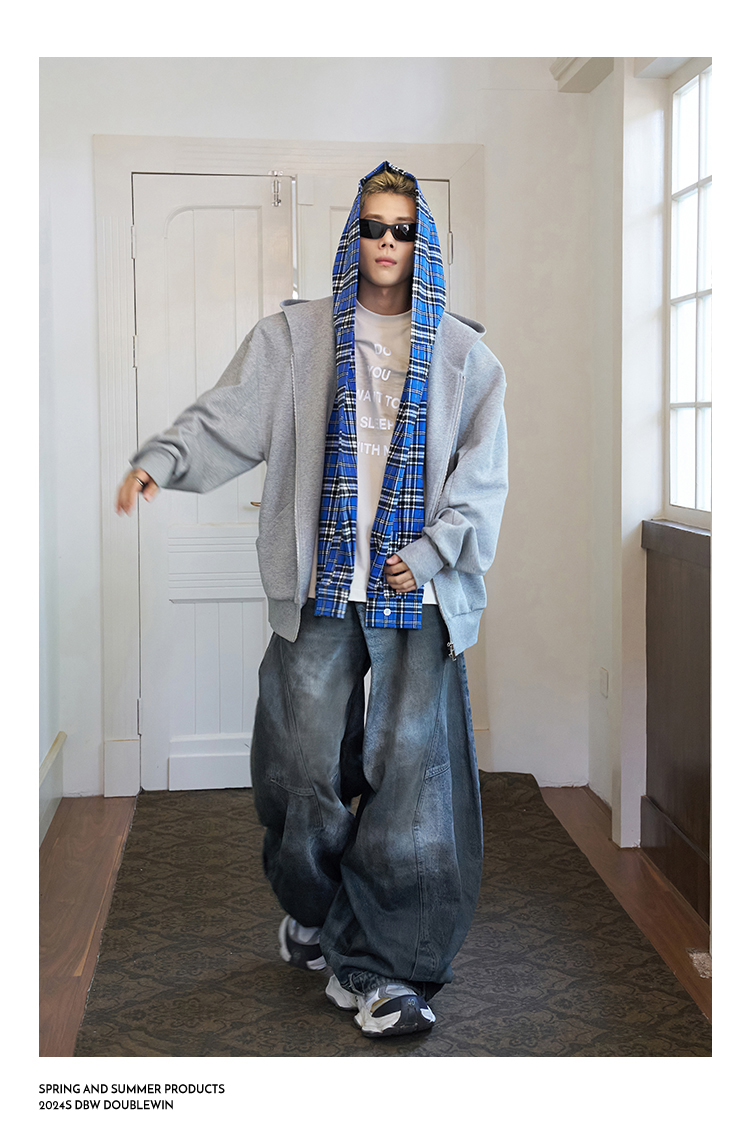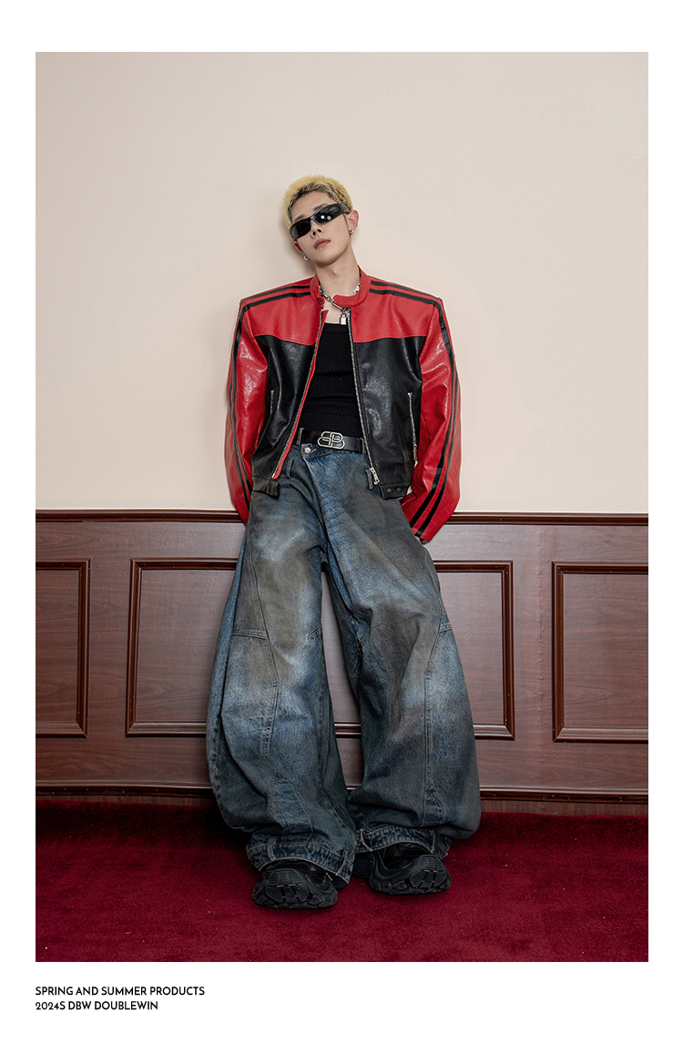 Dbw Doublewin Distressed Faded Denim Jeans for Men, Summer Street Style, Heavy Design, Reversible Waistband, Wide-Leg Pants