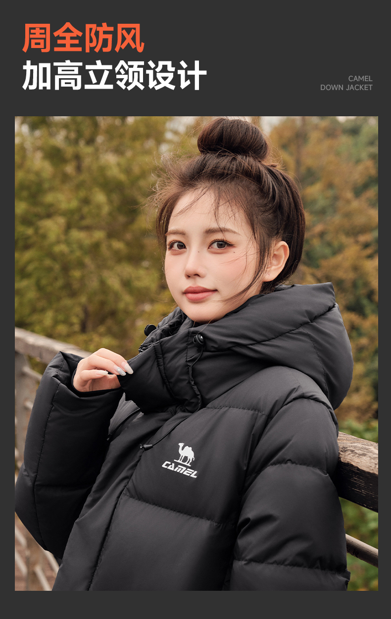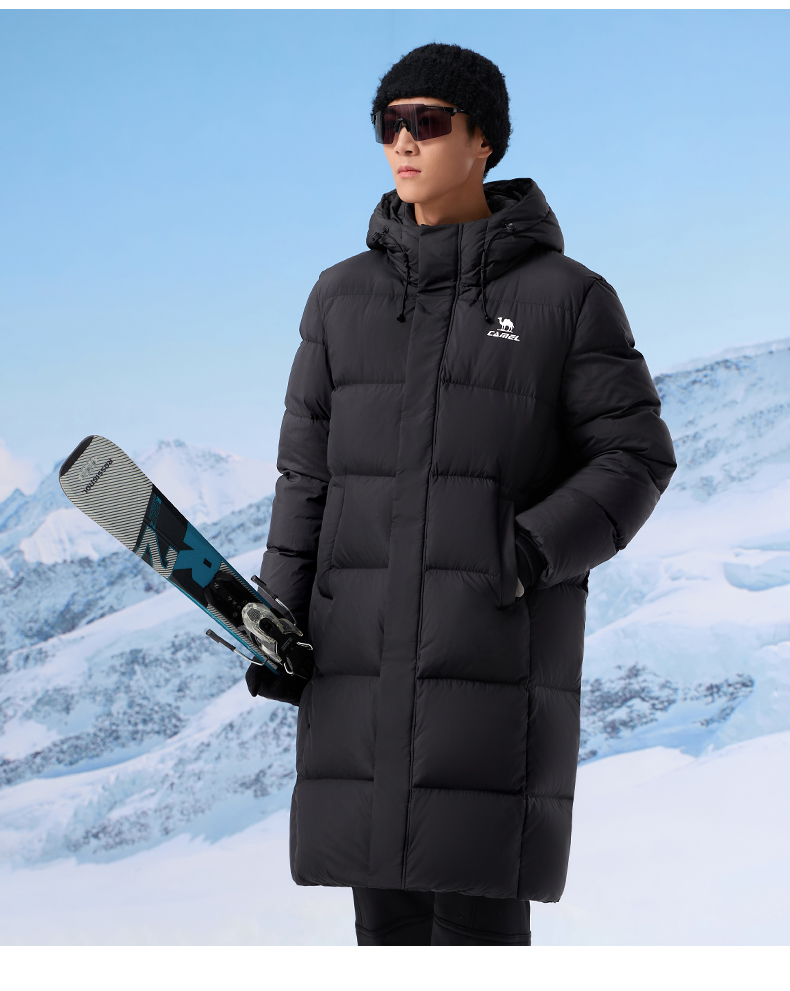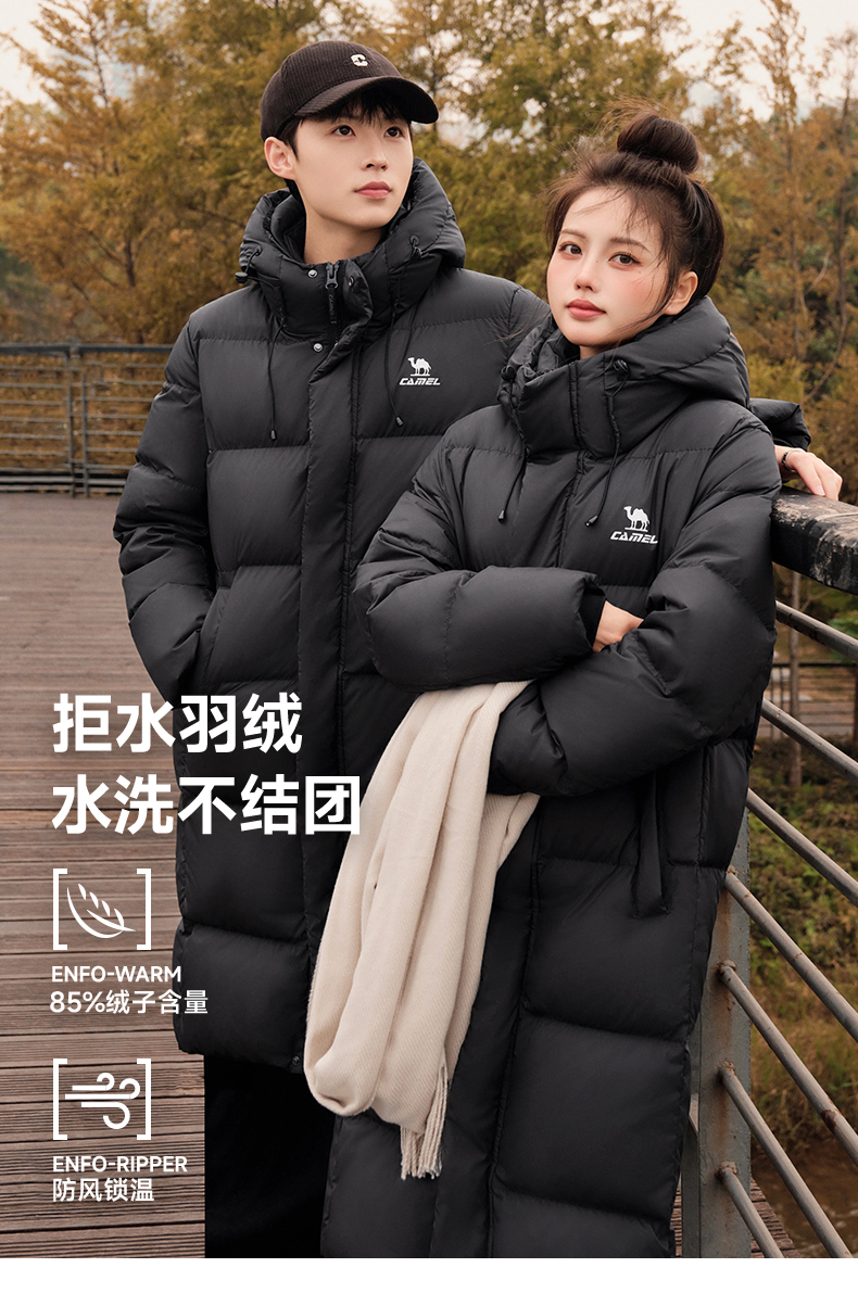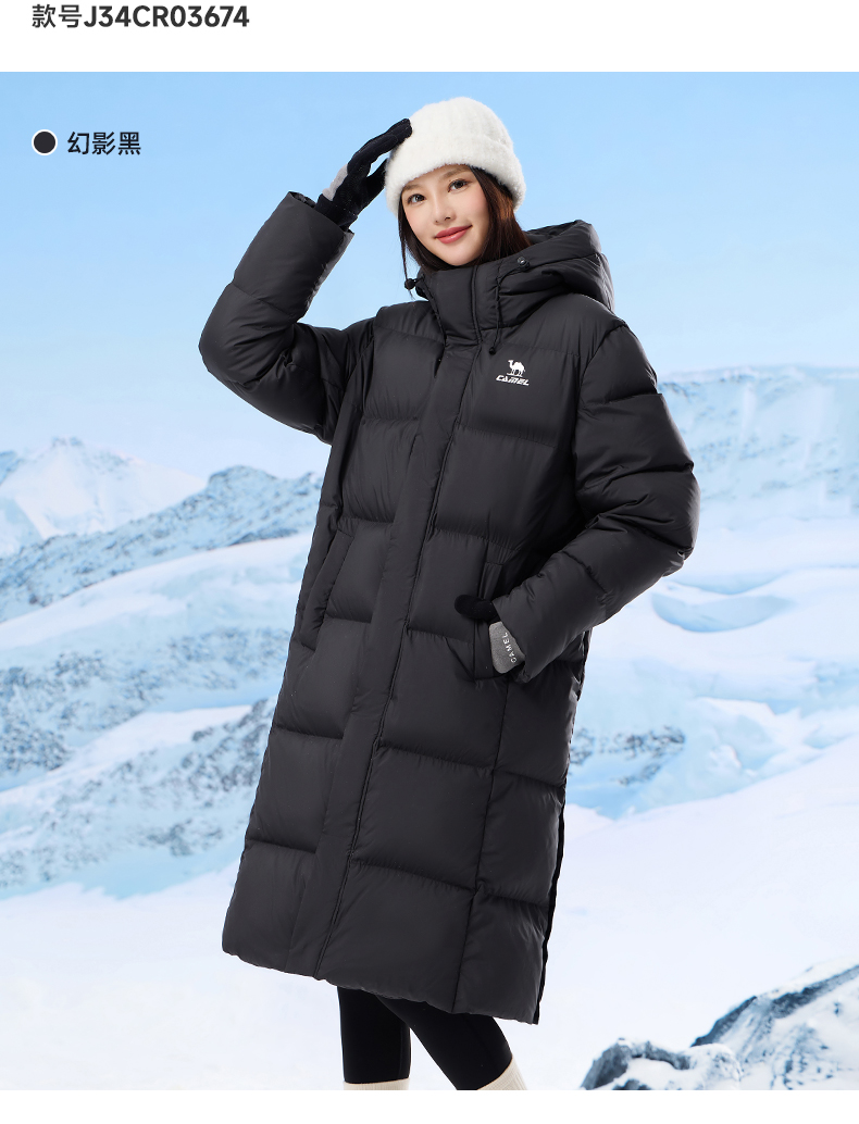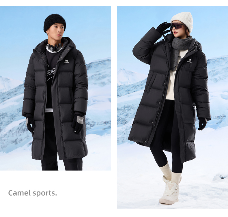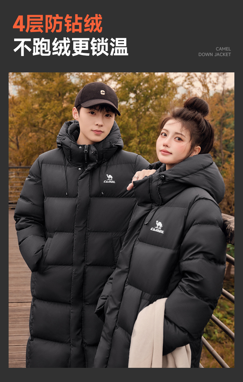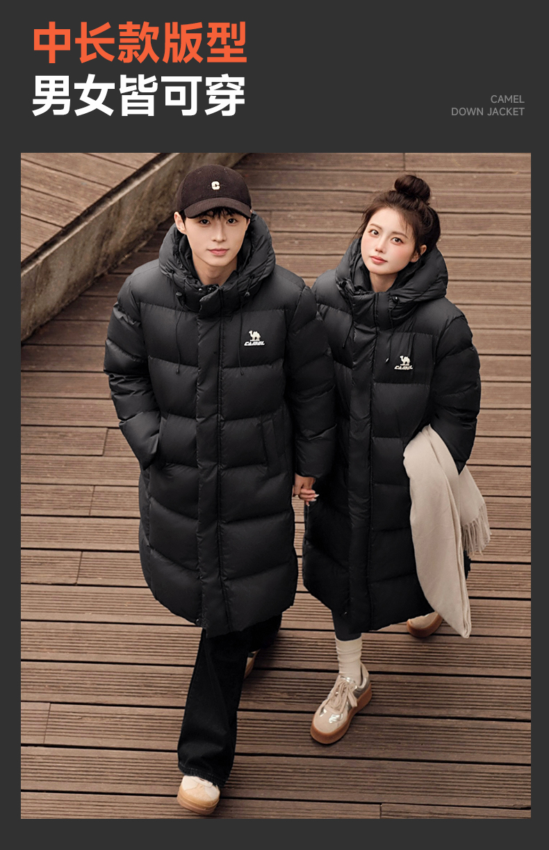 Camel Zhongxi Sports Mid-Length down Jacket for Women, Winter Thickened Warm Water-Repellent down Jacket, Windproof Coat for Men