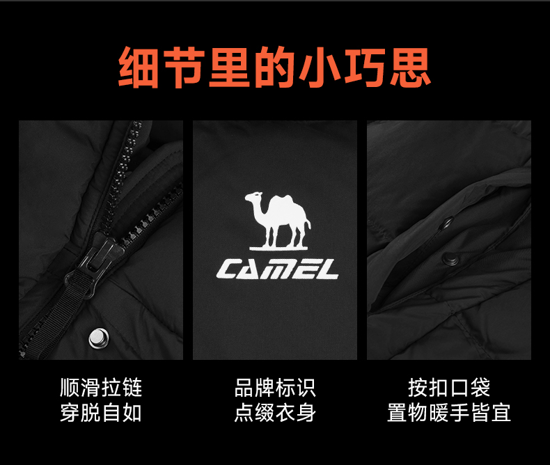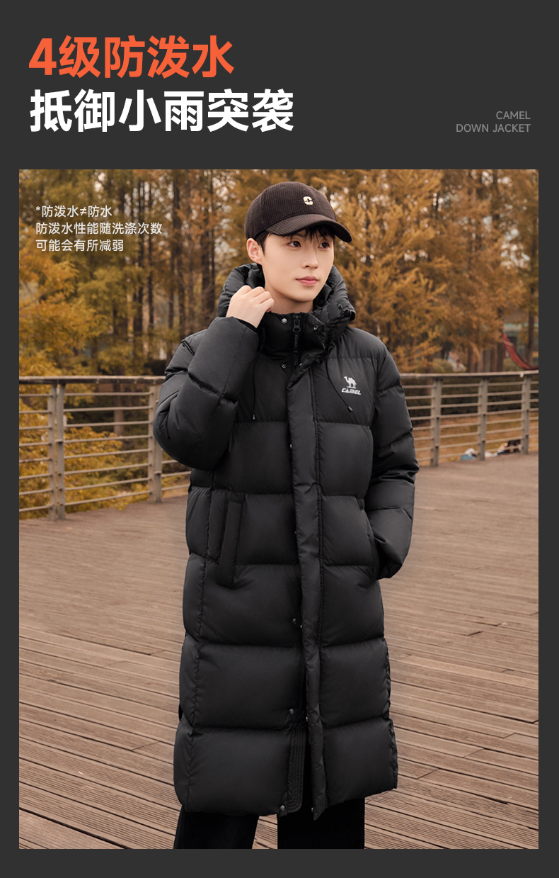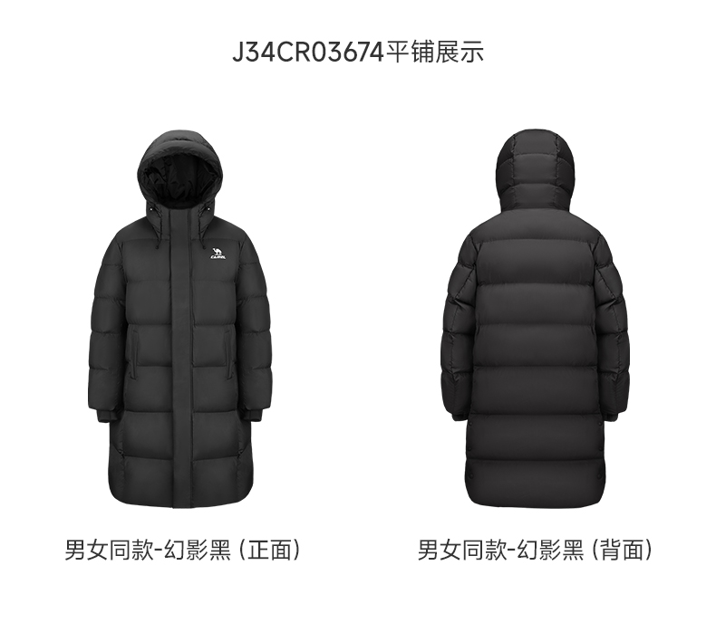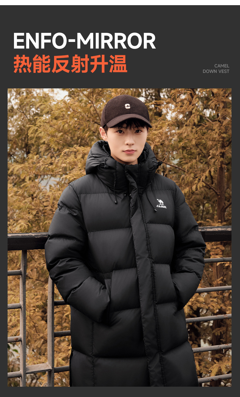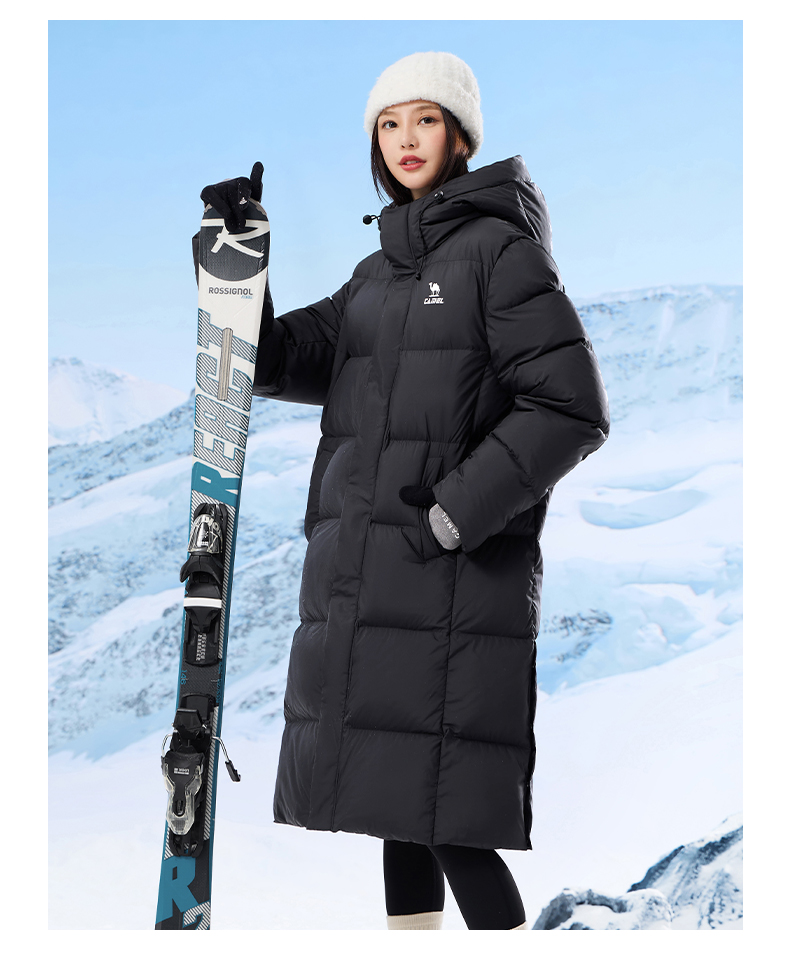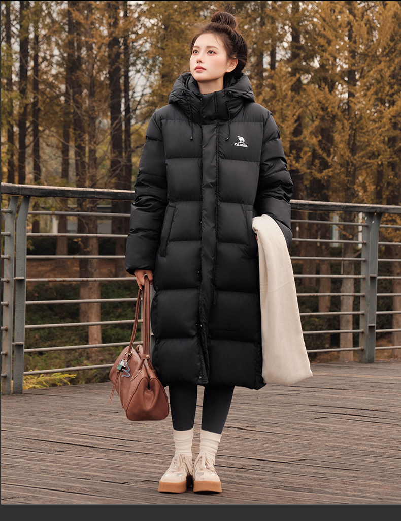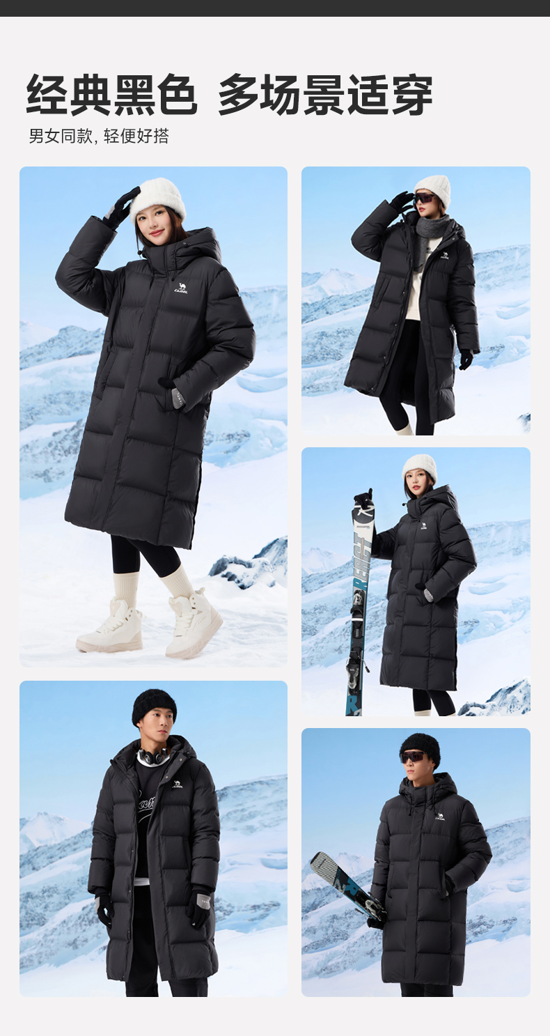 Camel Zhongxi Sports Mid-Length down Jacket for Women, Winter Thickened Warm Water-Repellent down Jacket, Windproof Coat for Men