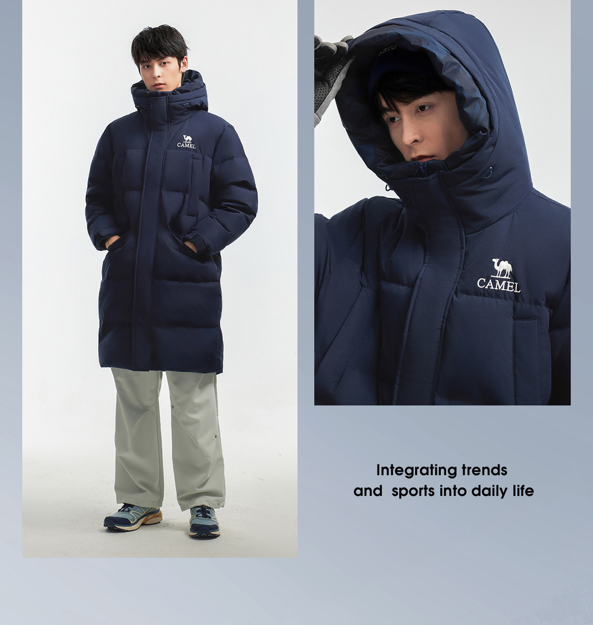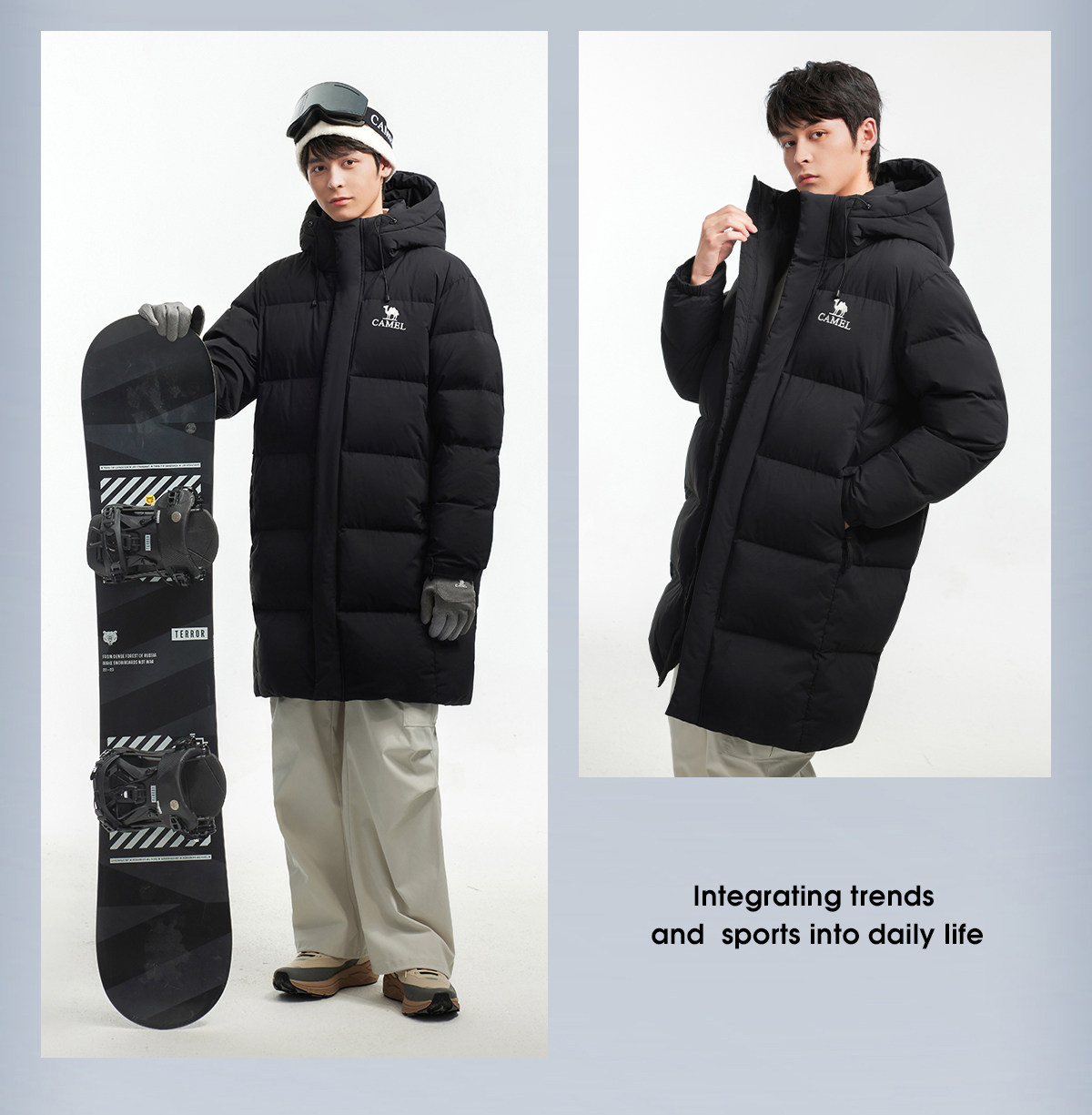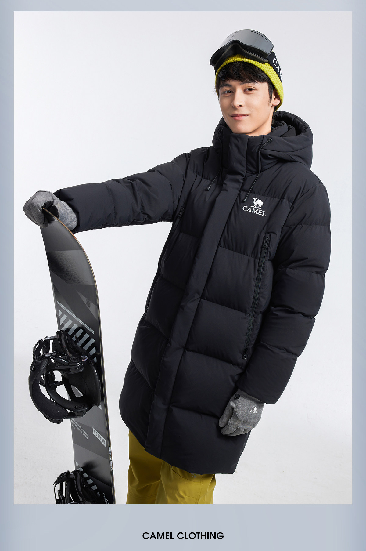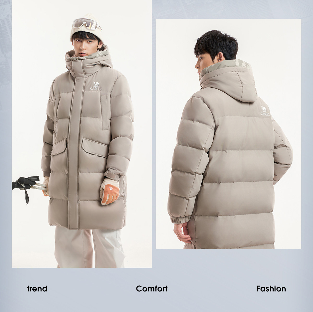 Camel Brand Mid-Length Sports down Jacket for Women, Winter Thickened Warm Water-Repellent down Jacket, Windproof Coat for Men