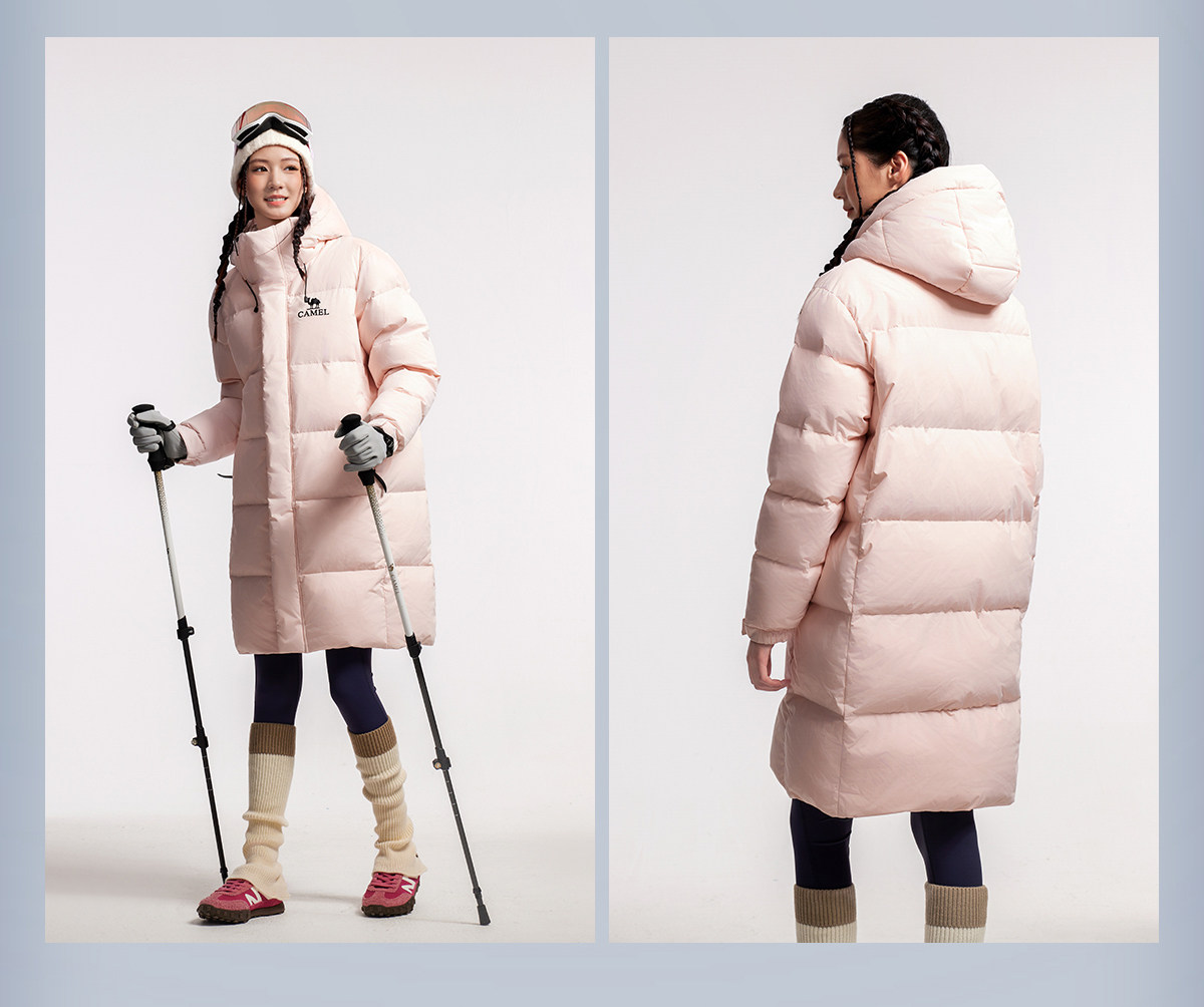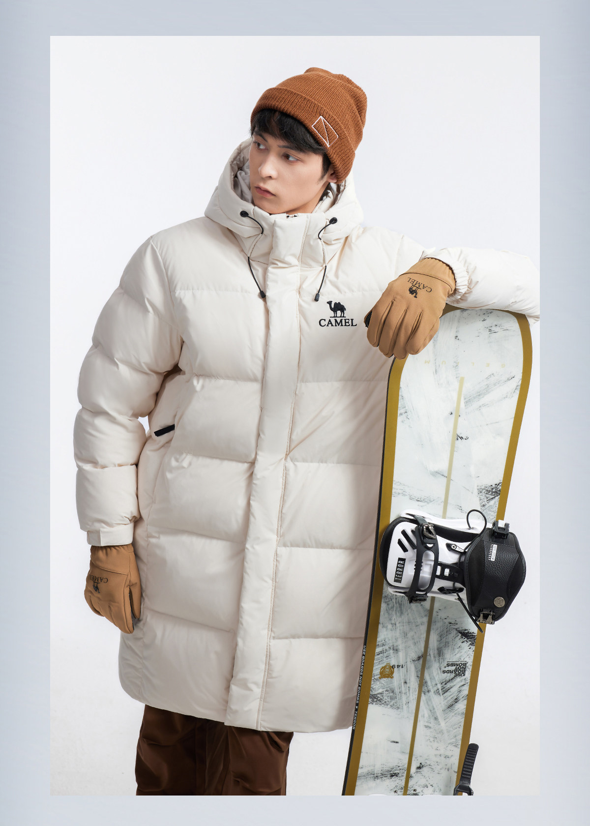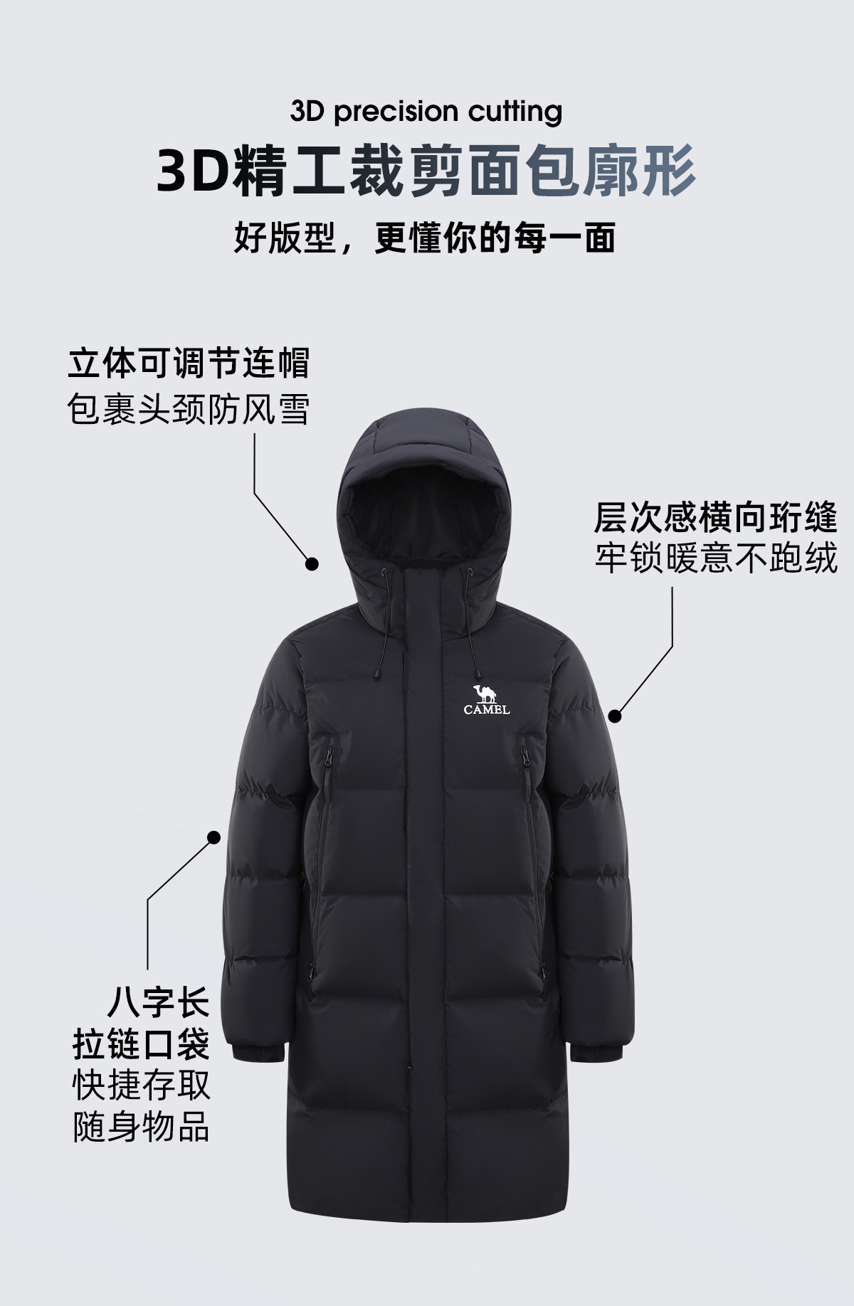 Camel Brand Mid-Length Sports down Jacket for Women, Winter Thickened Warm Water-Repellent down Jacket, Windproof Coat for Men