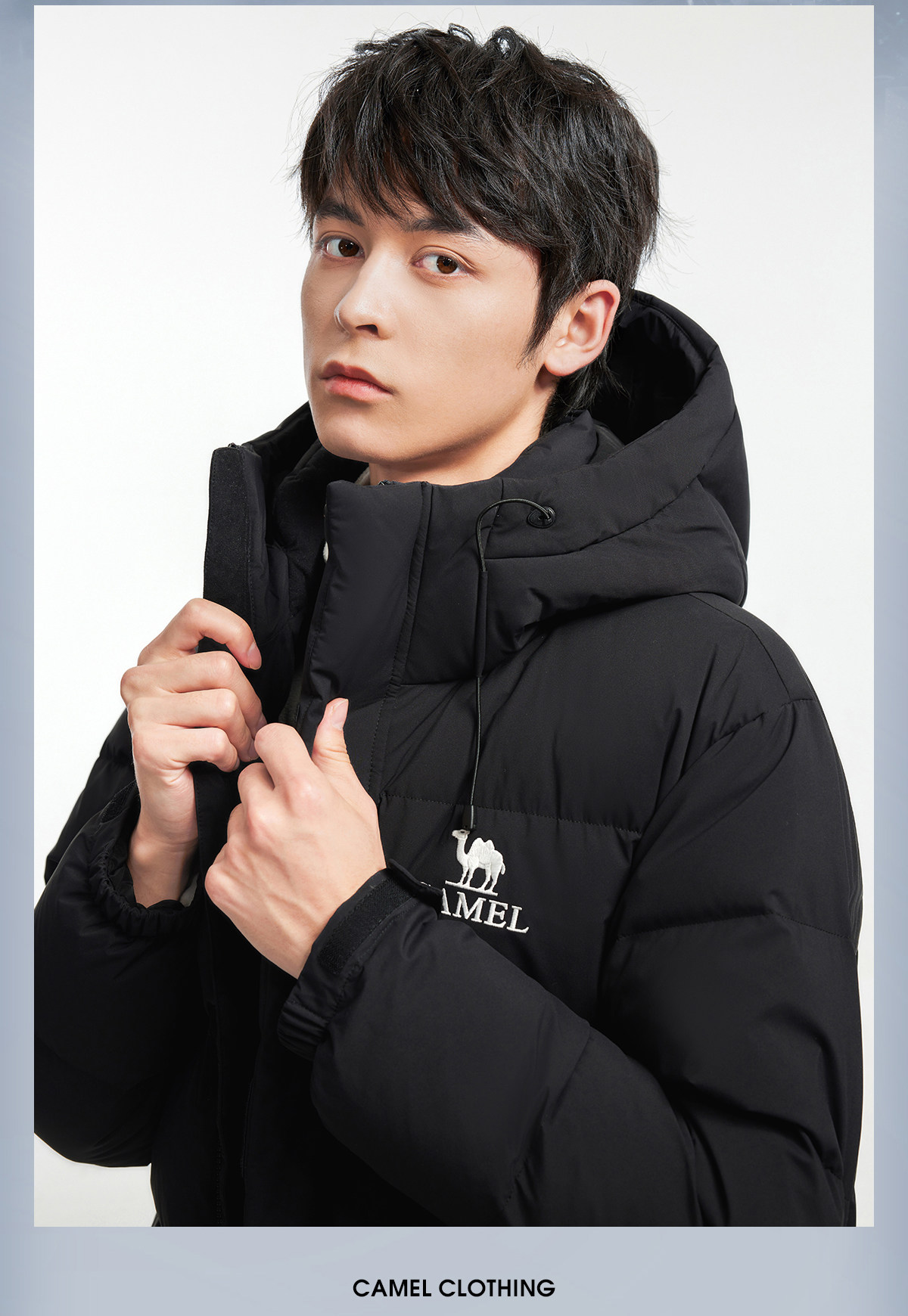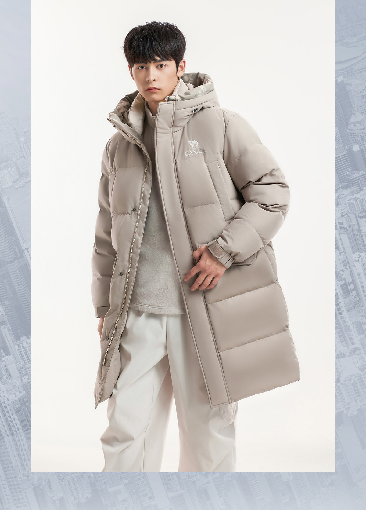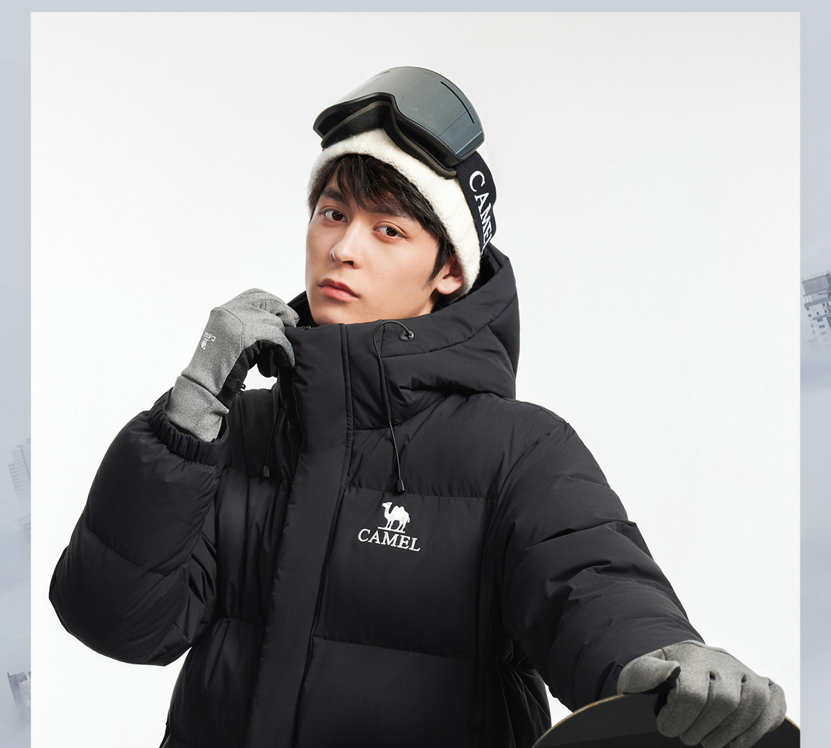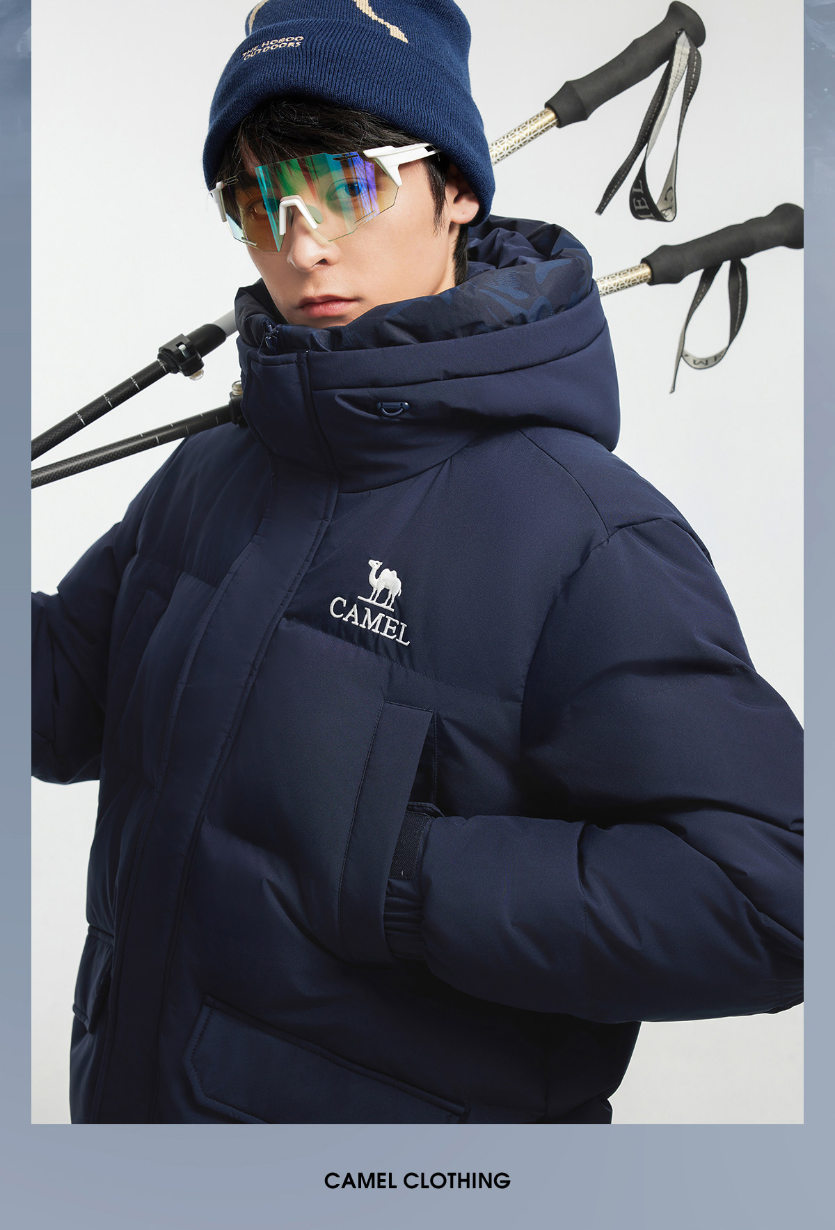 Camel Brand Mid-Length Sports down Jacket for Women, Winter Thickened Warm Water-Repellent down Jacket, Windproof Coat for Men