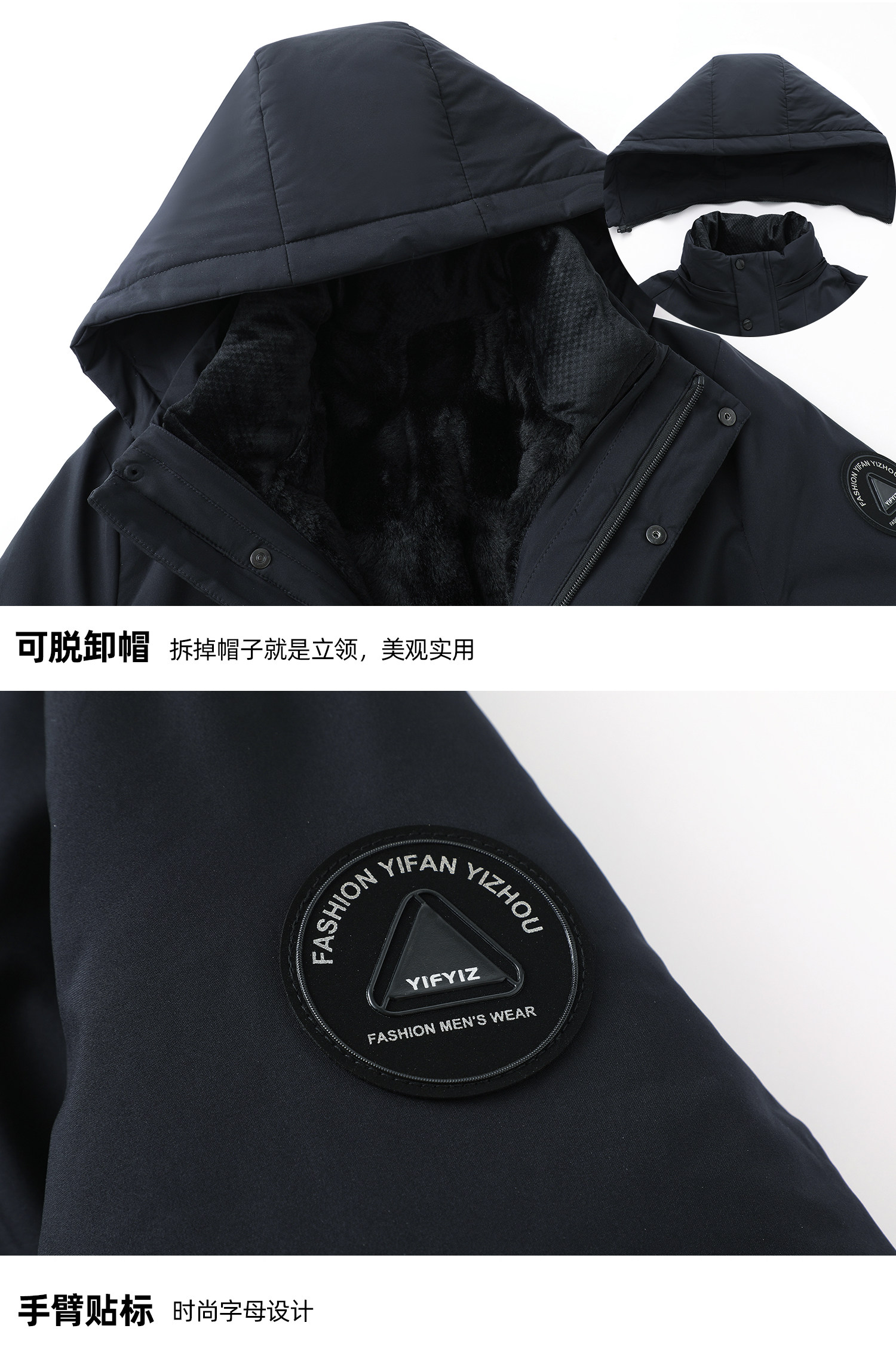 Yalu Men's Winter Jacket for Dad, Cotton Coat for Middle-Aged and Elderly, Three-In-One Fleece-Lined and Thickened Grandpa Cotton Jacket Parka