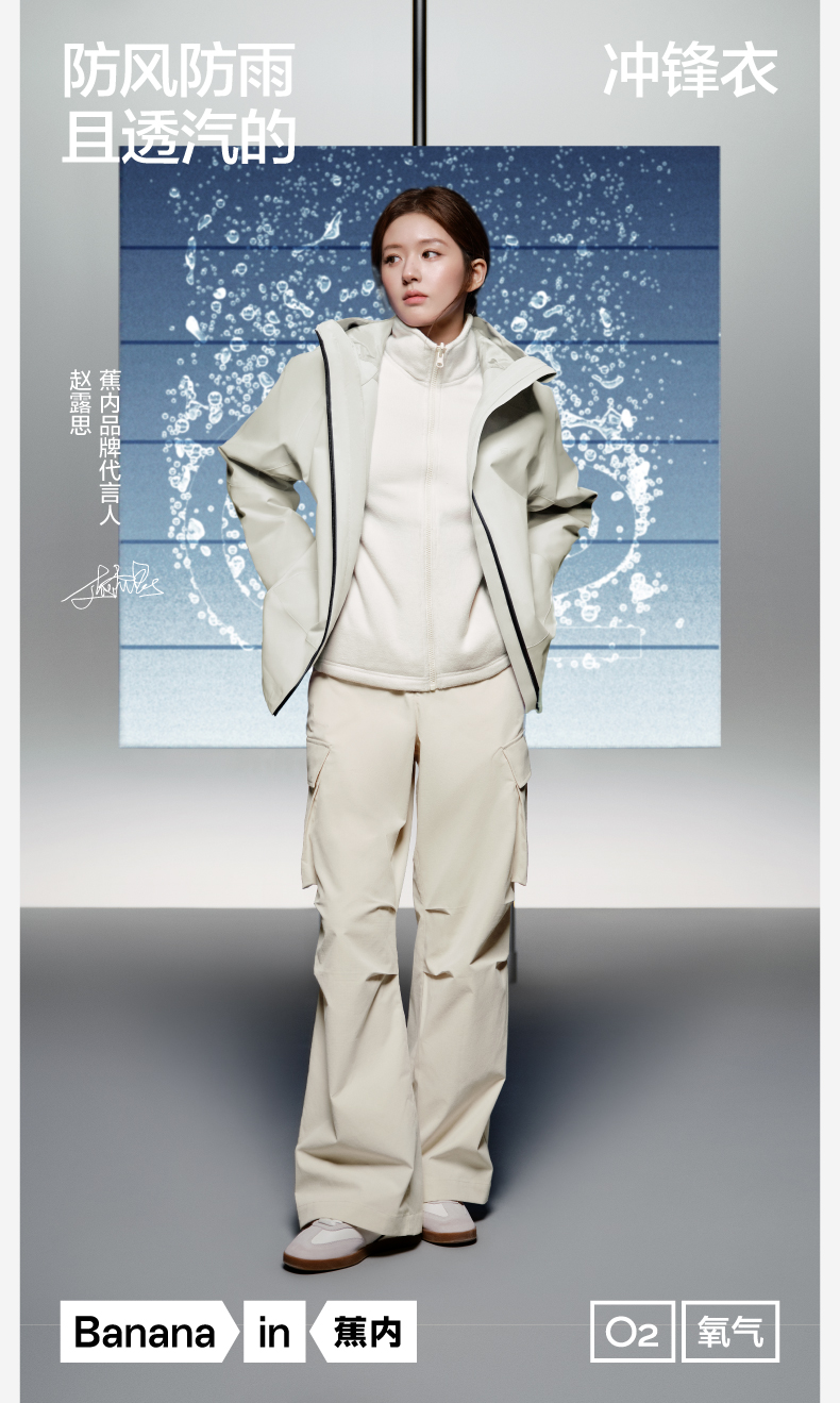 Zhao Lusi's Same Style Banana Inner Oxygen 302Proof Pro Unisex Three-In-One Windproof and Waterproof Jacket
