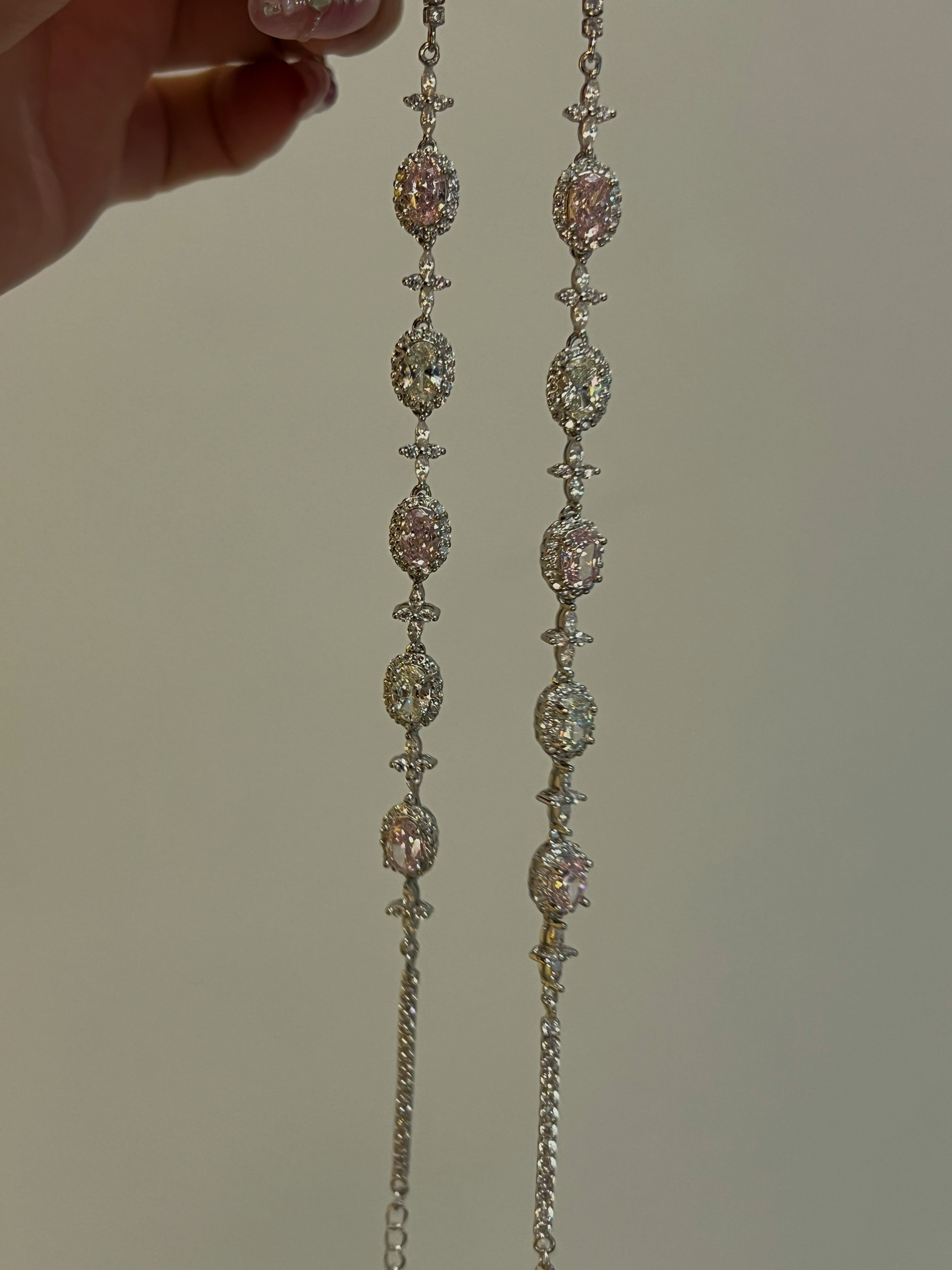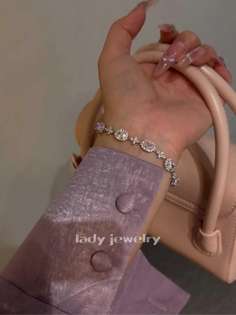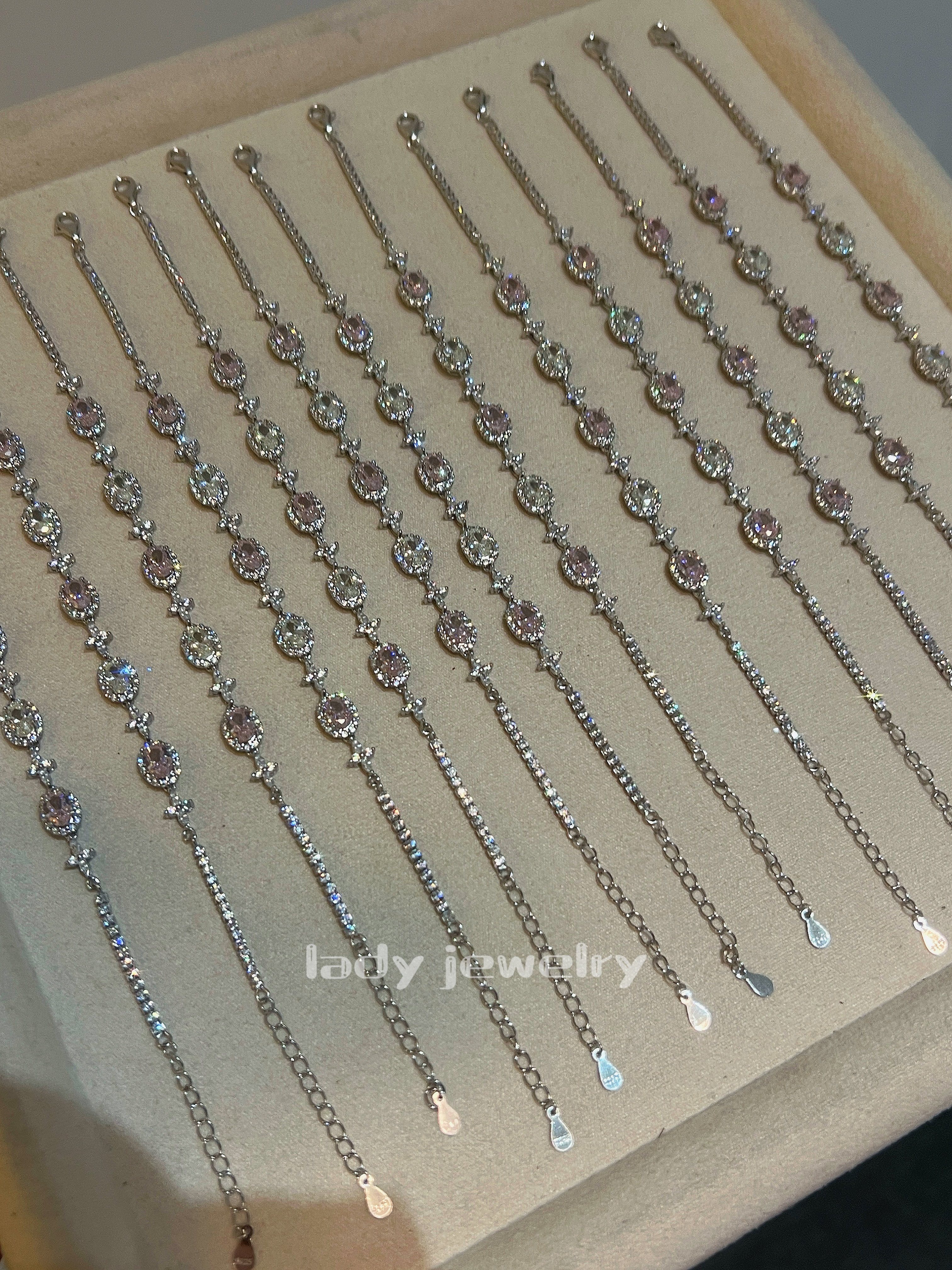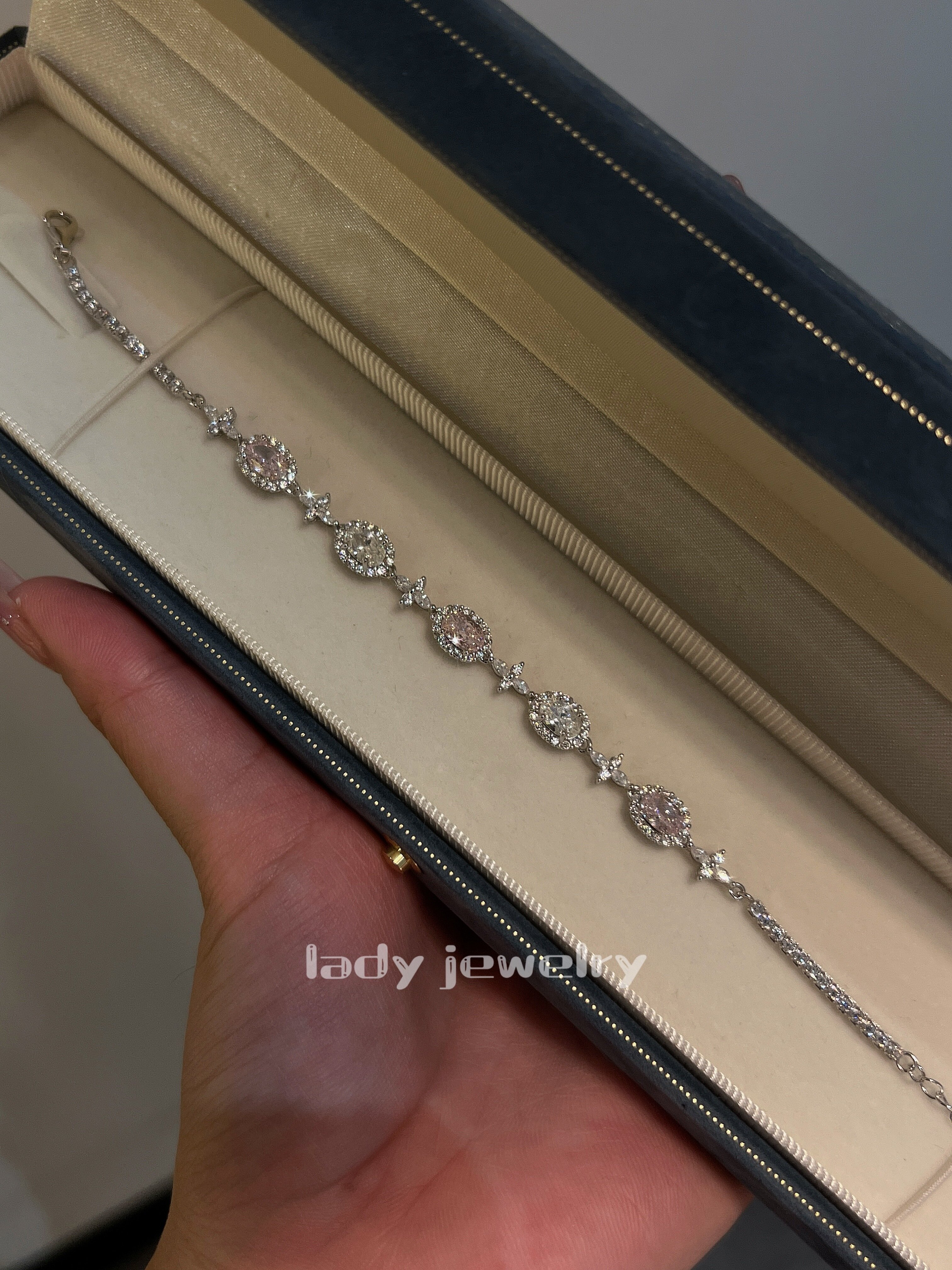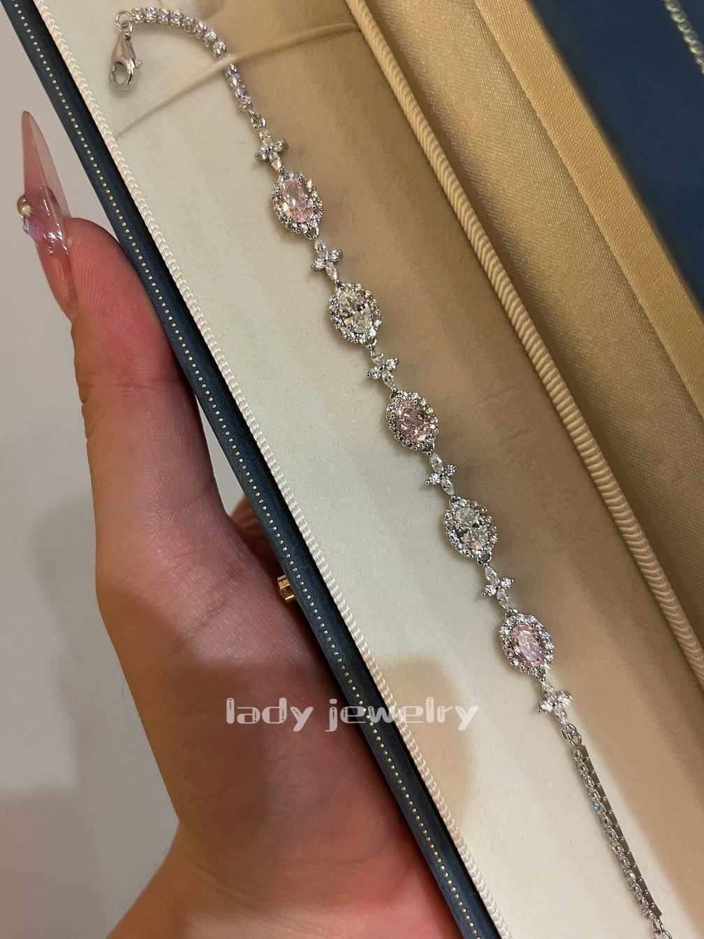 Lady's High-End Pink and White Four-Leaf Clover S925 Silver Gold-Plated Full Diamond Bracelet with 16+3cm Extension Chain