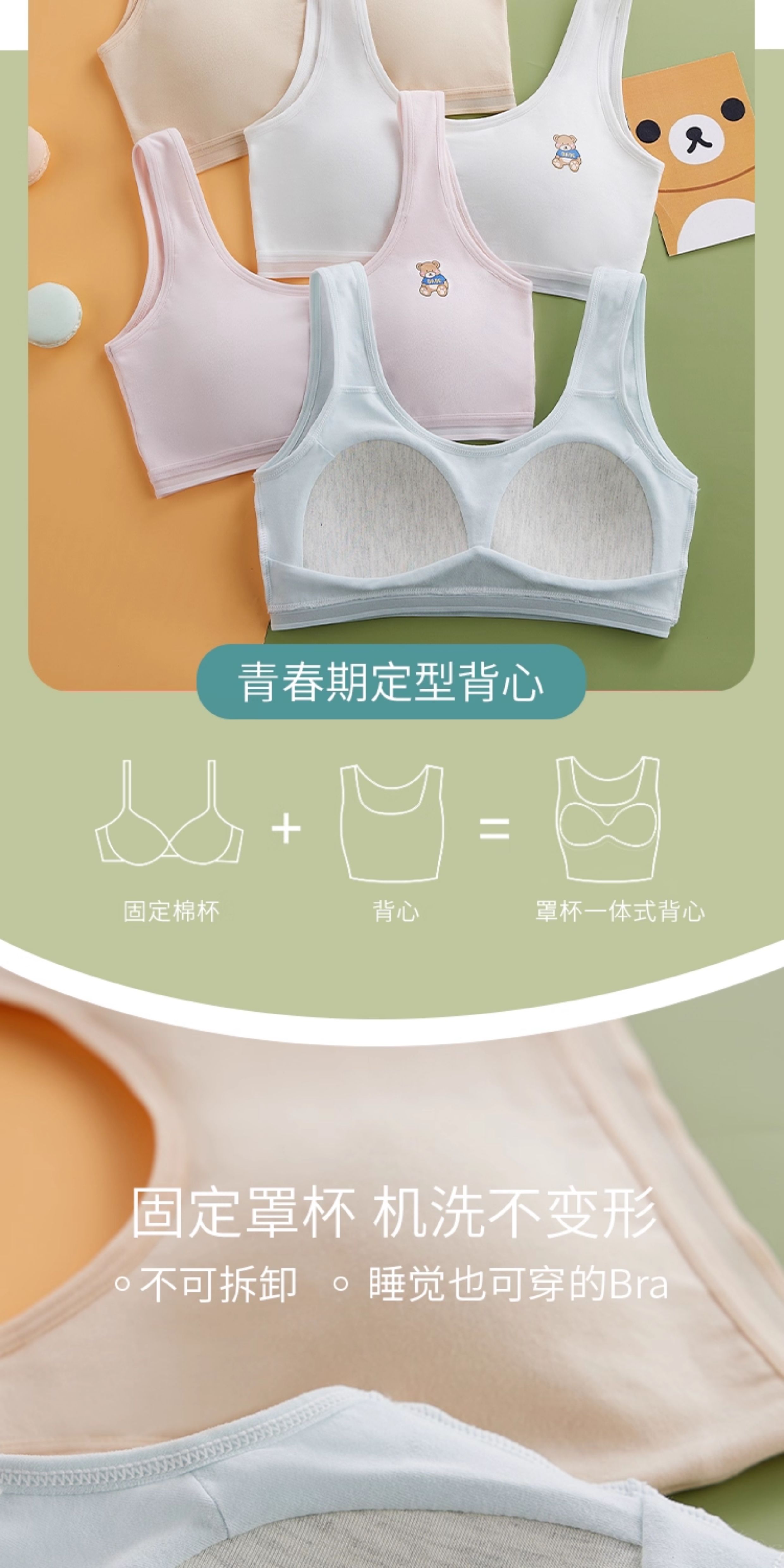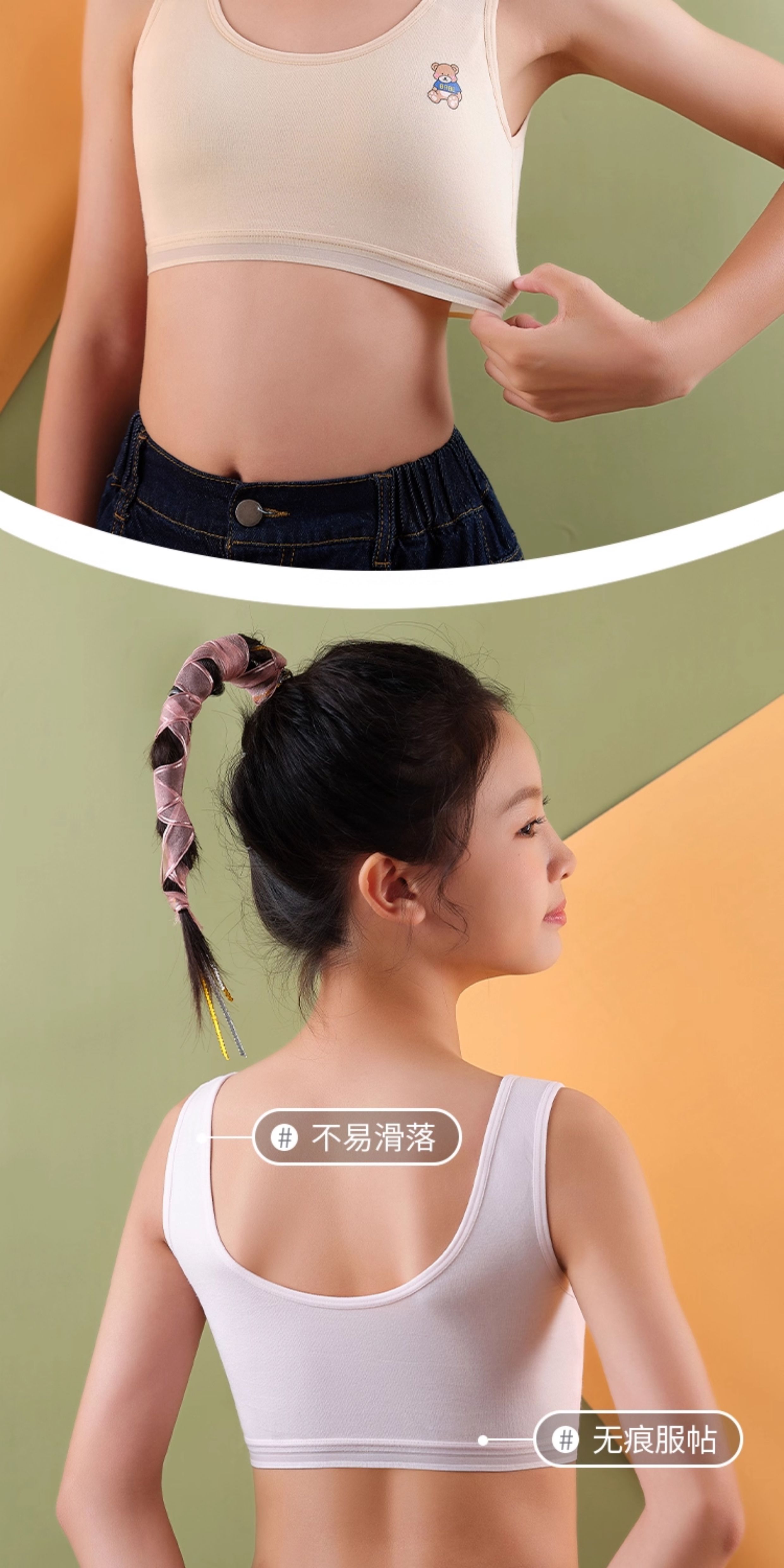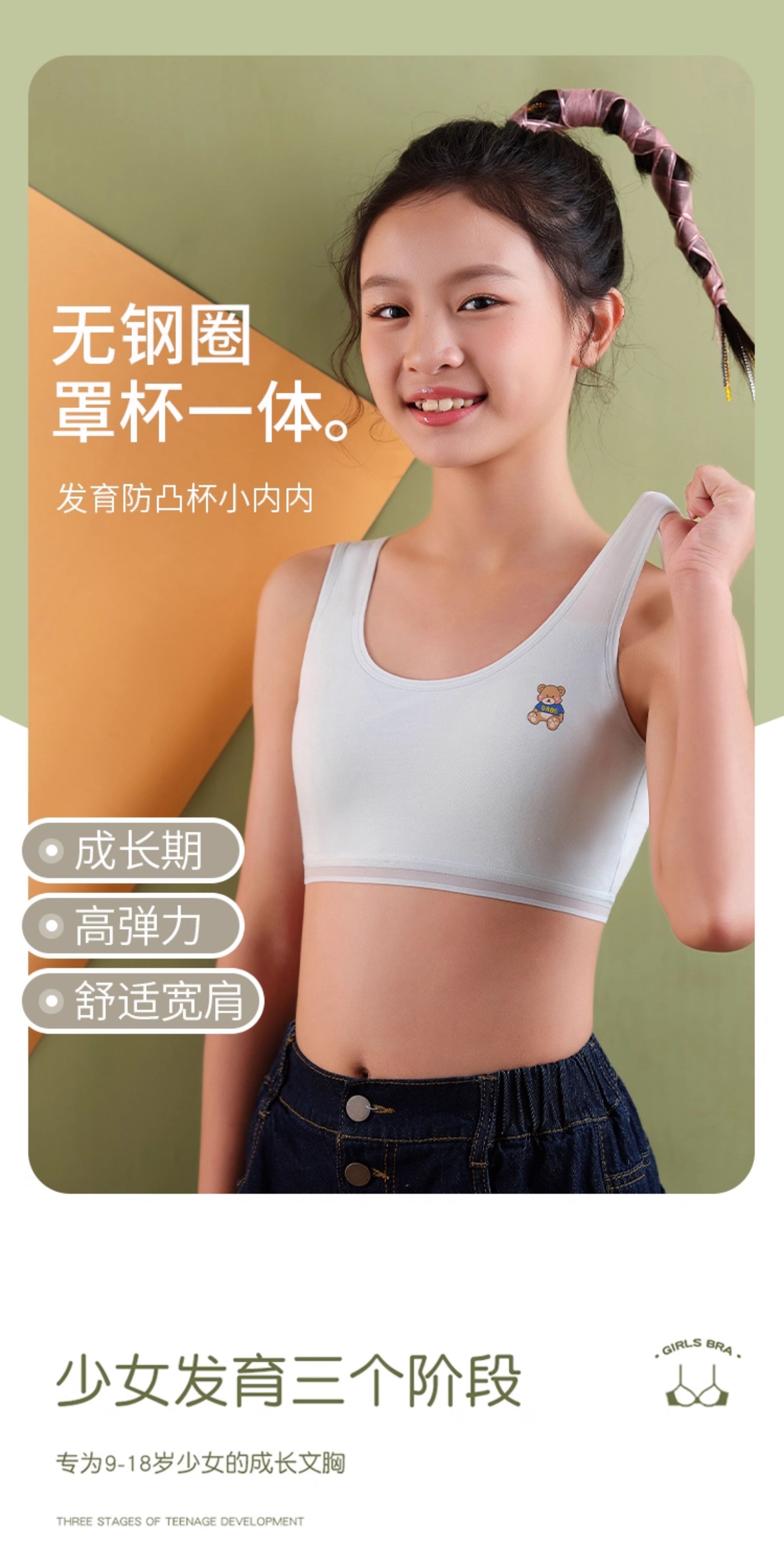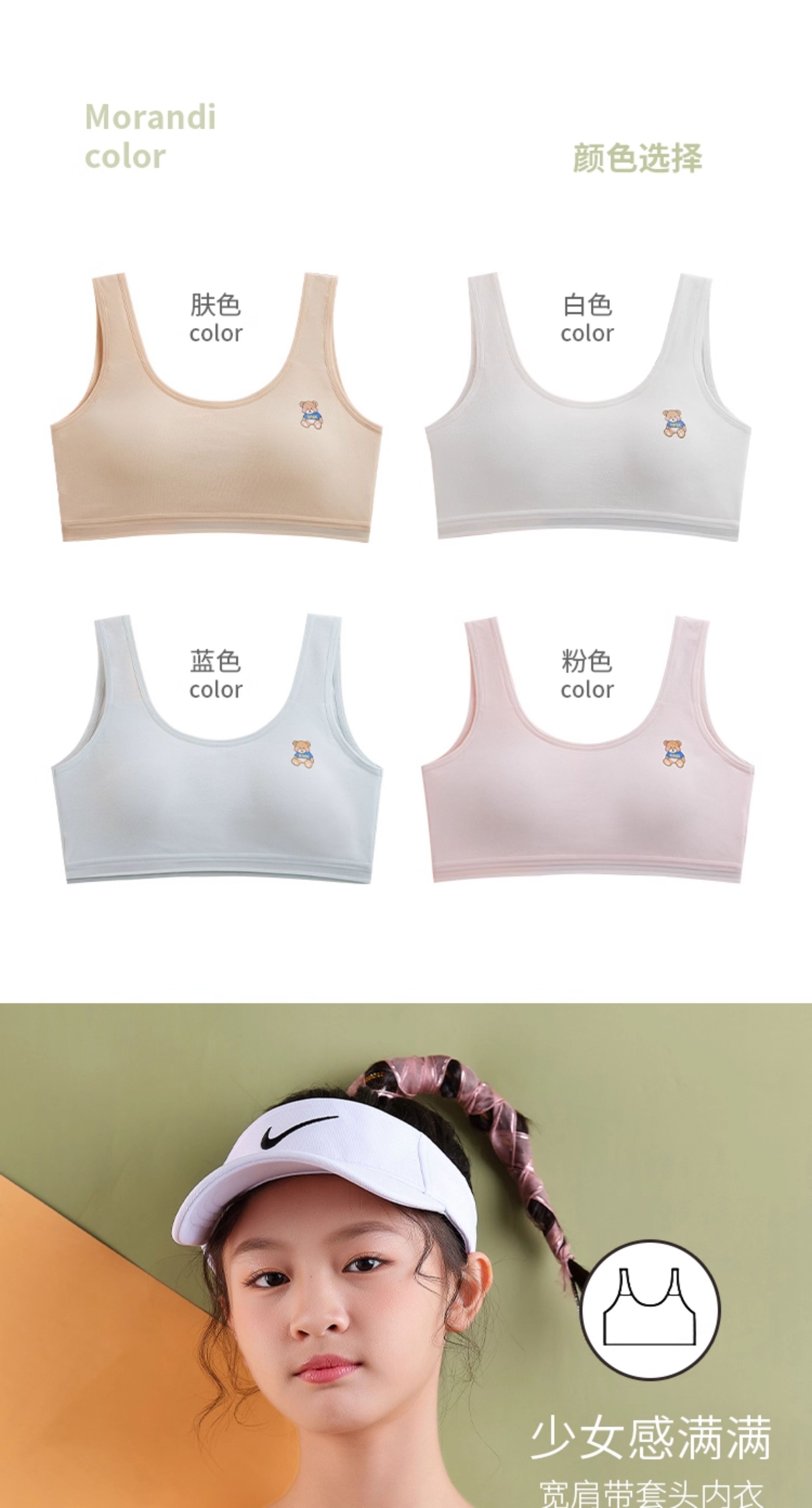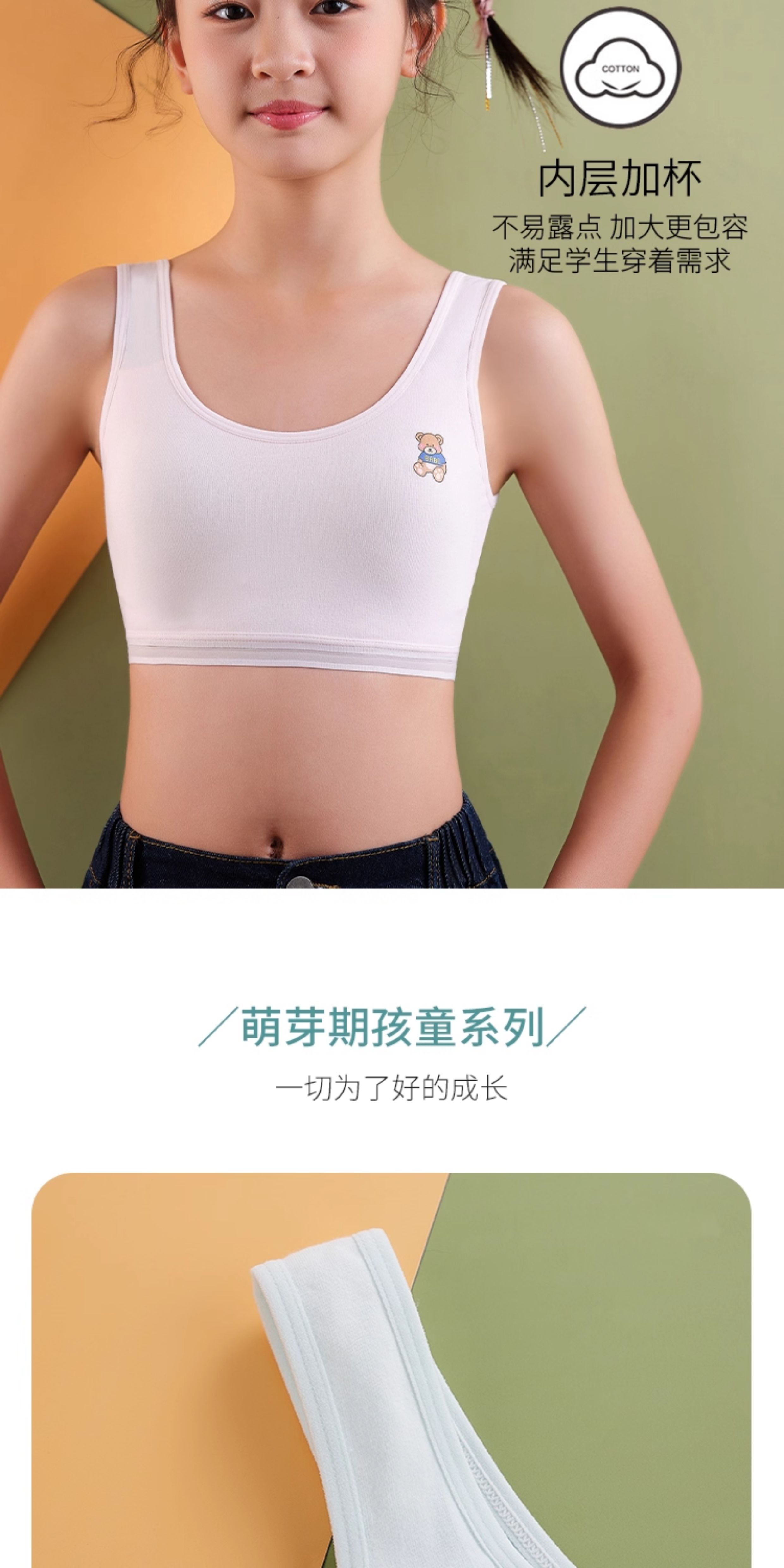 Pure Cotton Girls' Underwear for Elementary, Middle, and High School Students, Developmental Period Children's Chest Wrap Vest, Bandeau Bra