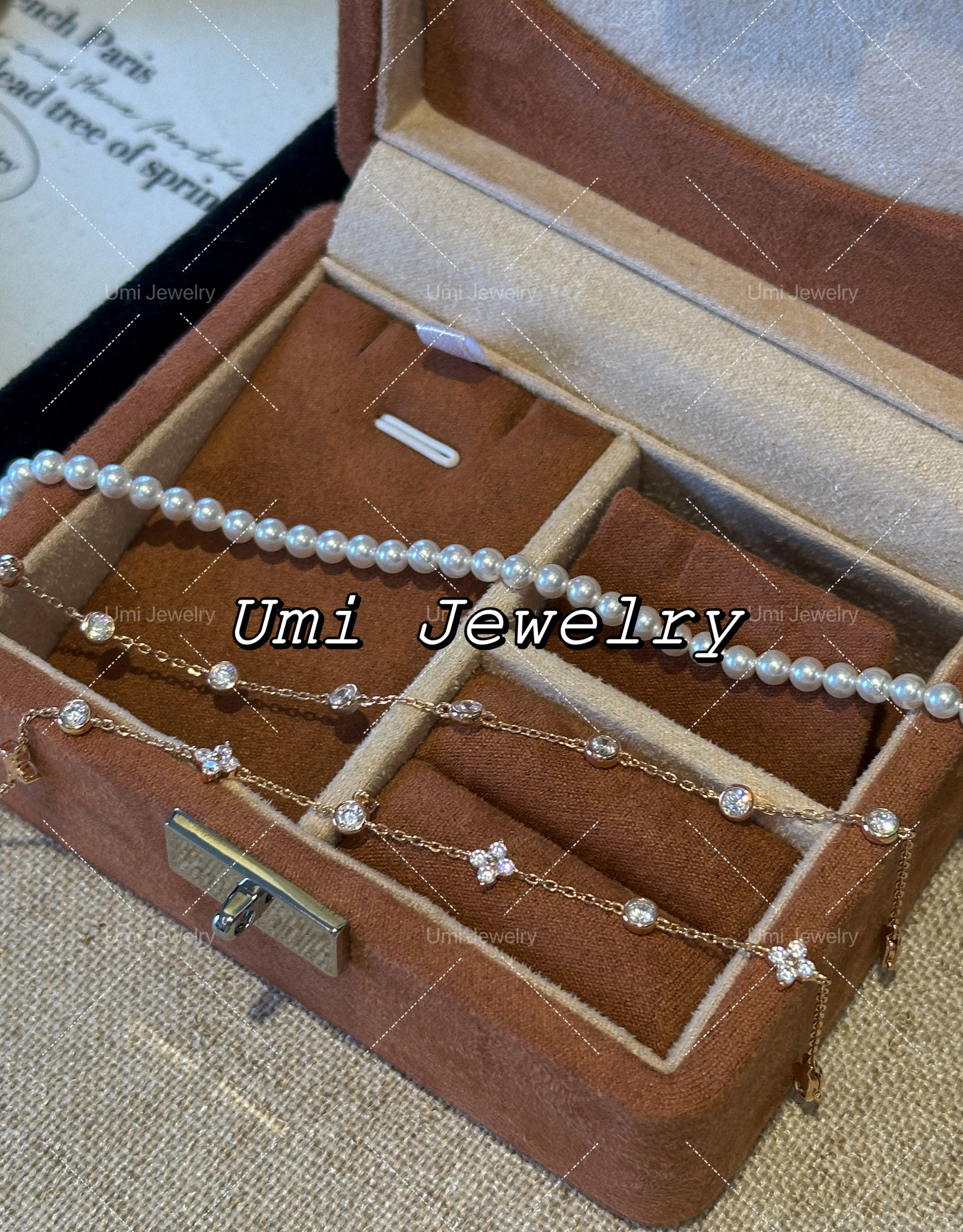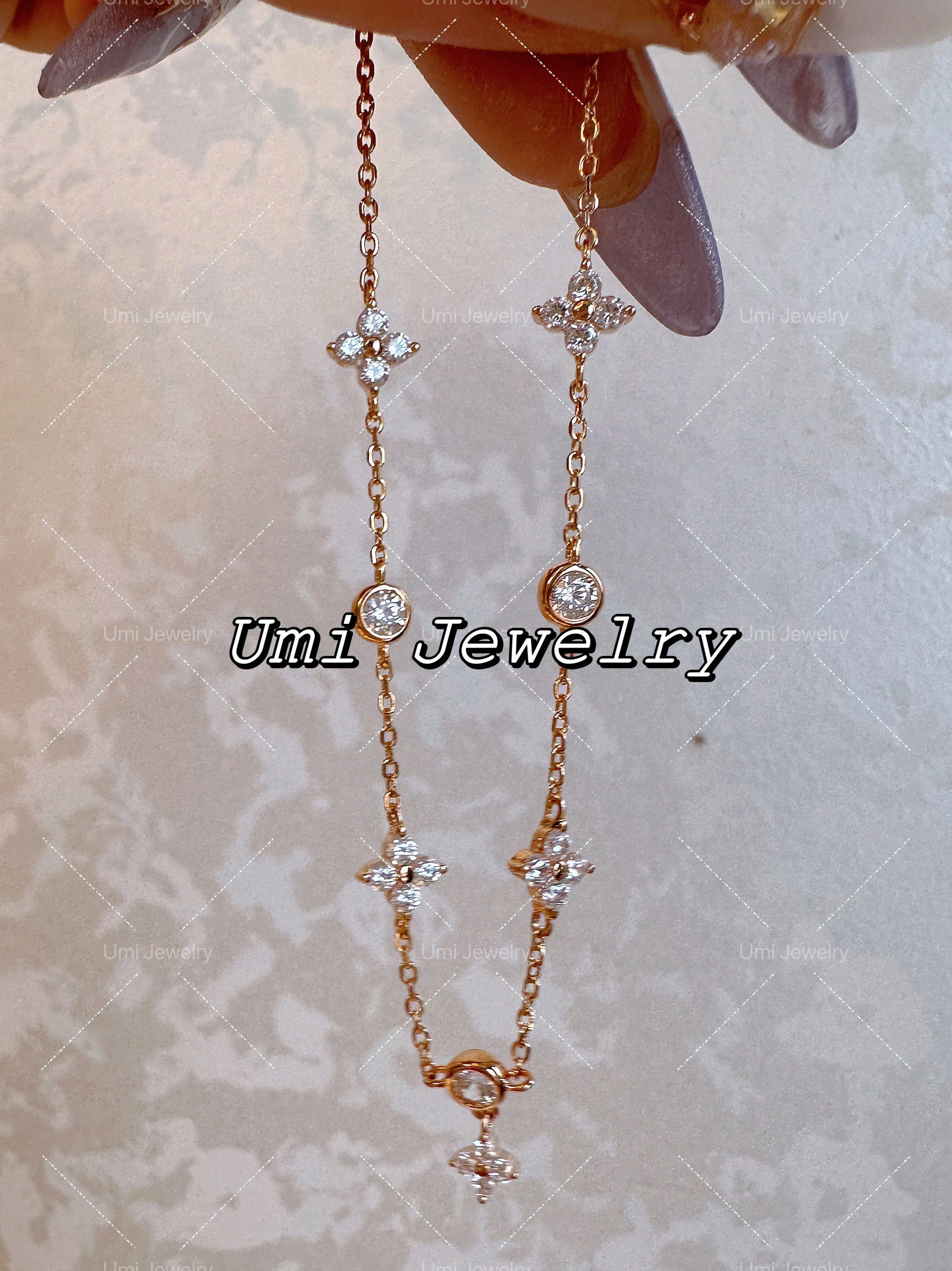 Umi Home·Light Jewelry/S925 Silver Gold Plated·Versatile Diamond Bubble Bead Four-Leaf Flower Bracelet for Layered Wear with a High-End Feel