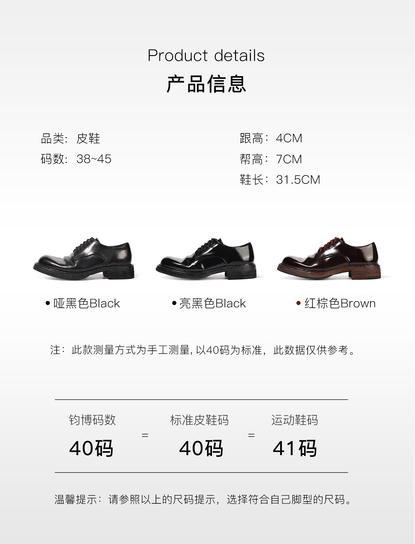 Dreambox Junbo Vibram High-End Horsehide Casual Leather Shoes Handmade Goodyear Leather Sole Men's Derby Shoes