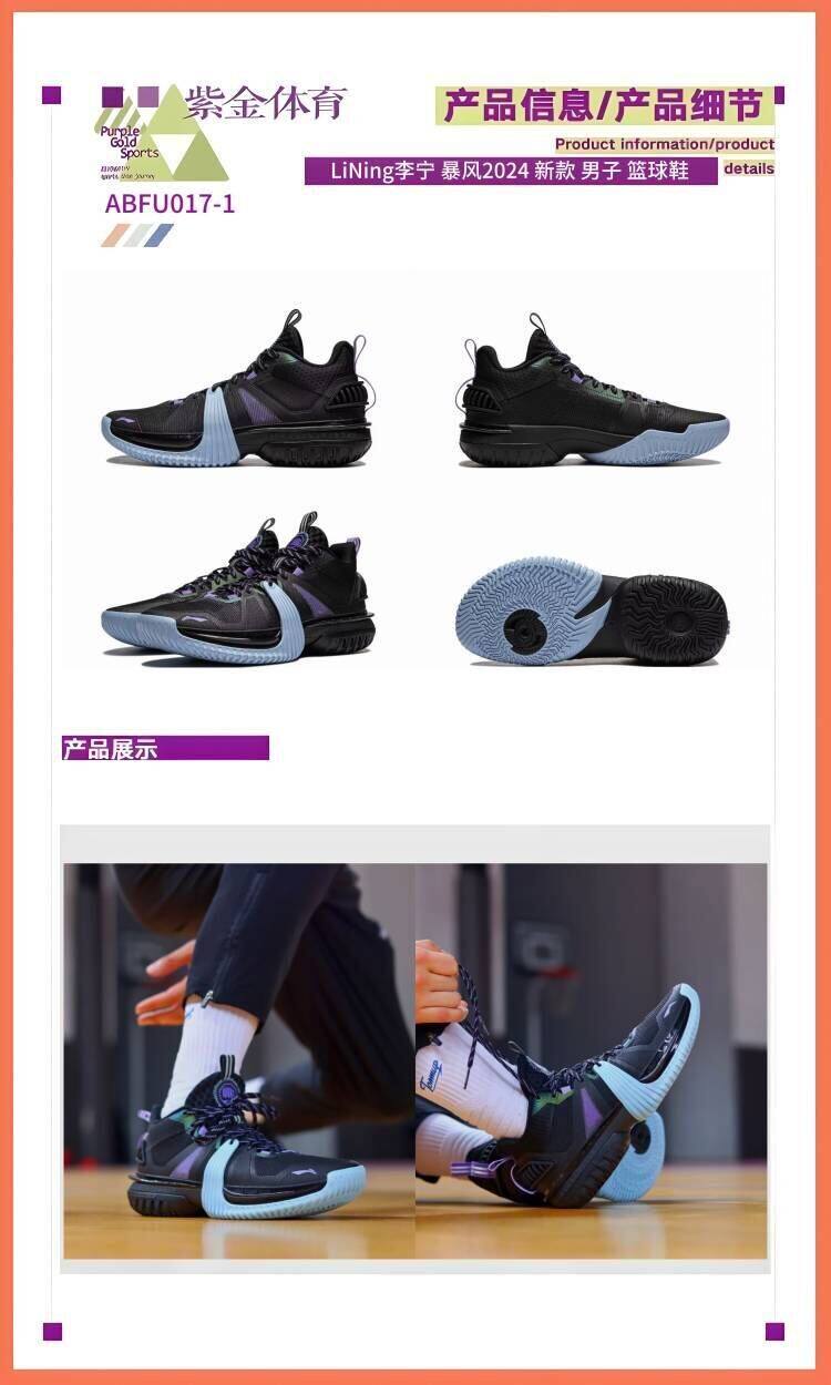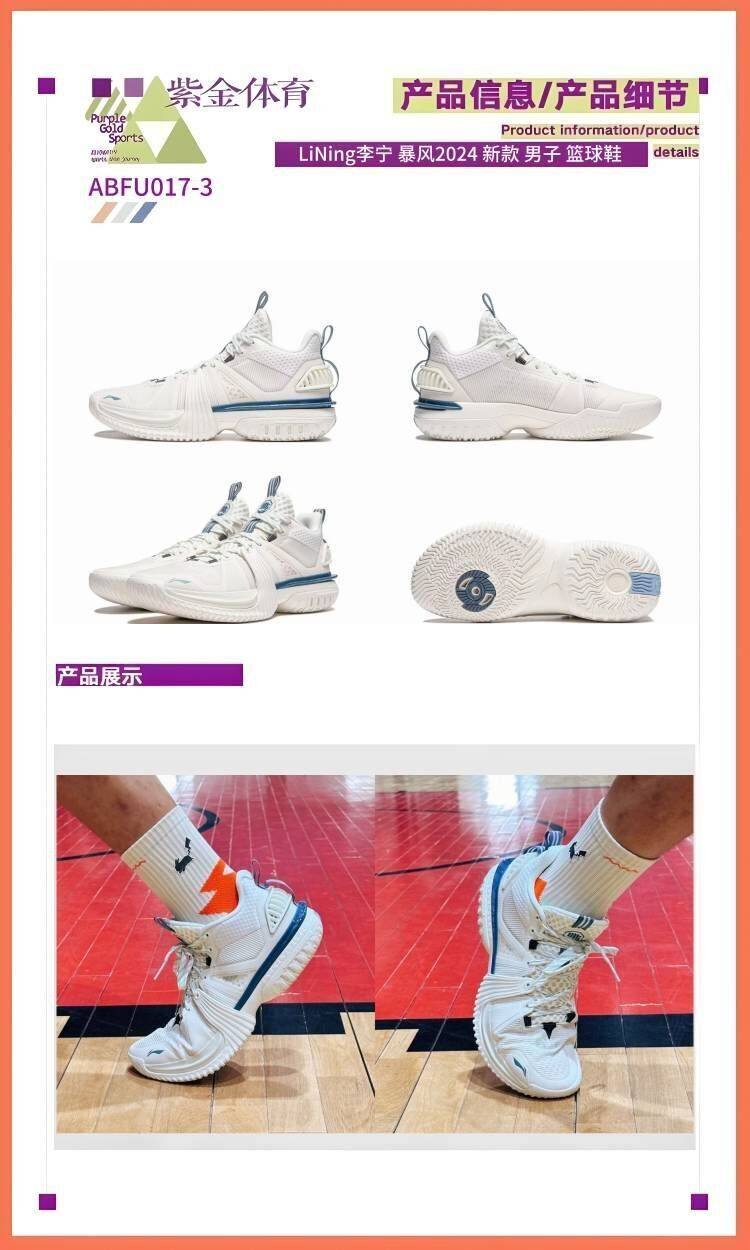 Li-Ning Storm 2024 New Basketball Shoes for Men, Shock-Absorbing, Rebounding, Outdoor Wear-Resistant, Mid-Top Professional Competition Basketball Shoes