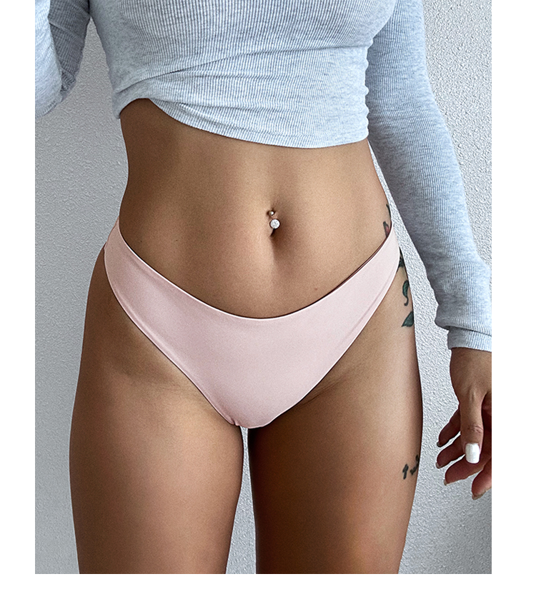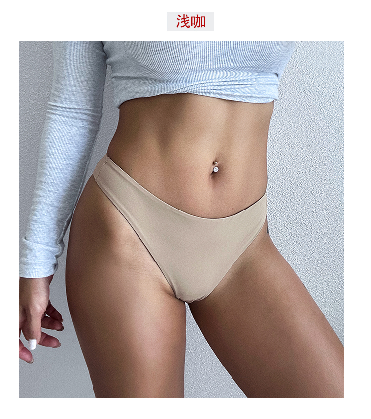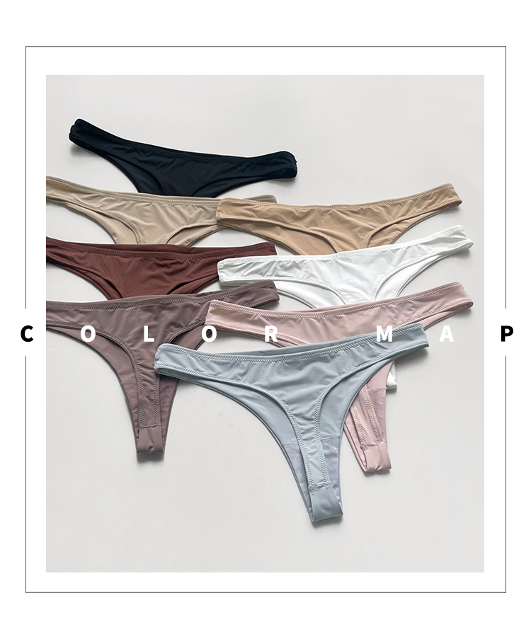 Solid Color European and American Style Ice Silk Basic Sexy Women's Thong Panties, Nude Feel, Plus Size, Sports Yoga Thong for Women