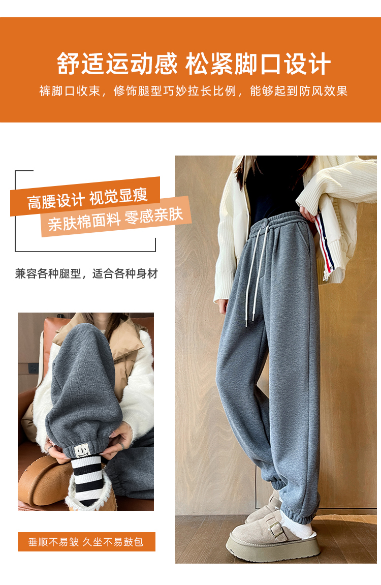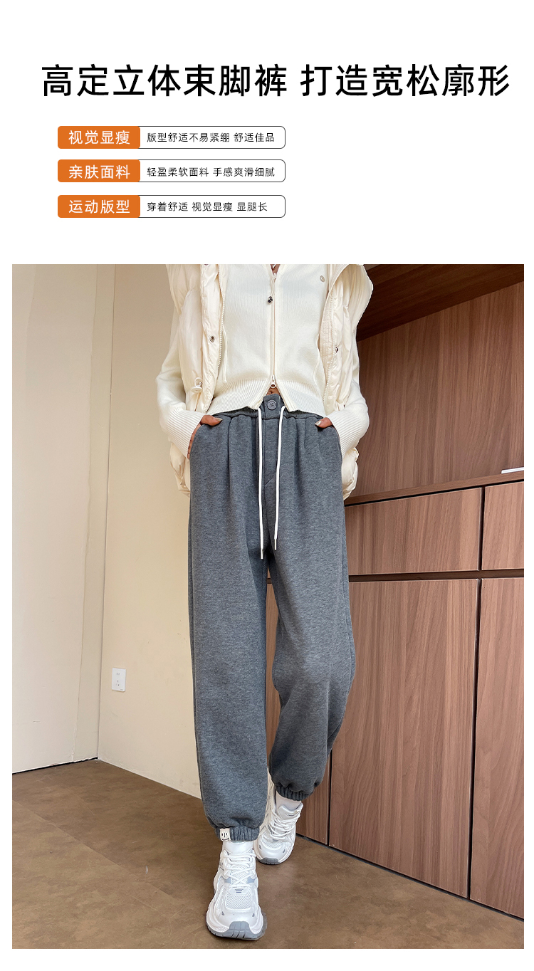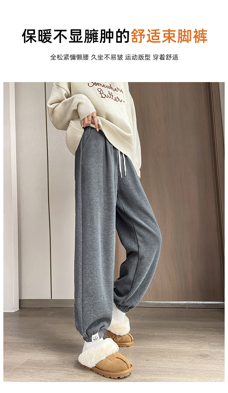 Fleece-Lined Sweatpants for Women, New Autumn and Winter Casual Joggers, Tall and Slimming, Gray Pants, Extra-Long Women's Pants, Sports Pants
