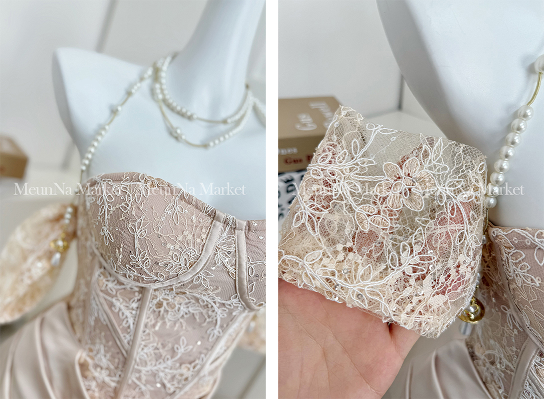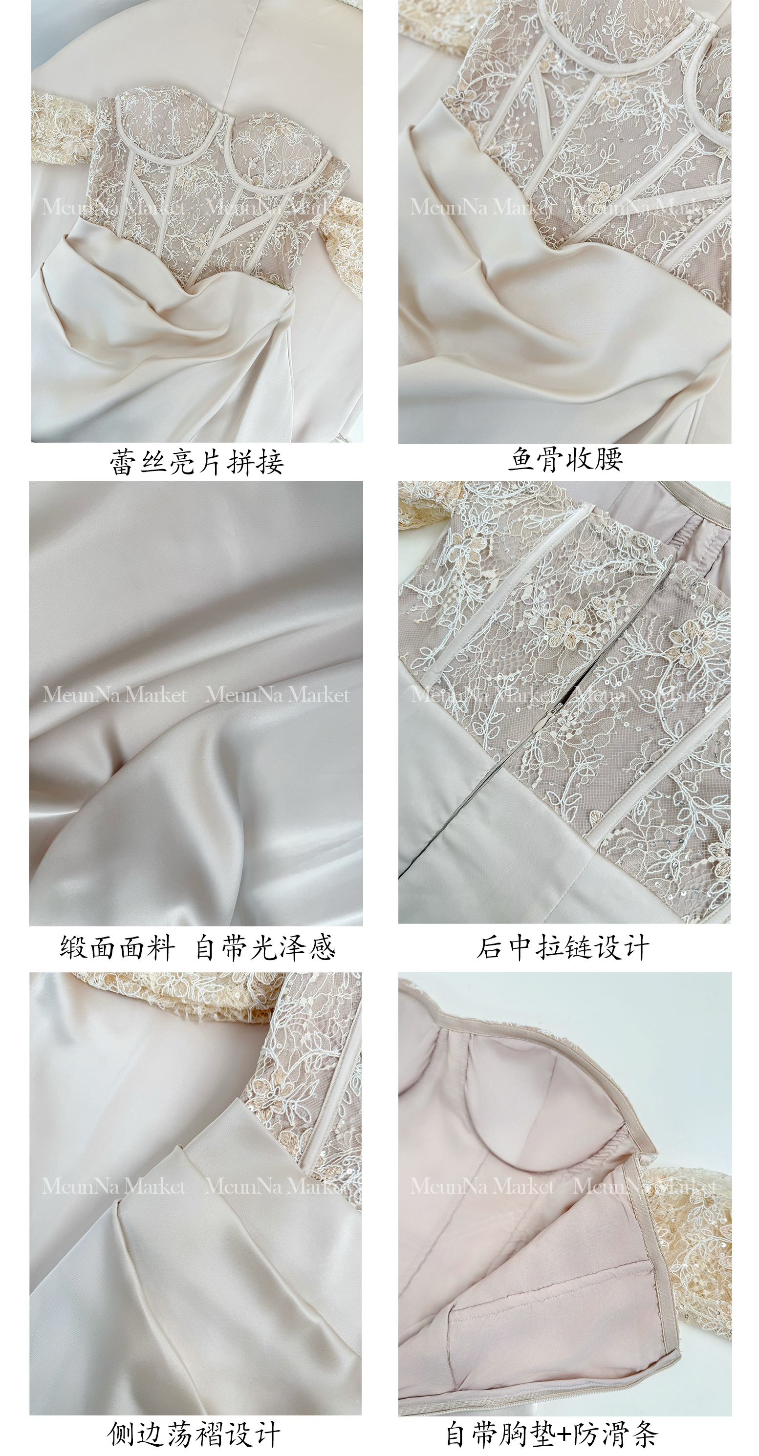一比一定制yb重工蕾丝亮片拼接鱼骨裙!